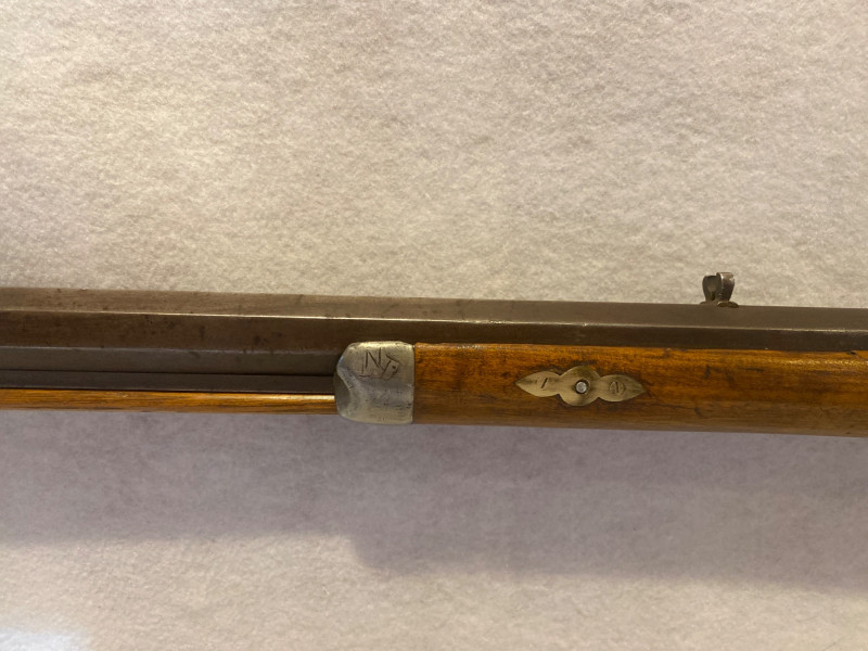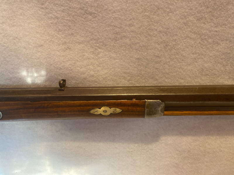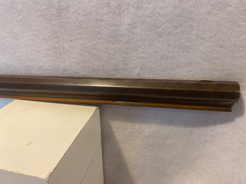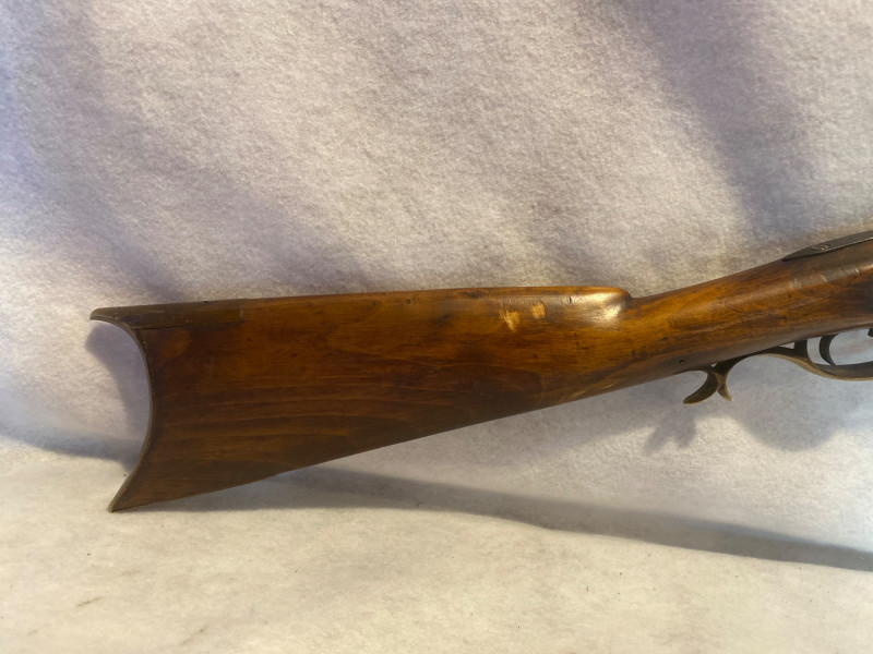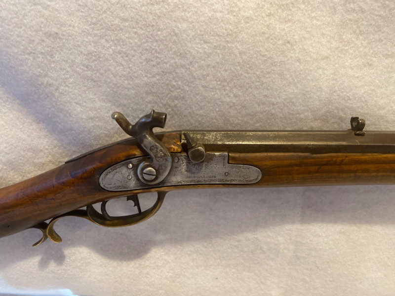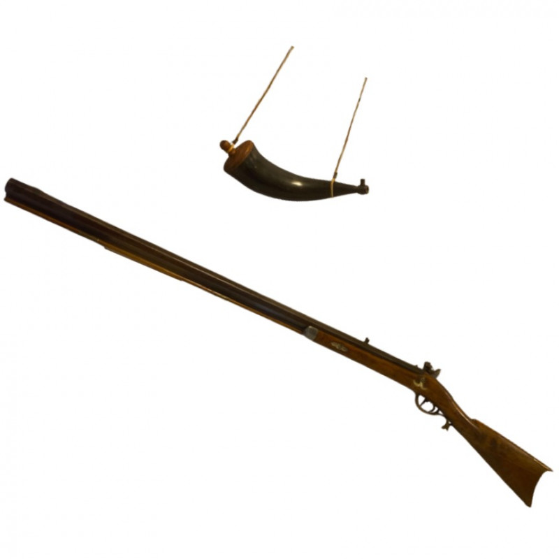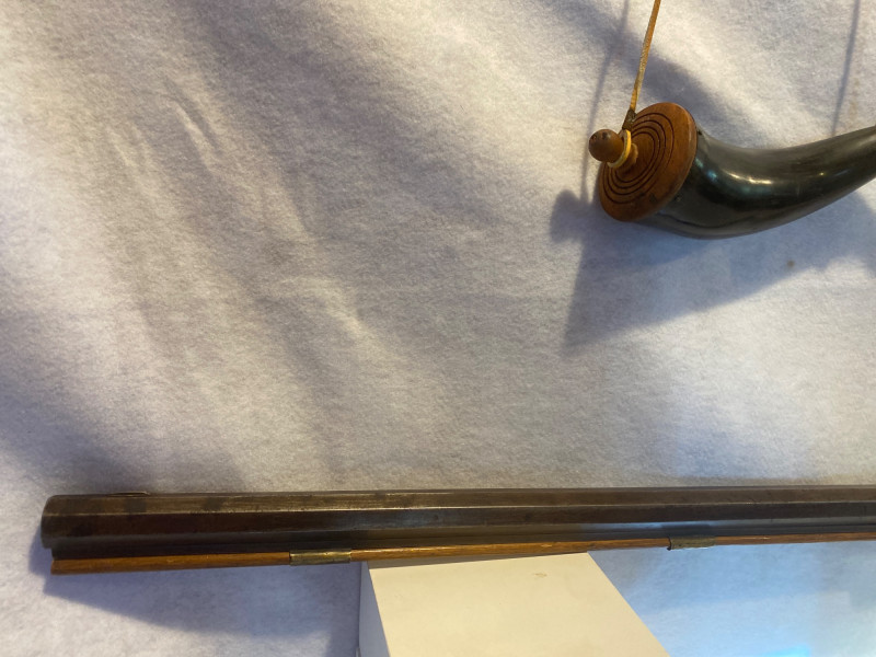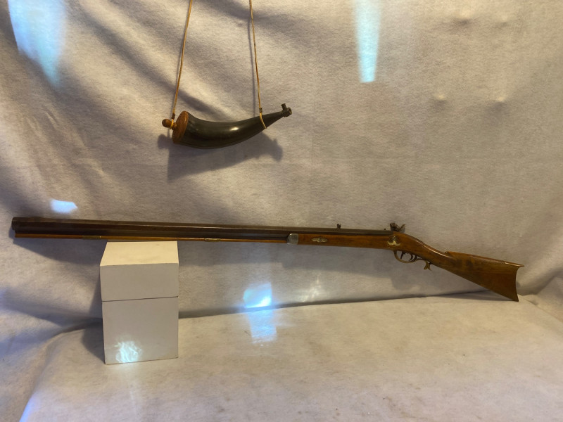 Lot # 100 - Geo. E. Goulcher Flintlock Rifle with Powder Horn | Pre-1898 Firearm