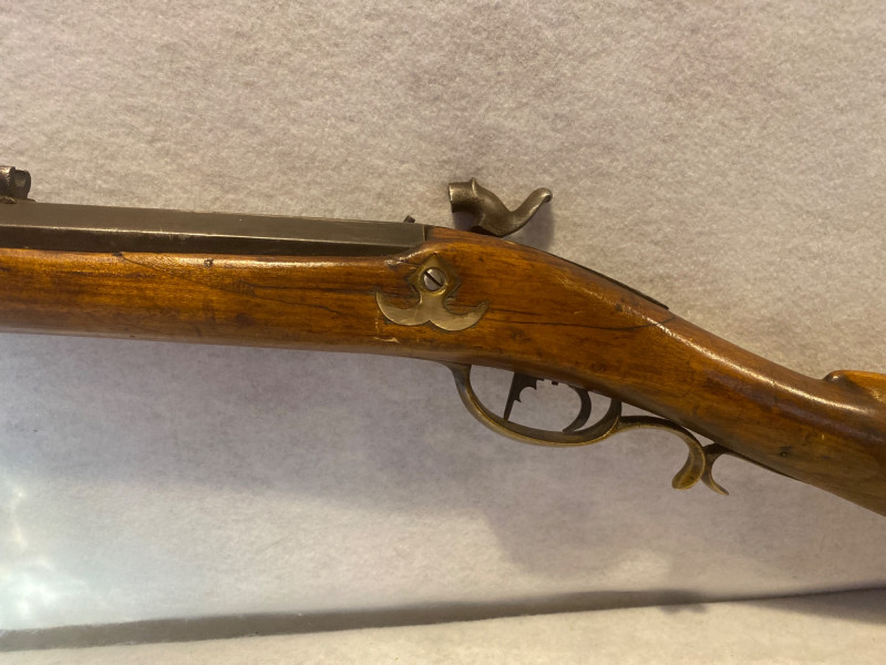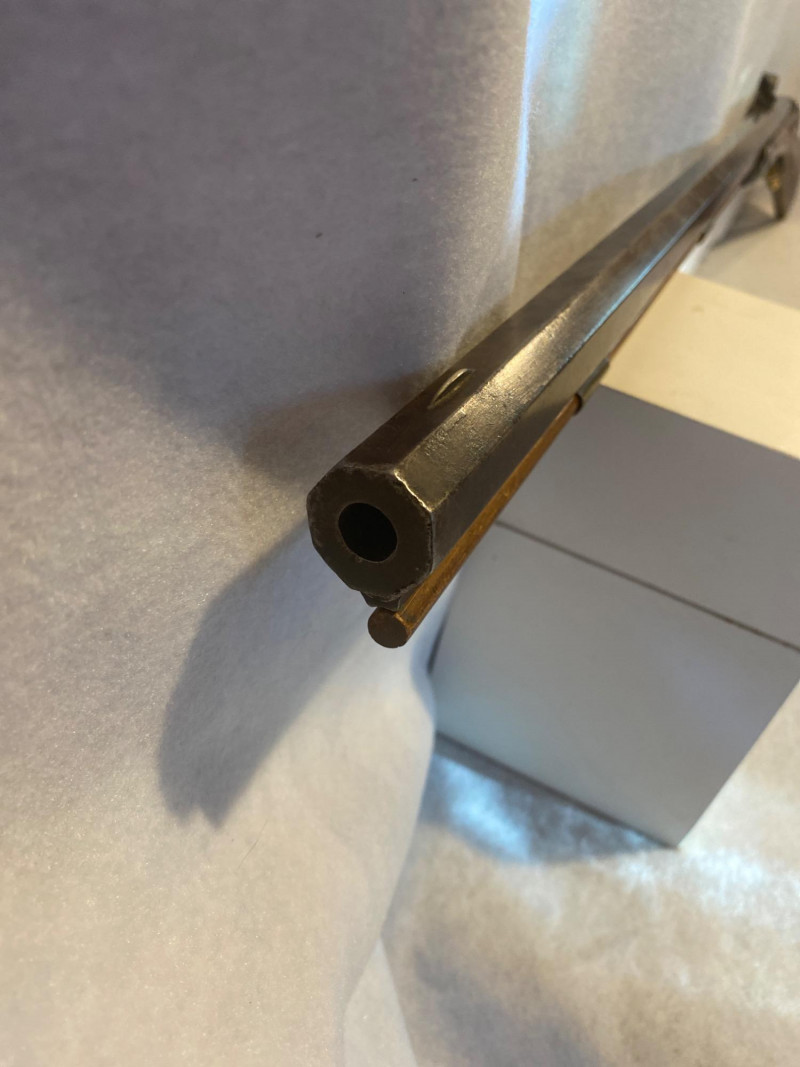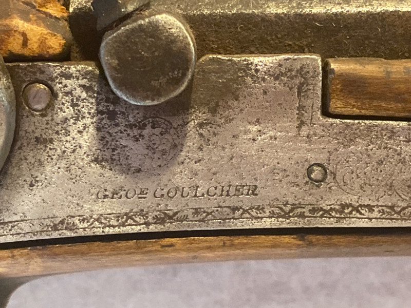 Crafted before 1898, this 50-inch antique flintlock rifle bears the name of Geo. E. Goulcher—a known 19th-century gunsmith whose work is prized for its craftsmanship and historical value. Accompanied by a powder horn, this piece evokes the frontier spirit and the artistry of early American firearms. Whether you're a collector, historian, or admirer of antique weaponry, this rifle offers a tangible link to the past.