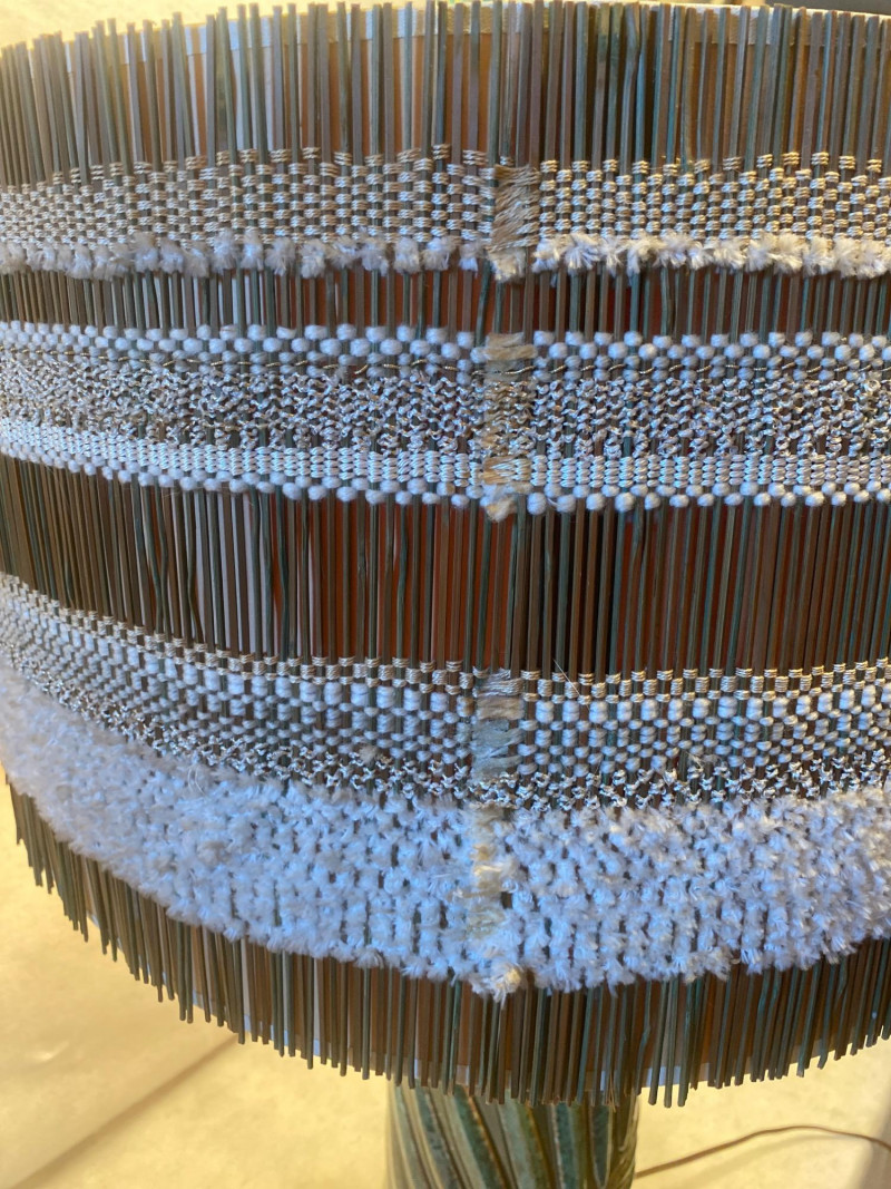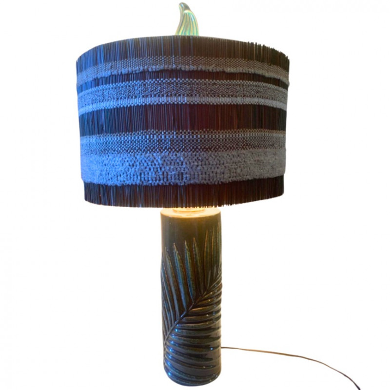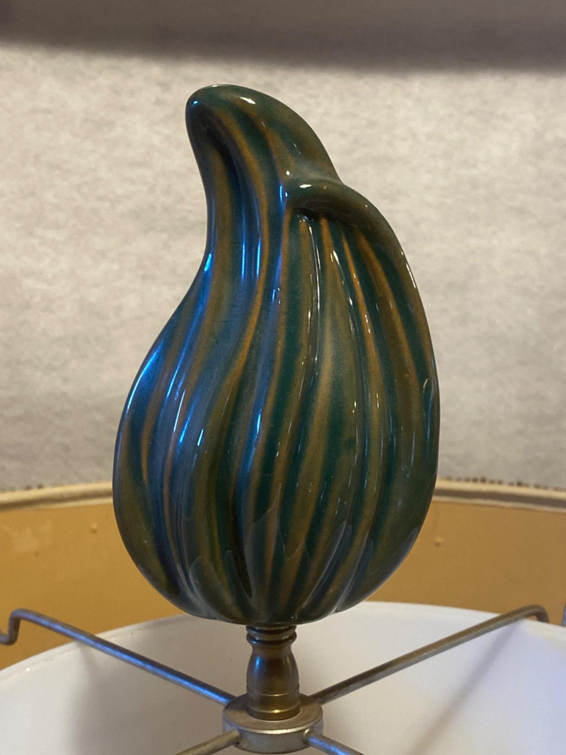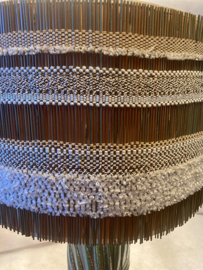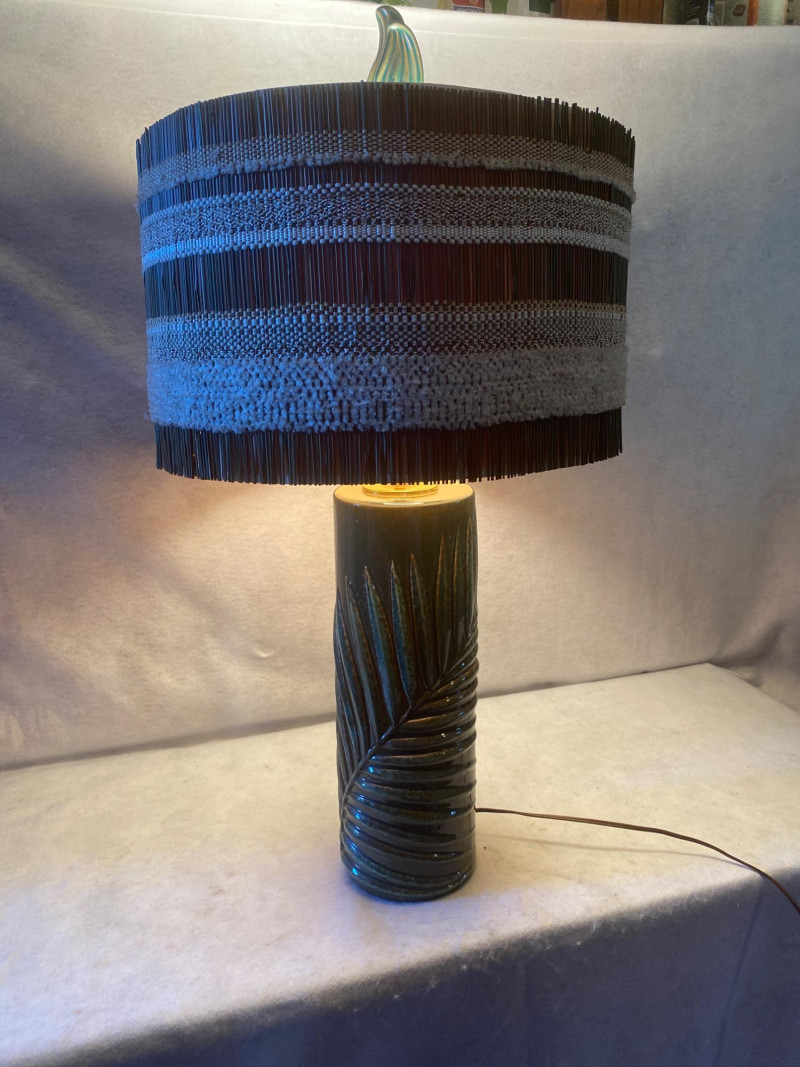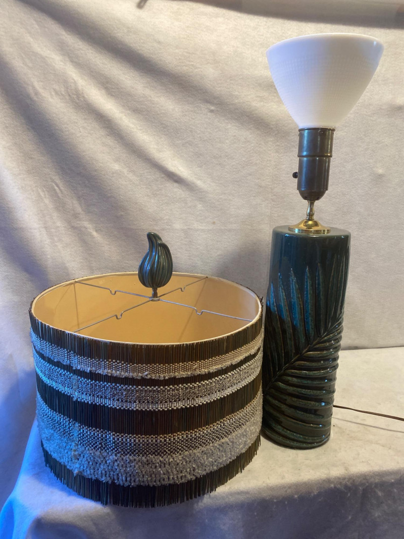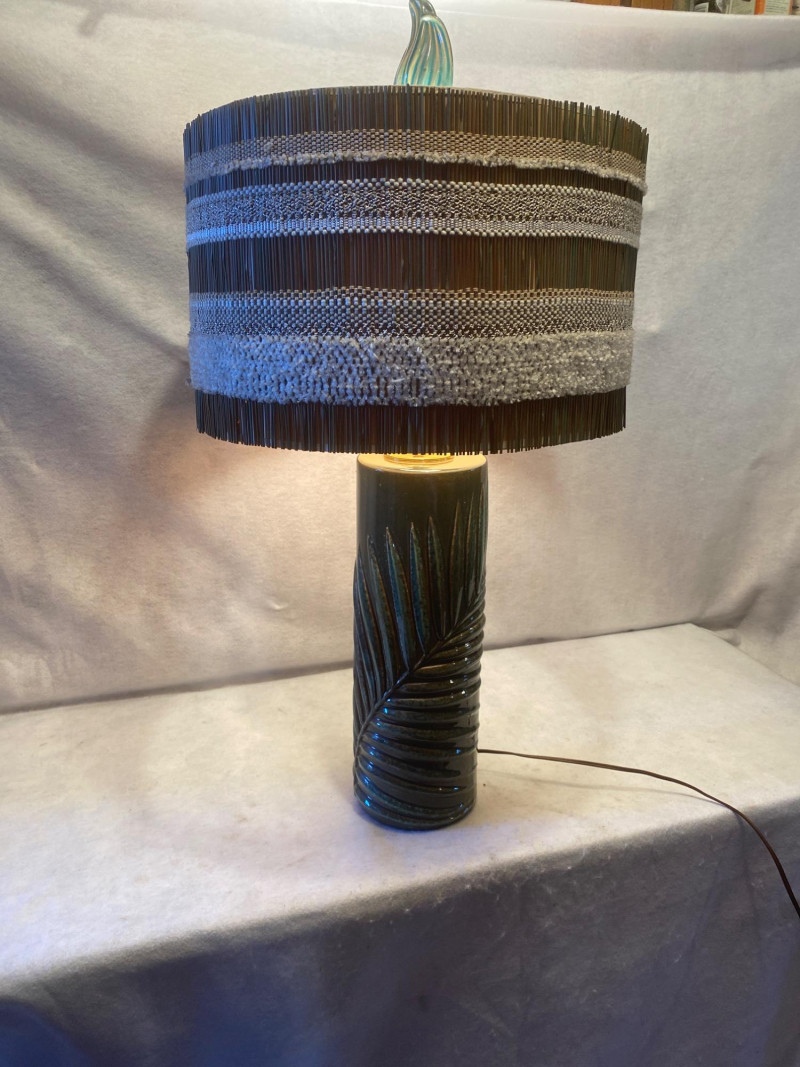 Original MCM Table Lamp with Woven Bamboo Shade – 36" Tall A sculptural mid-century modern table lamp, standing a bold 36 inches tall, with clean lines and a warm woven bamboo shade. Entirely original, this piece radiates 1950s–60s ambiance, perfect for adding retro charm to any room.
