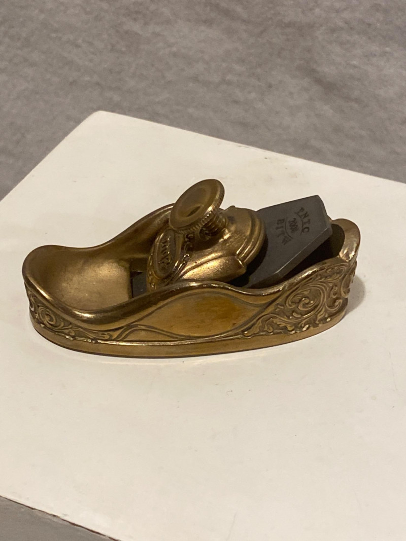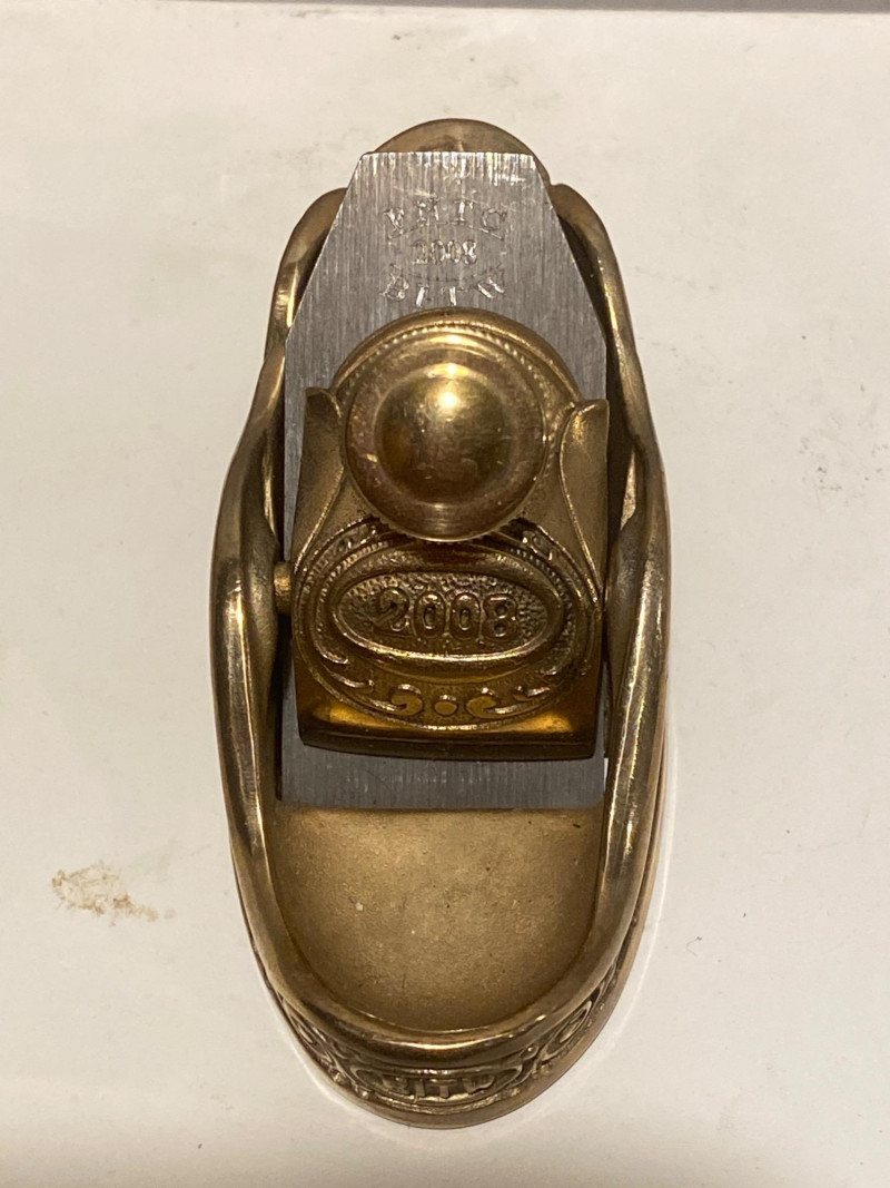 Crafted by Chris Larrman in 2008, this slipper block plane is a boutique toolmaking gem from the Pacific Northwest Tool Club. Measuring just 3 inches in length, it’s compact yet rich in character—perfect for precision work or display. Whether you're a woodworker, tool historian, or collector of fine instruments, this slipper block plane is a standout addition to any curated collection.