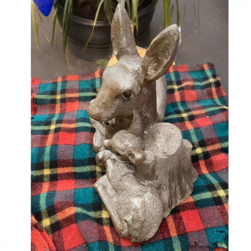 A charming single-piece sculpture featuring a mother deer and her two babies. Measures approx. 22 inches wide. Perfect for garden or nature-themed décor. Solid cement; however, one able-bodied person can lift it. Bring your own moving aides if you are not able to lift and load.