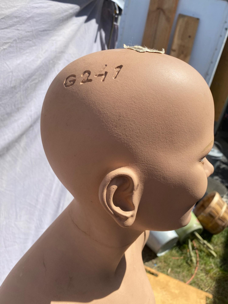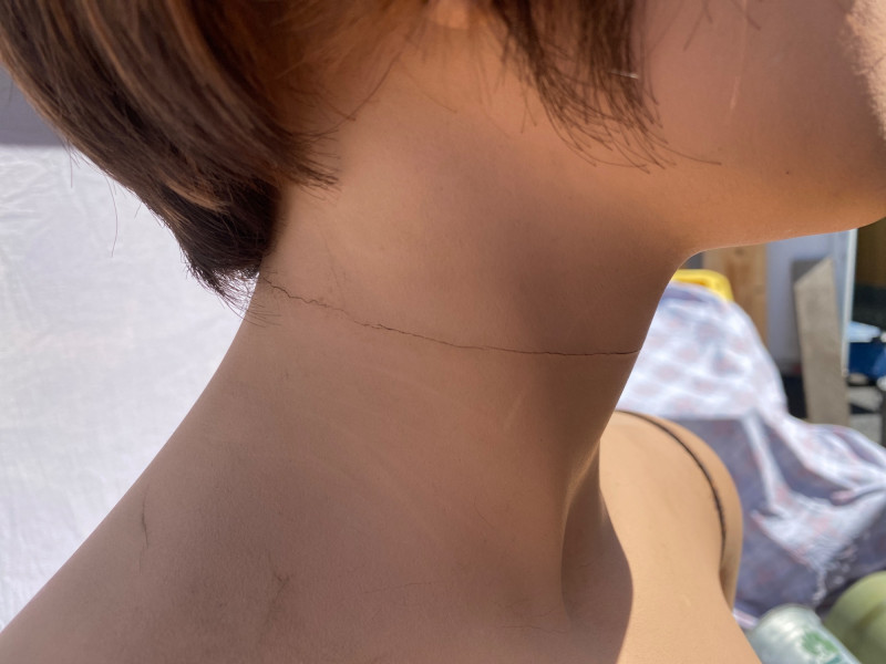 A well-preserved mannequin. Ideal for vintage display or fashion presentation. This mannequin stands 48 inches tall and has a hairline crack around the neck. Very nice facial features with standout eyes and lashes and pleasant smile.