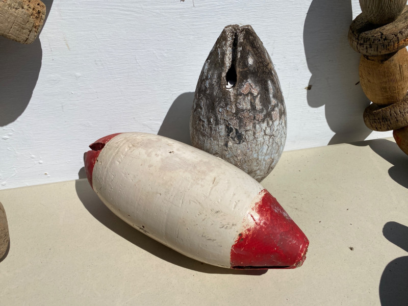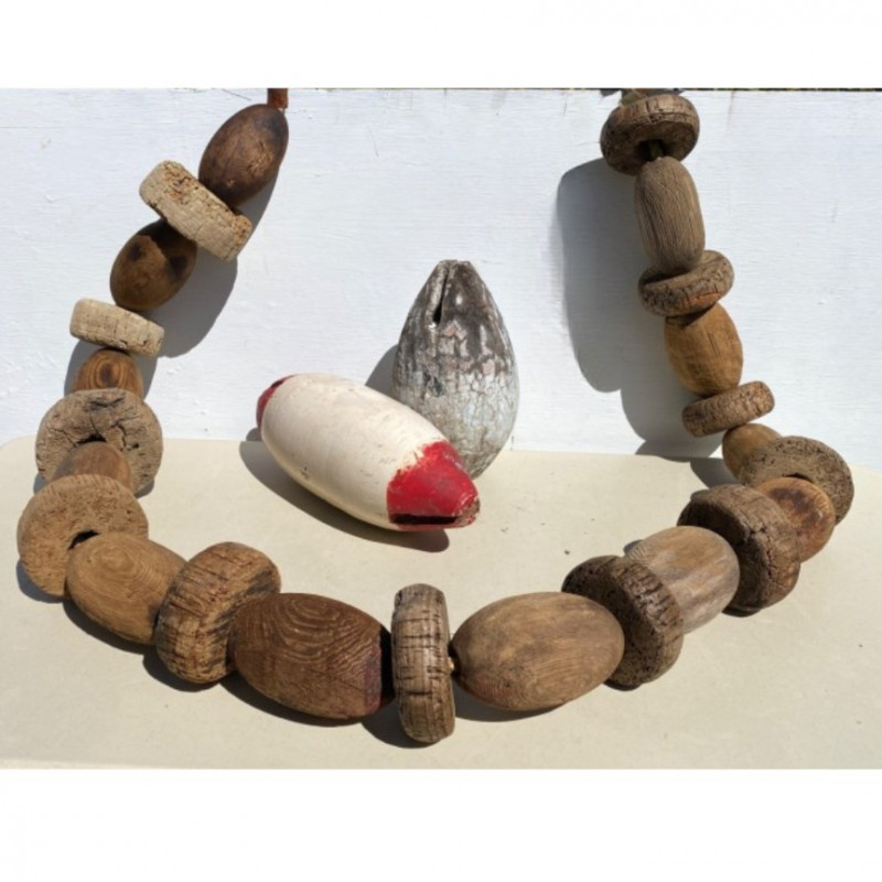 A stretch of maritime memory: this 94-inch length of vintage cork and floats includes two large pieces measuring 16 inches and 12 inches, respectively. Weathered and wonderful, they evoke the rhythm of the tides and the quiet labor of the catch. Perfect for nautical decor, garden styling, or coastal-themed installations, this lot offers texture, history, and a splash of salt-air charm.