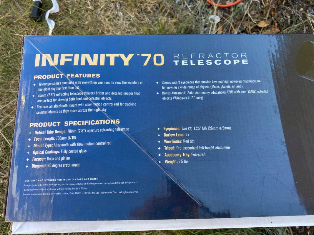 Lot # 158 - Meade Infinity 70 Telescope – Unused Stargazer’s Companion