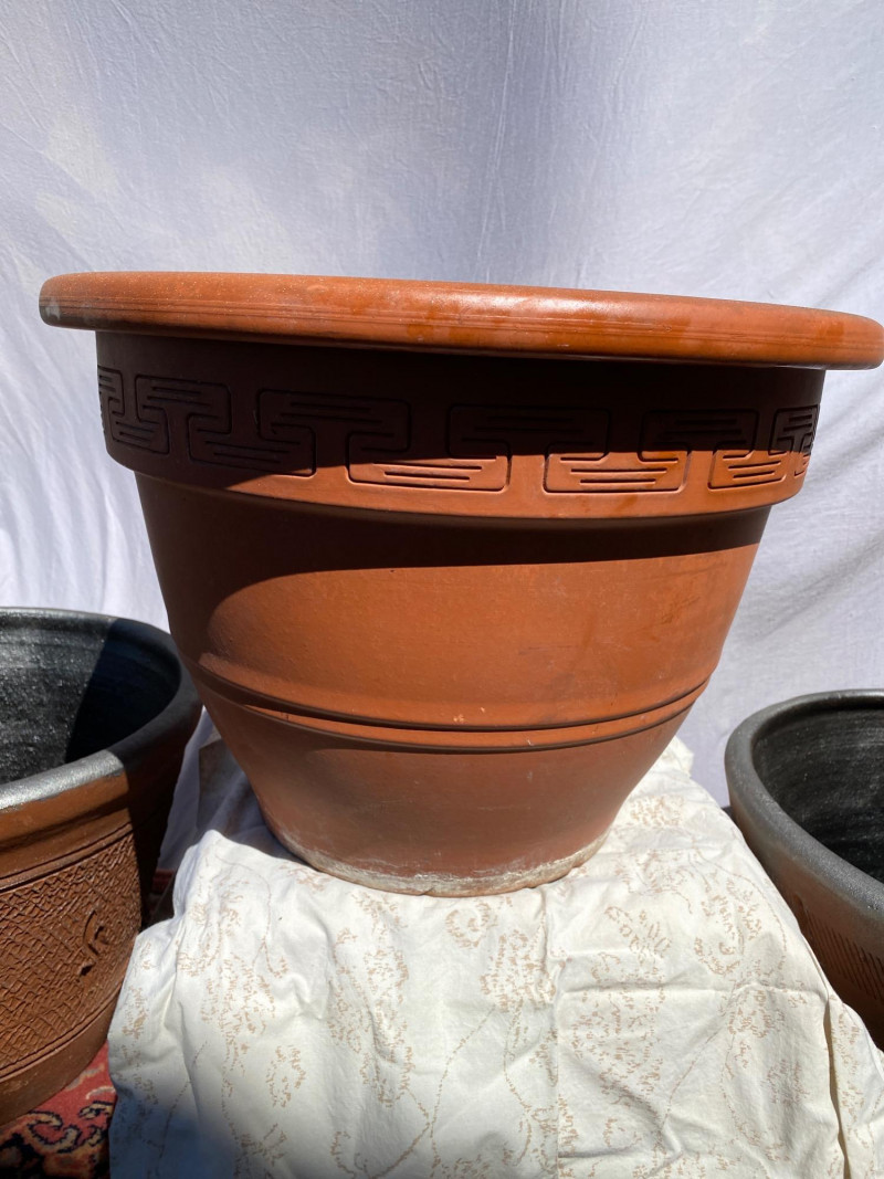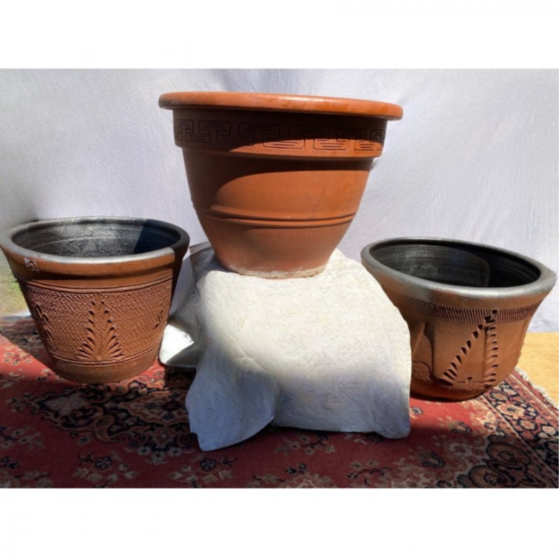 Lot # 159 - Trio of Red Clay Pots – Sculptural Garden Vessels