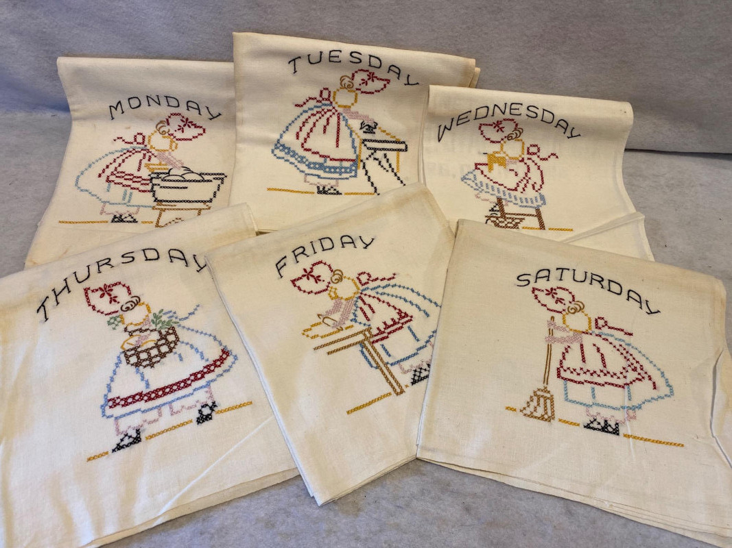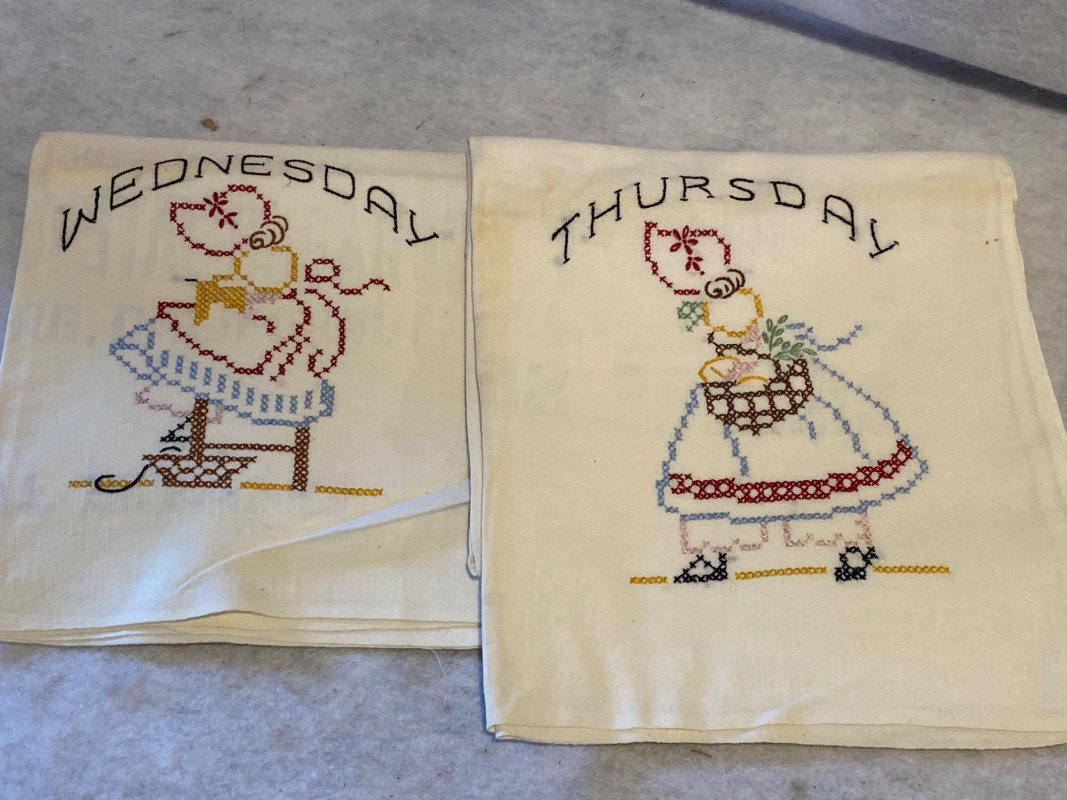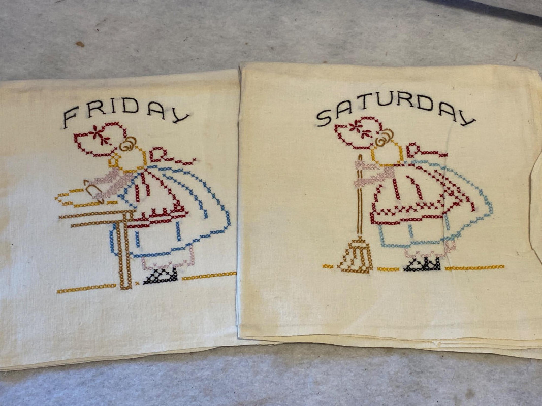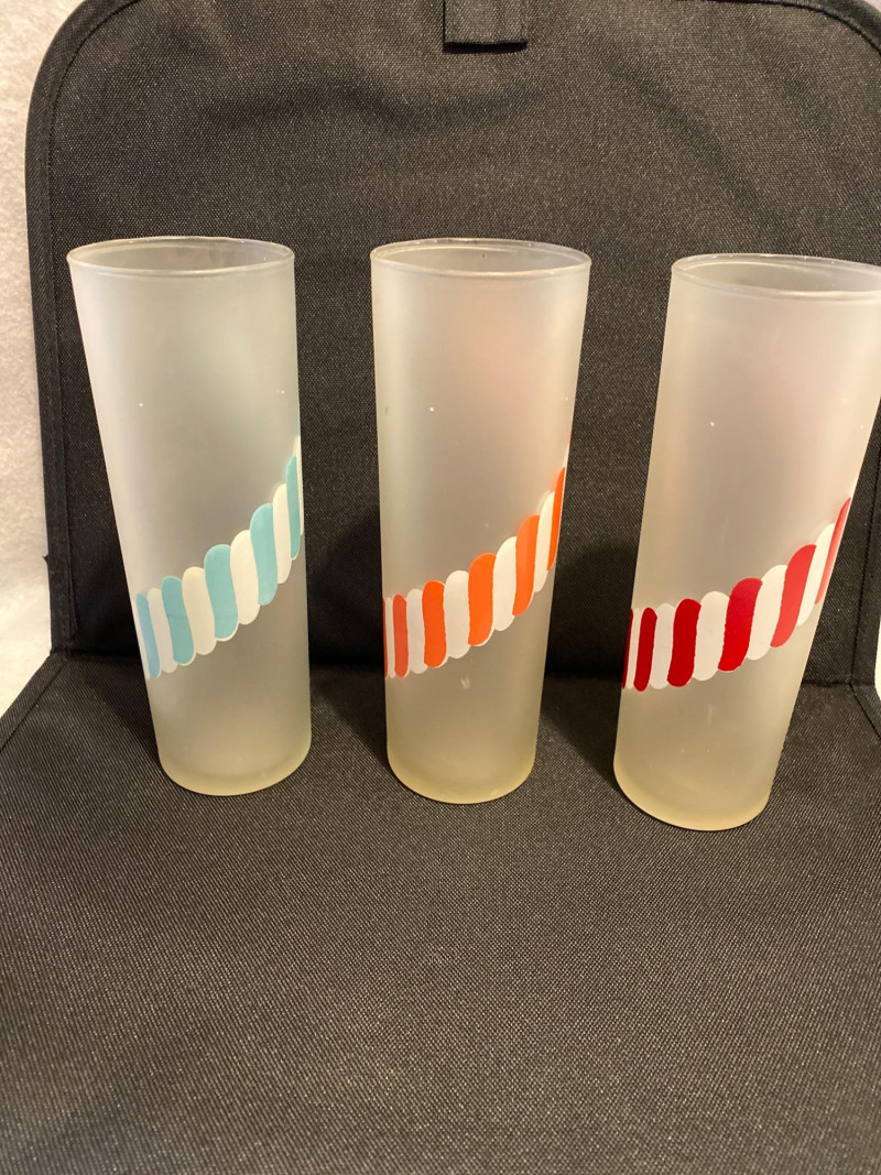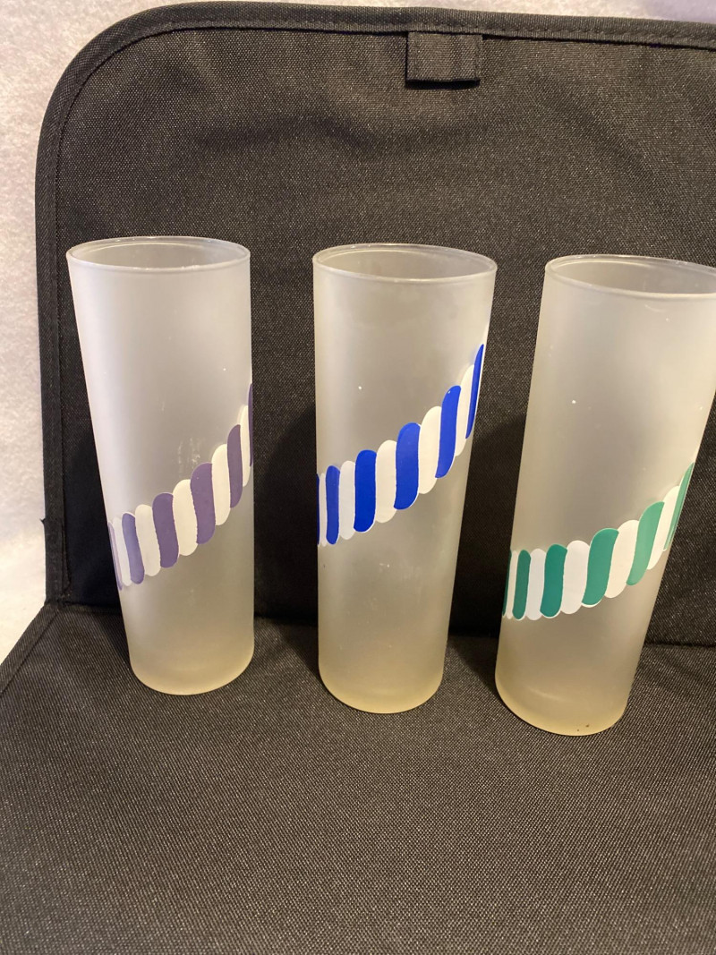 A curated collection of mid-century modern charm, this eclectic lot includes: Cast iron candle holder made in Japan, with tapers Claude Dumas modernist pitcher (9½″ × 6″ × 3″) Six skinny glasses in assorted colors (7″ tall × 2½″ across) Dansk salad bowl (5″ tall × 7½″ across) 1959 kitchen scene painting signed “Hunner” in original frame (15″ × 13″) Cast iron figures, 3″ and smaller, including a fish bottle opener Anna Everlund aluminum vase (11″ × 3½″ × 7½″) Cross-stitched kitchen towels, gently aged with fold marks—no Sunday towel, because that’s your day of rest! A delightful blend of form, function, and nostalgia—perfect for collectors, decorators, or lovers of MCM storytelling.