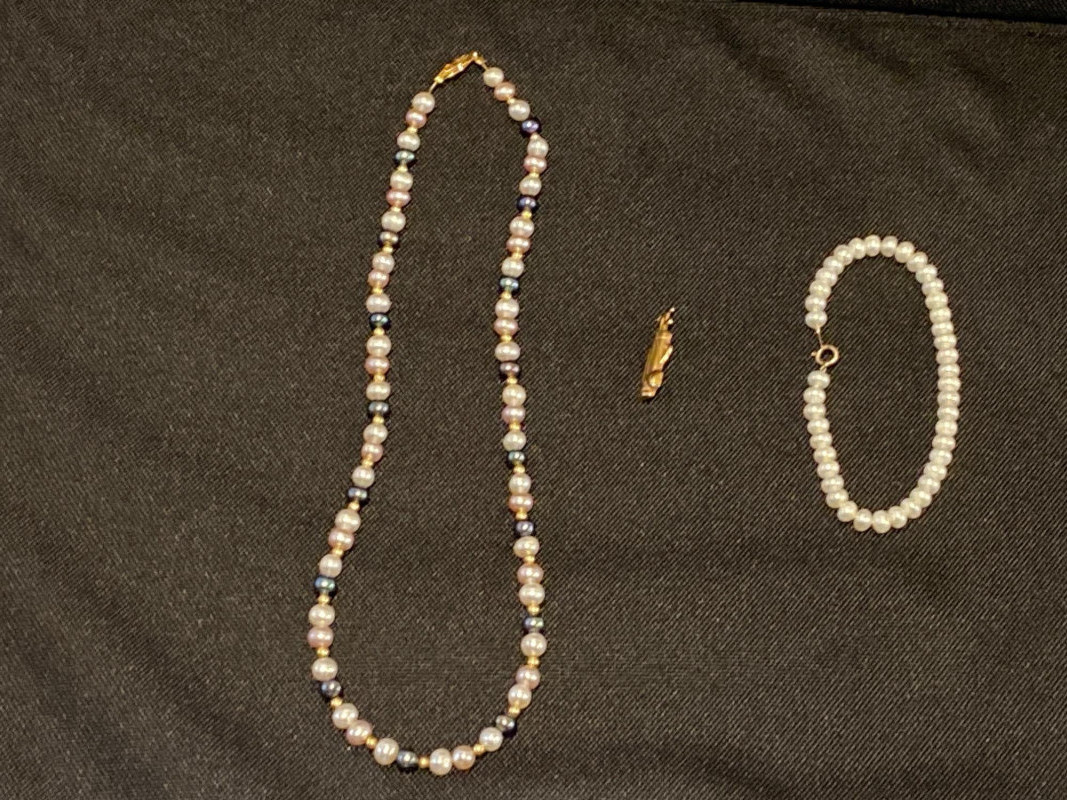 Lot # 168 - 10K & 14K Gold Jewelry – Pearl Necklace, Bracelet & Golf Bag Pendant