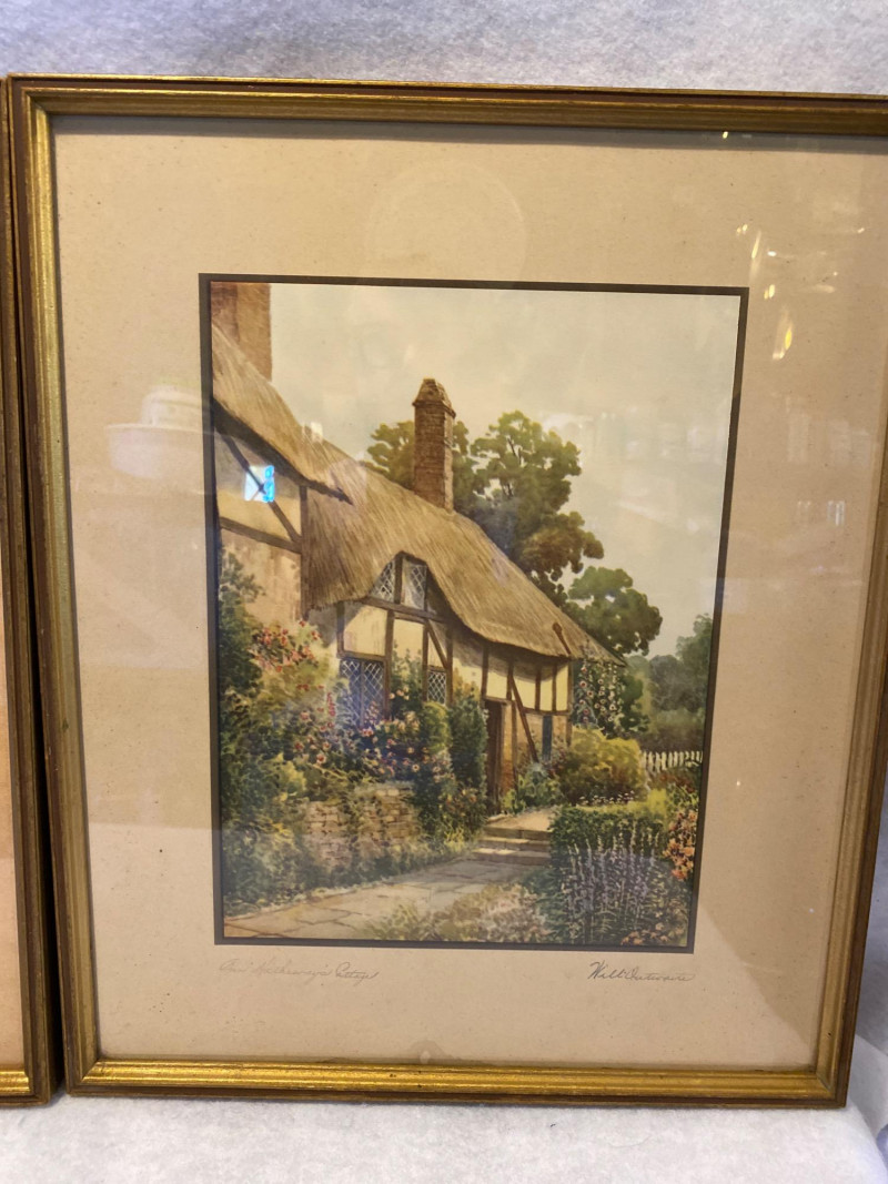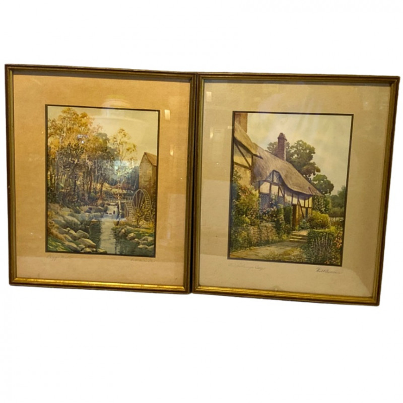 This harmonious set of pencil signed prints by Will Outhwaite measures 17¾″ × 14¾″ each. Rendered in soft, muted tones, they offer a refined aesthetic that blends seamlessly with a wide range of interior styles—from traditional to modern minimalist. One print is titled "Rigg Mill" and the other "Anne Hathaway's Cottage". Perfect for collectors of fine printmaking or anyone seeking understated visual harmony. These pictures measure 17 3/4 by 14 3/4…the muted colors in these prints will blend with many decors