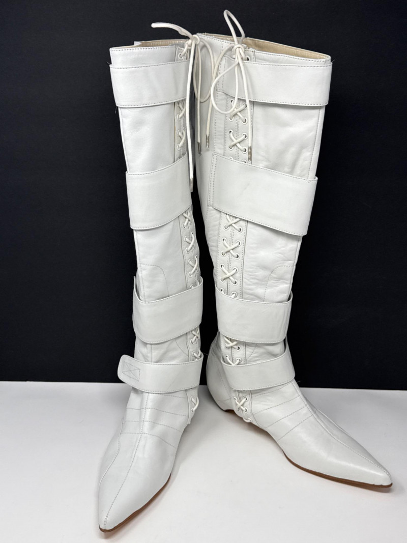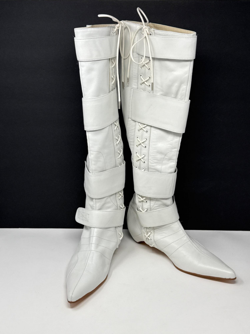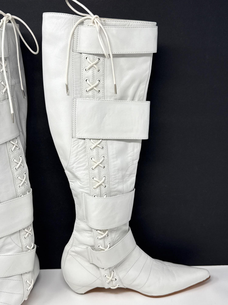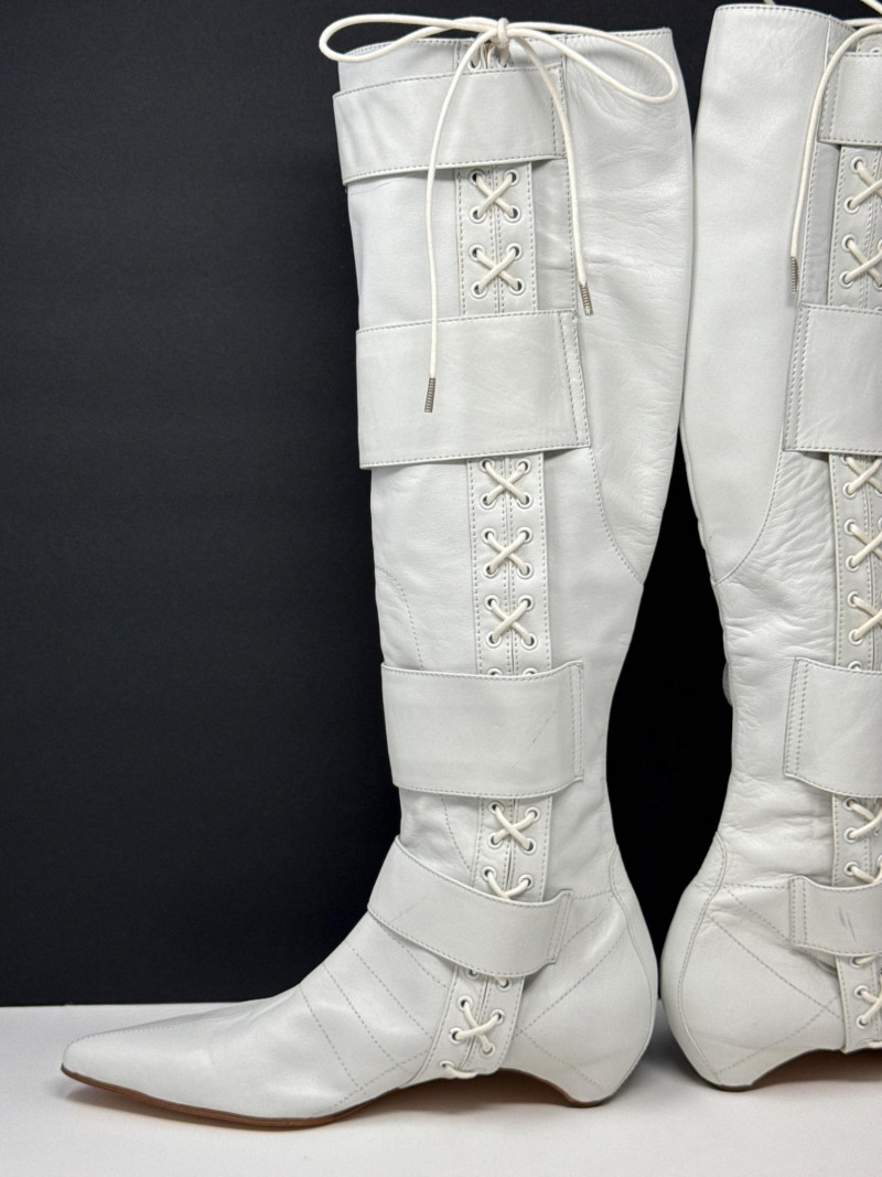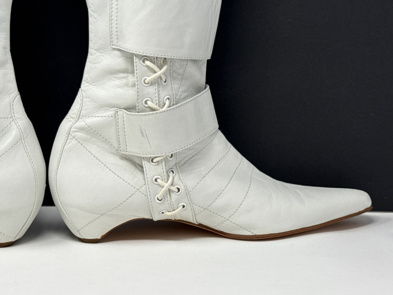 Lot # 1 - CHRISTIAN DIOR White Leather Ergonomic Boots*NWT $1120- Sz 38