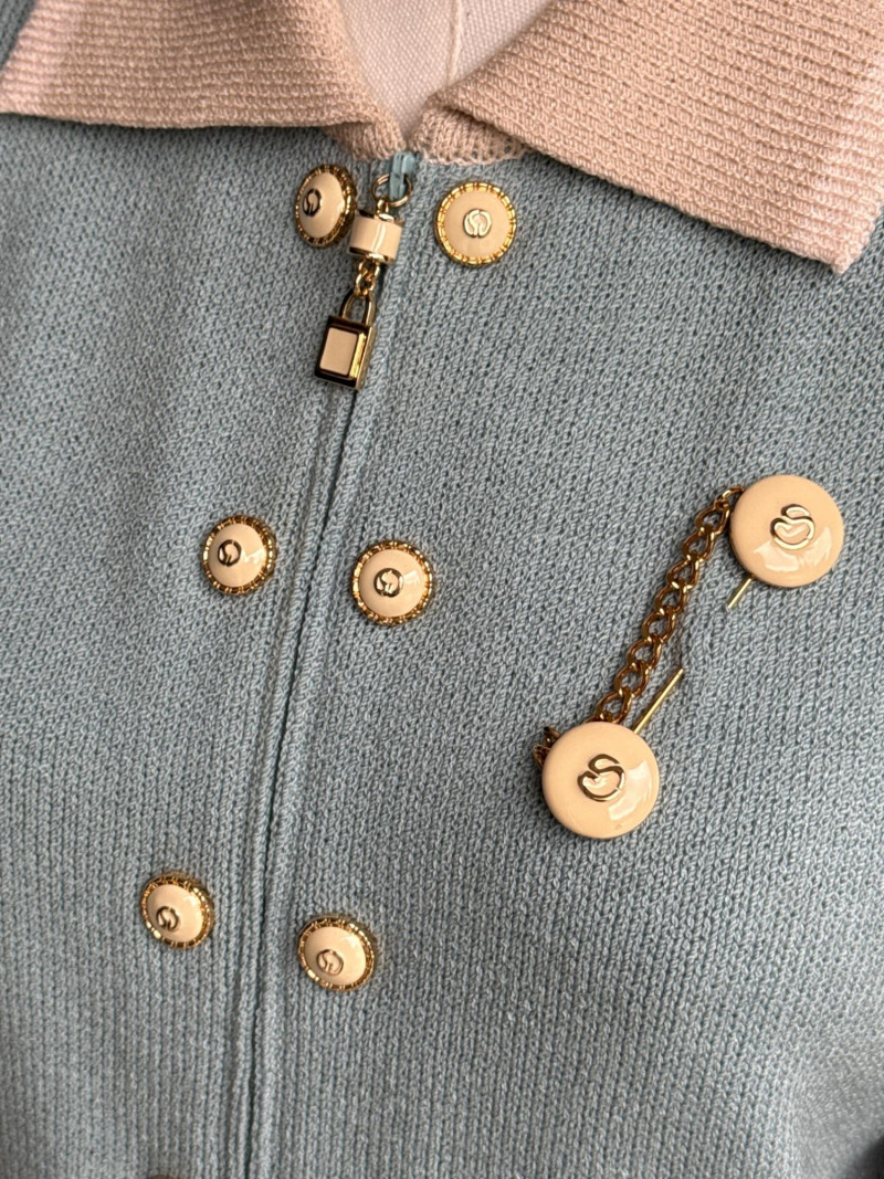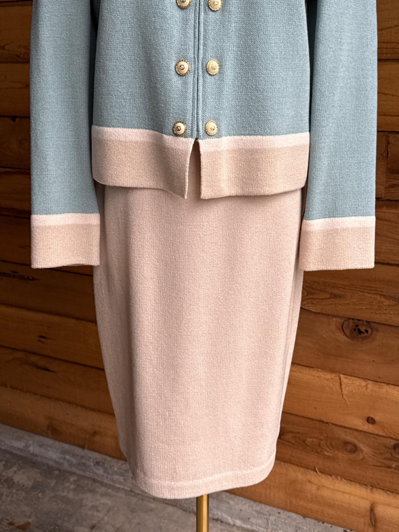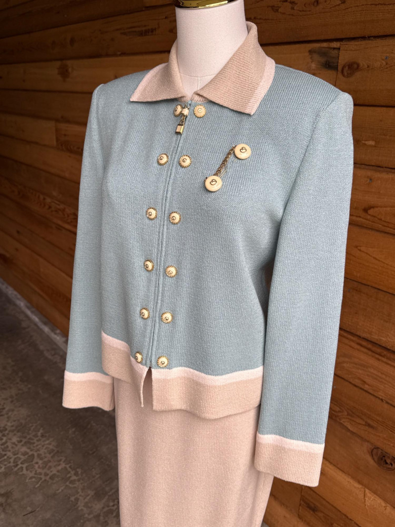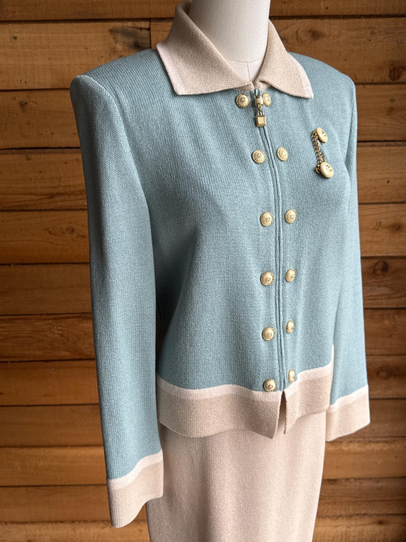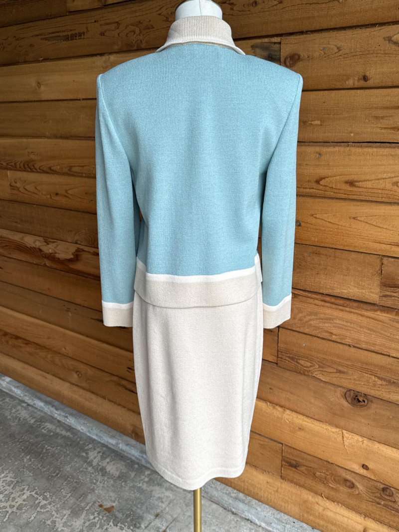 Lot # 7 - ST JOHN Blue, Tan & Ivory Skirt Suit- Sz 2