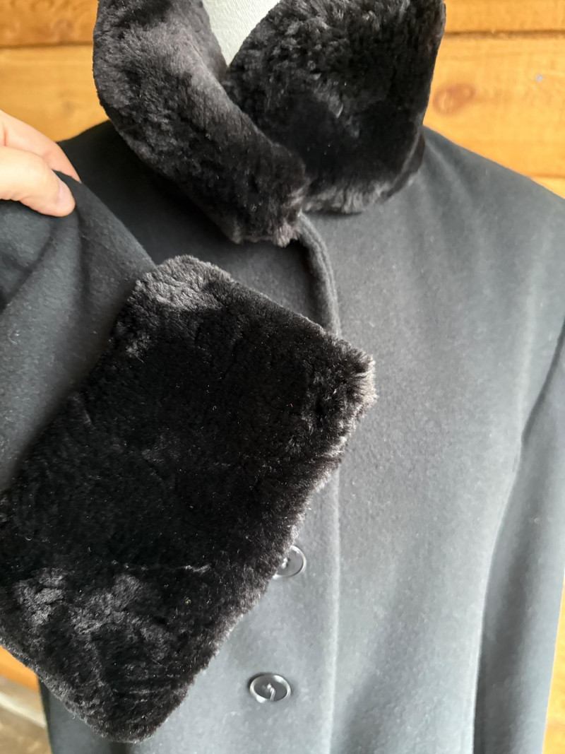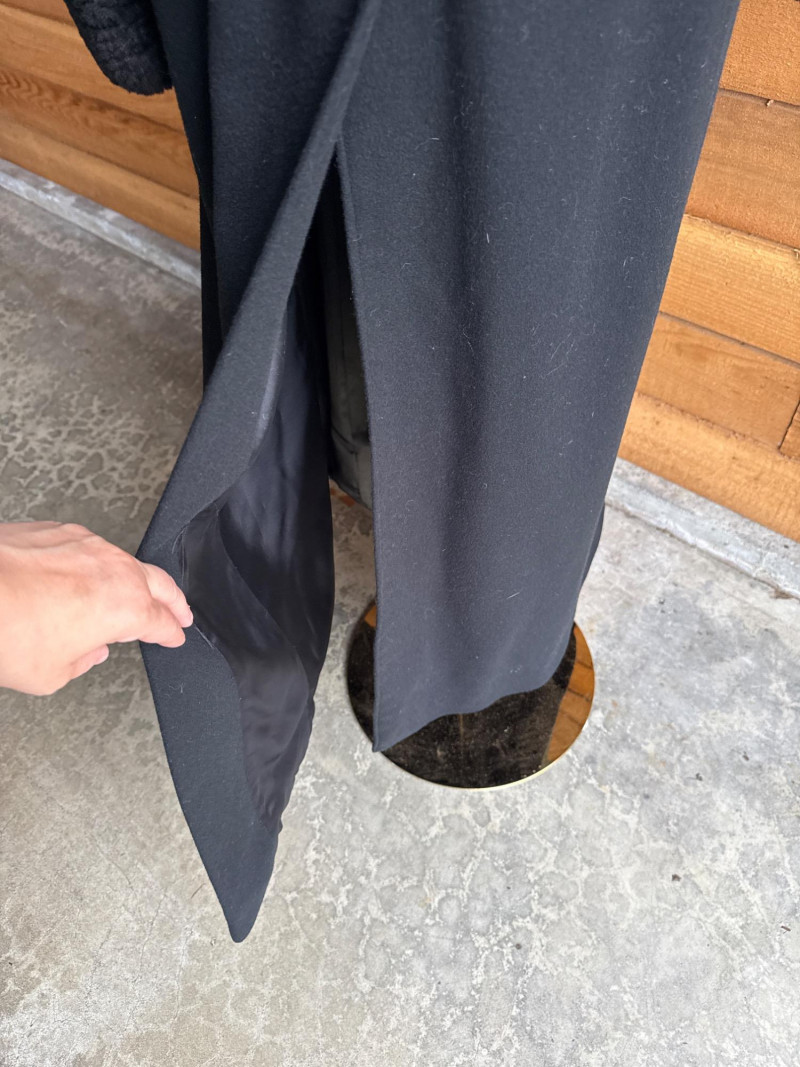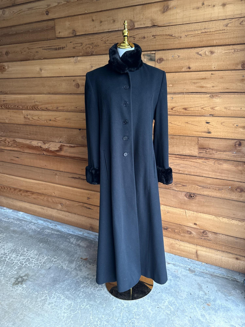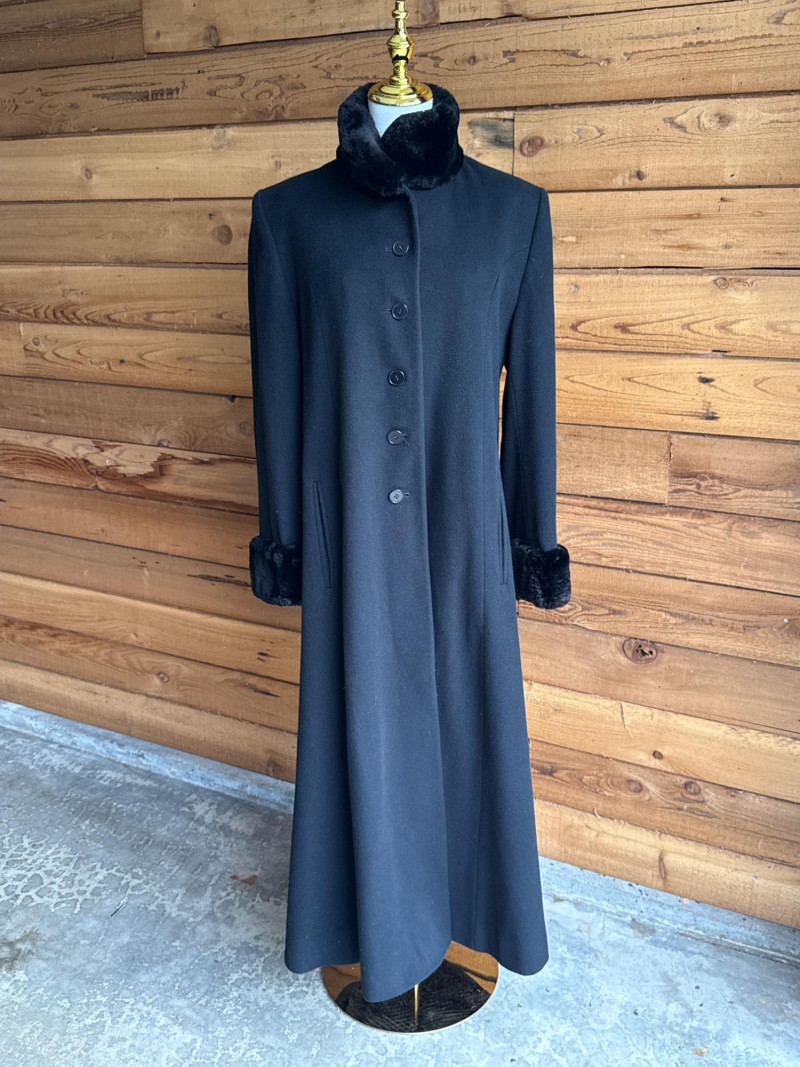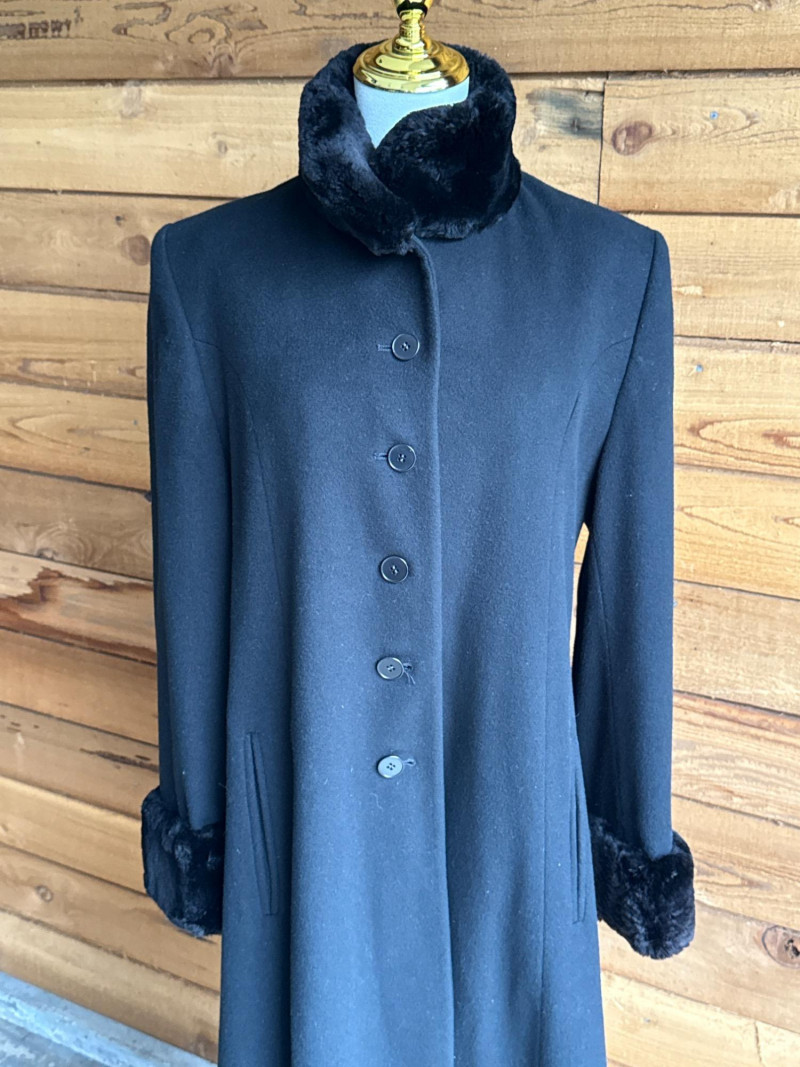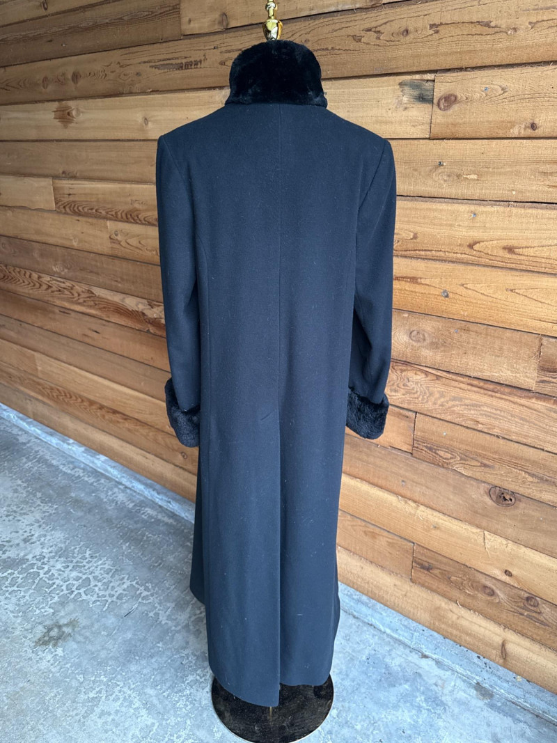 Lot # 8 - SEARLE Black Cashmere w/ Fur Long Coat- Sz 2