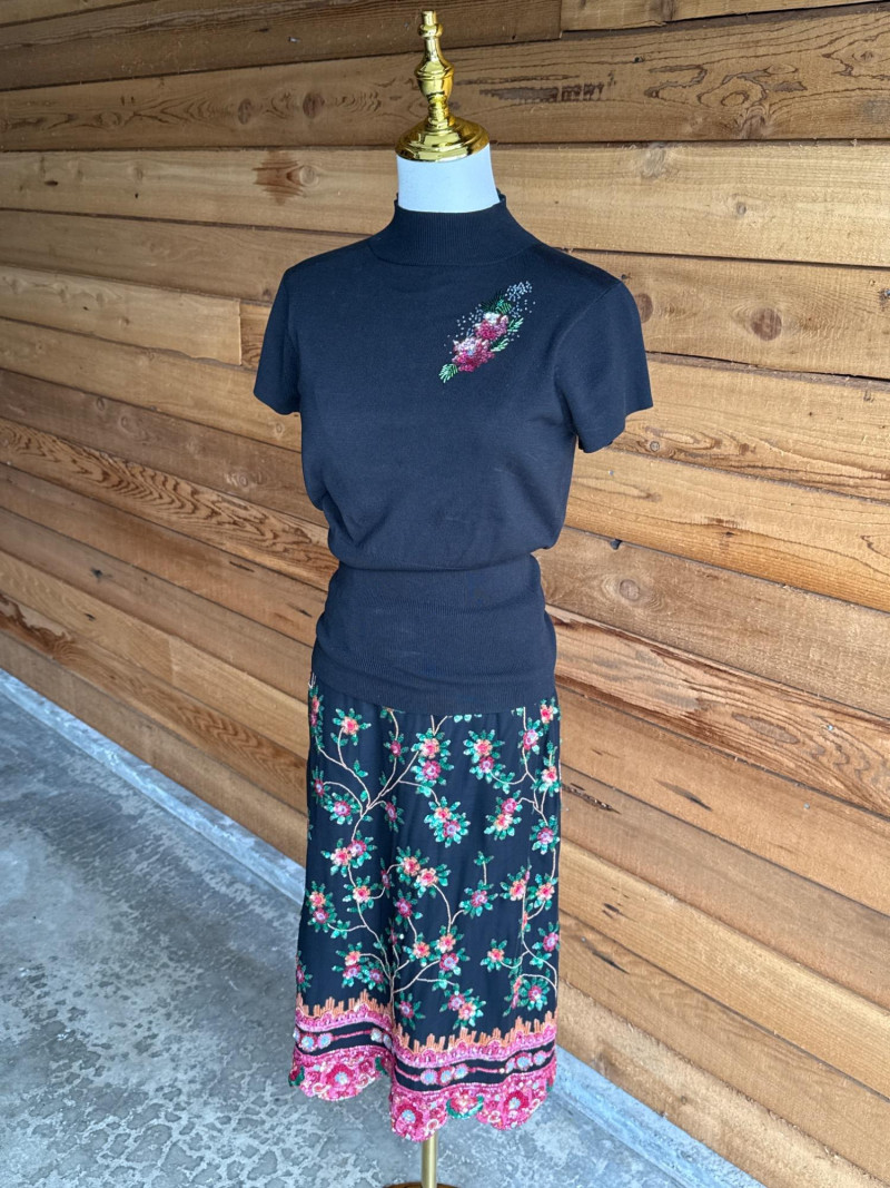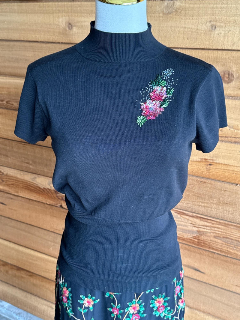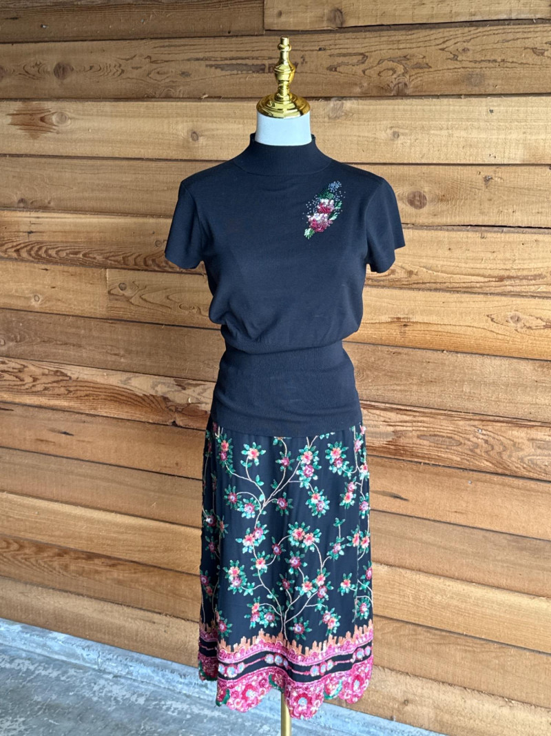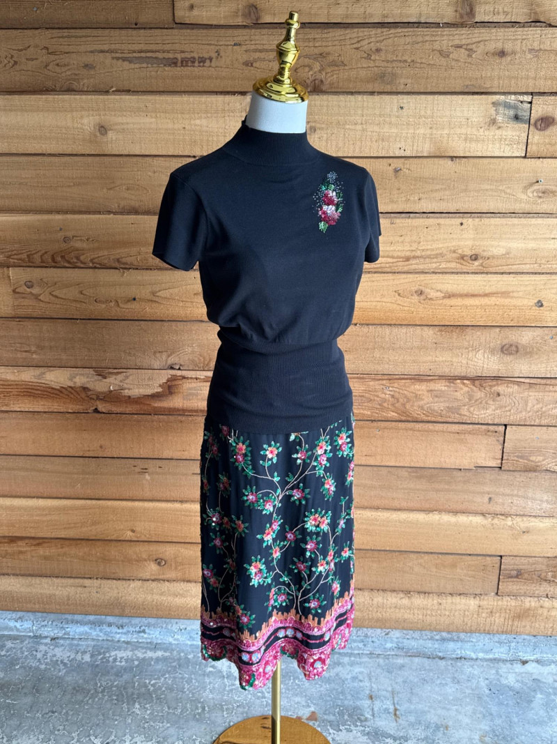 Lot # 12 - ESCADA Black Beaded Skirt (Sz 36) w/ Sweater (Sz L)