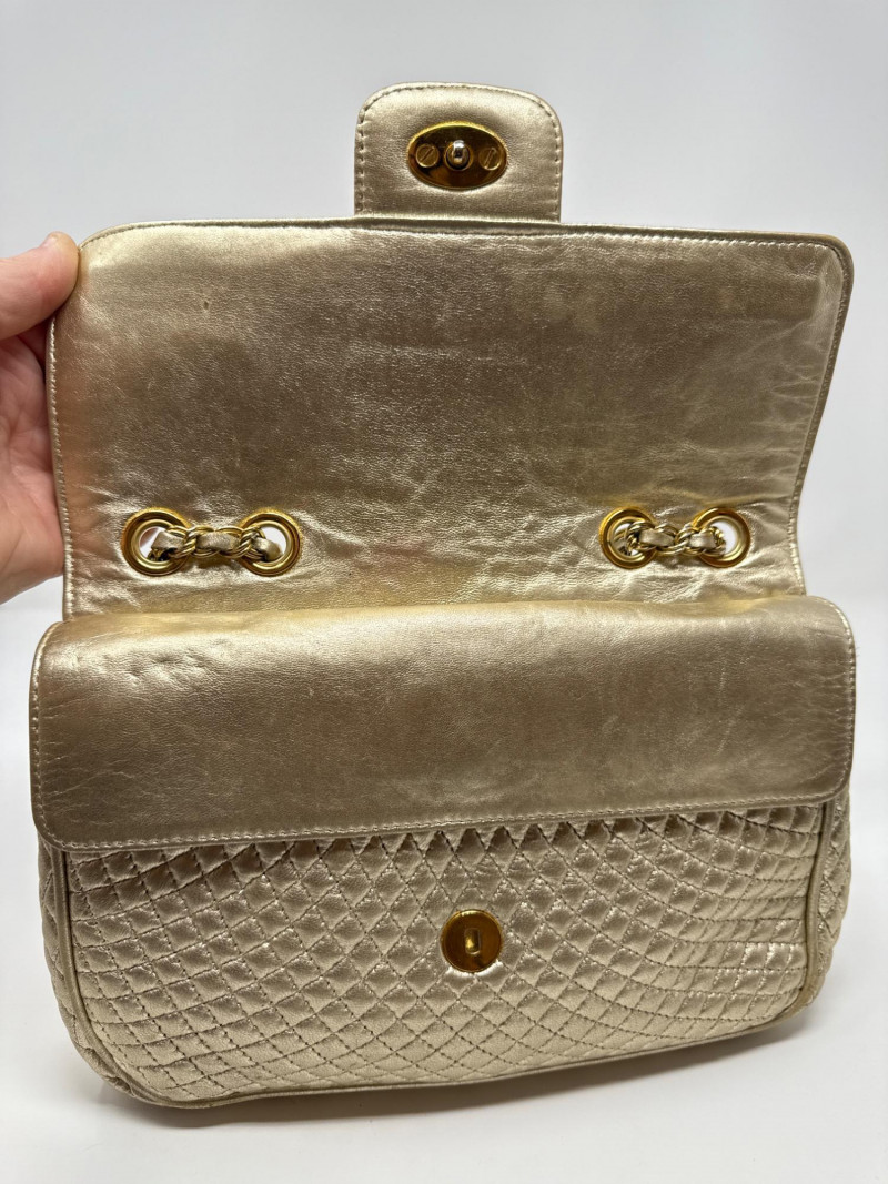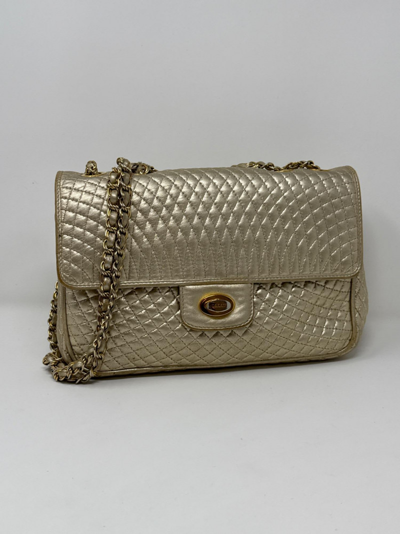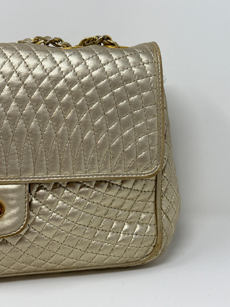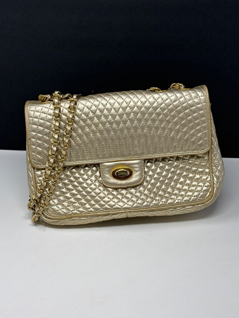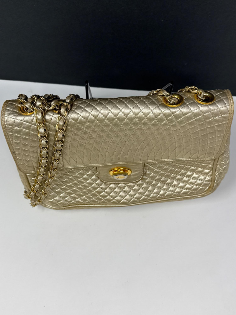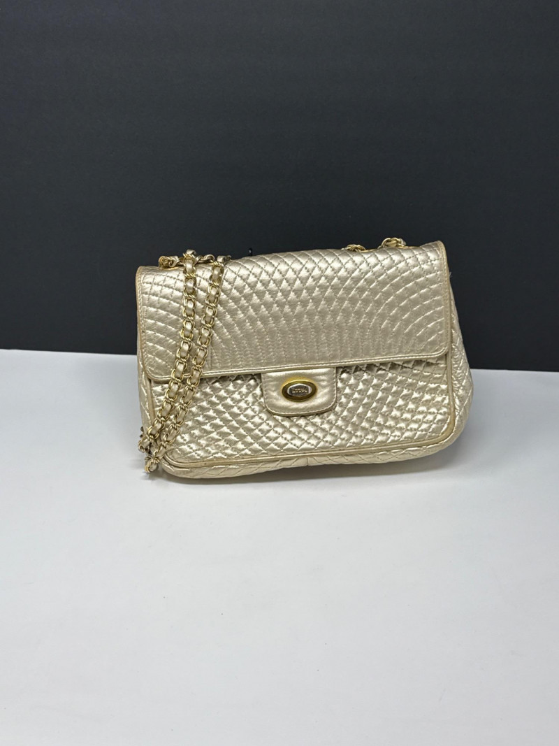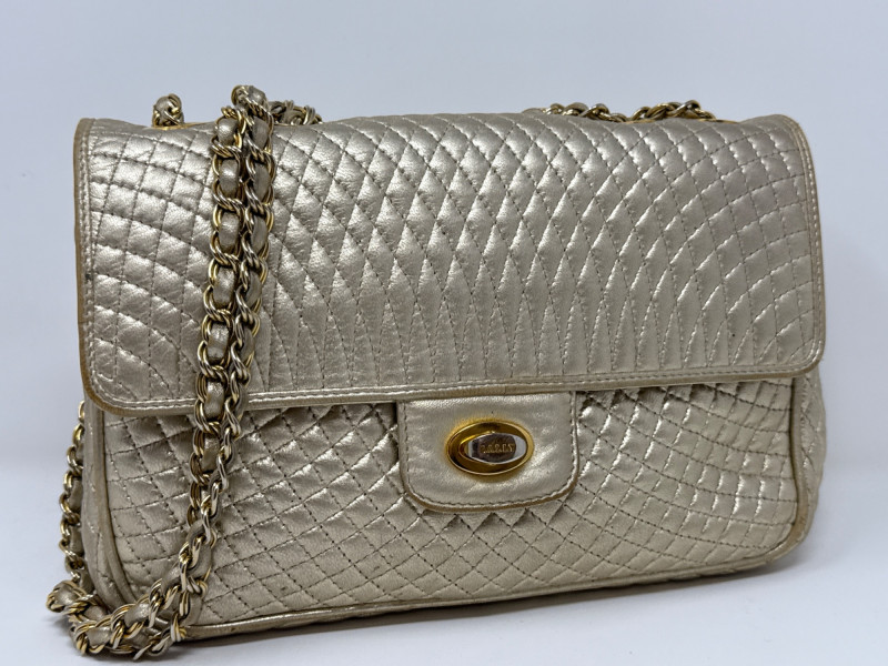 Lot # 15 - Vintage BALLY Gold Leather Quilted Shoulder Bag w/ Chain Strap