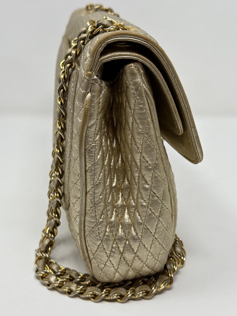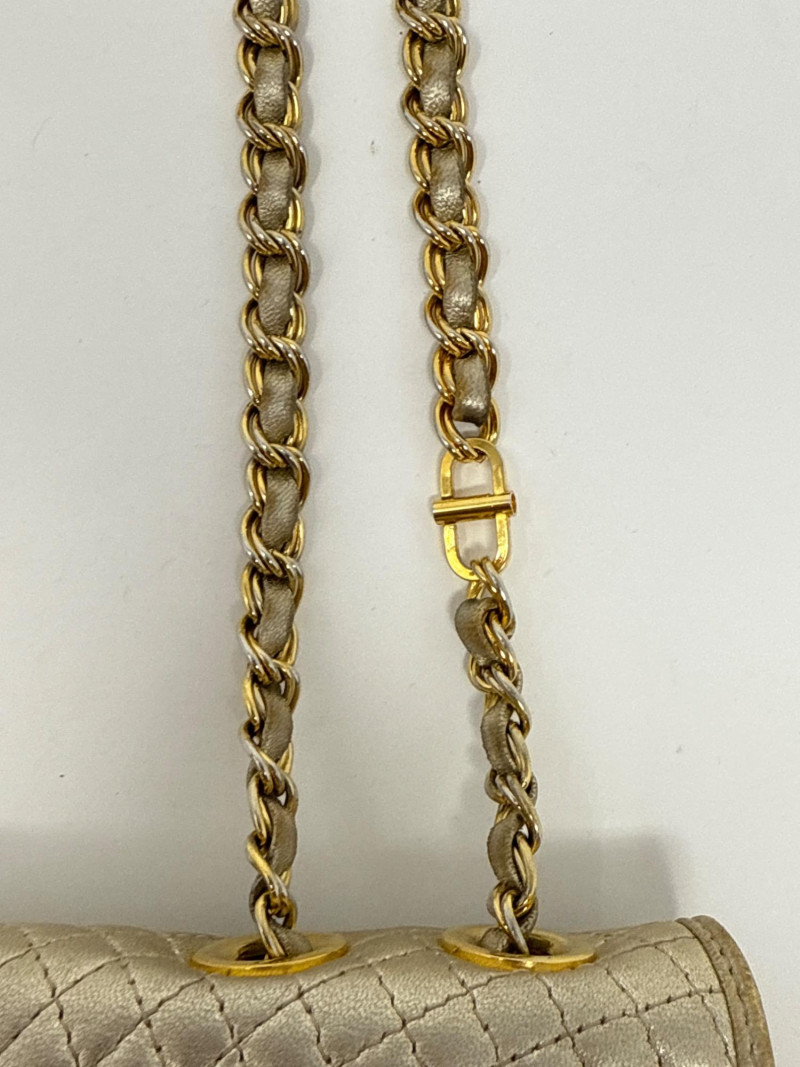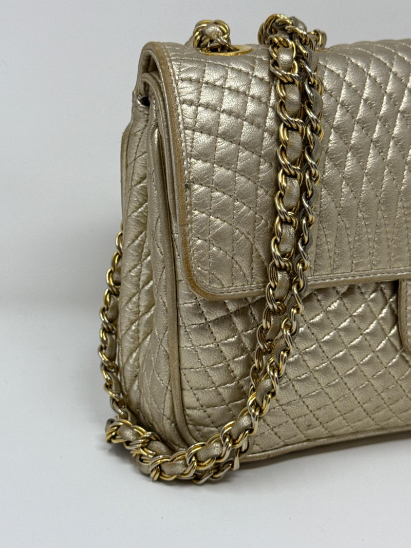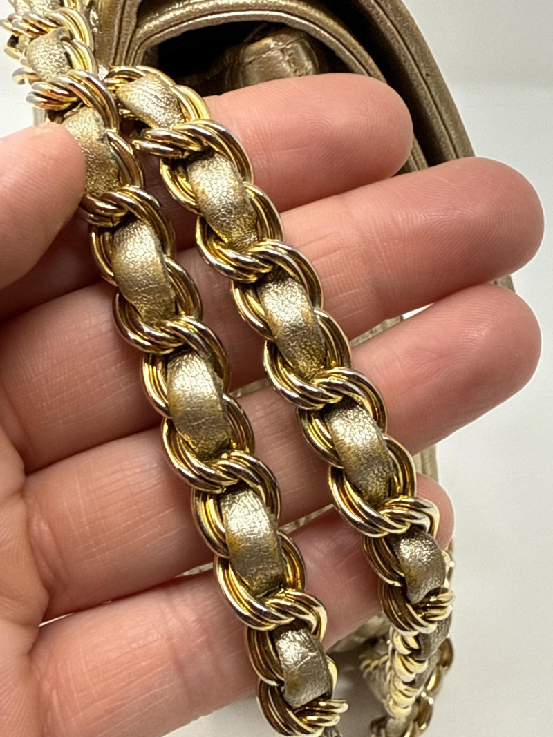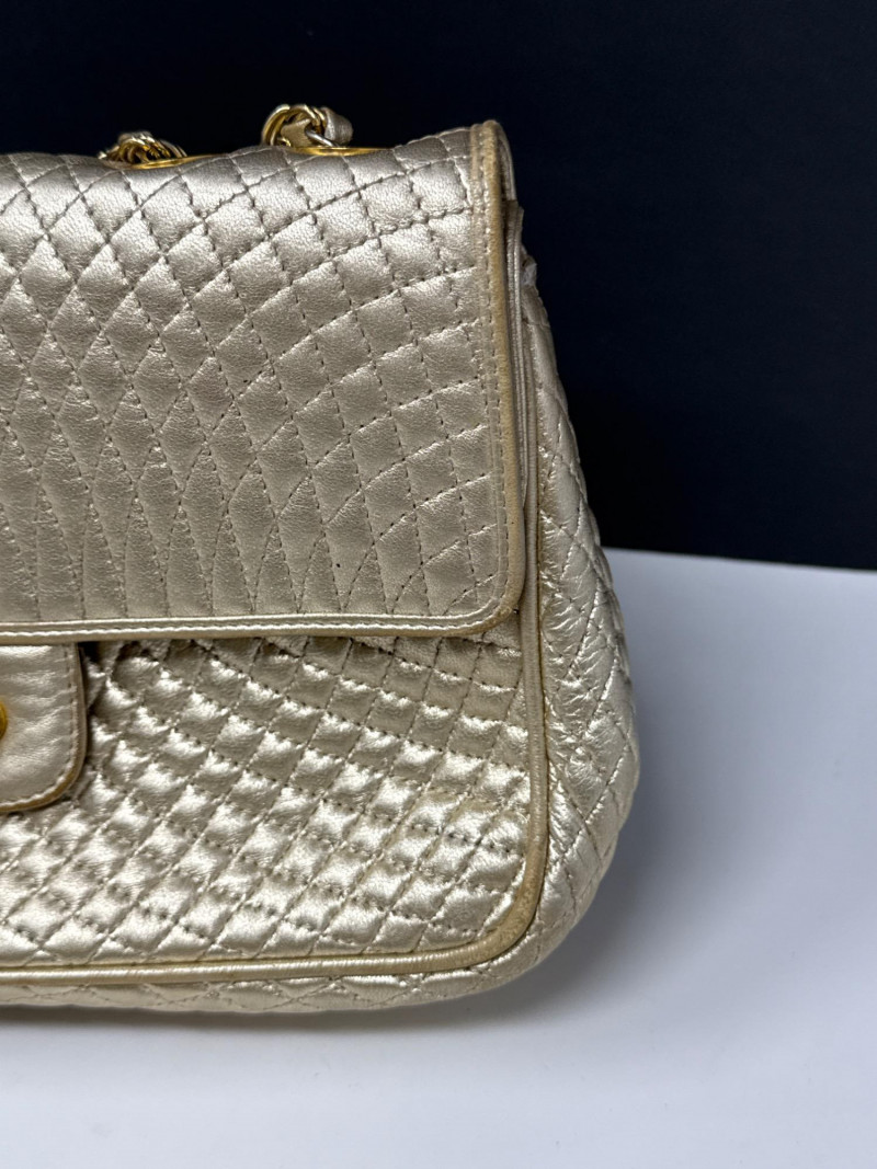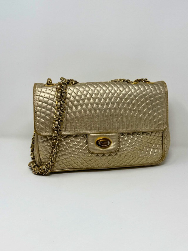 Lot # 15 - Vintage BALLY Gold Leather Quilted Shoulder Bag w/ Chain Strap
