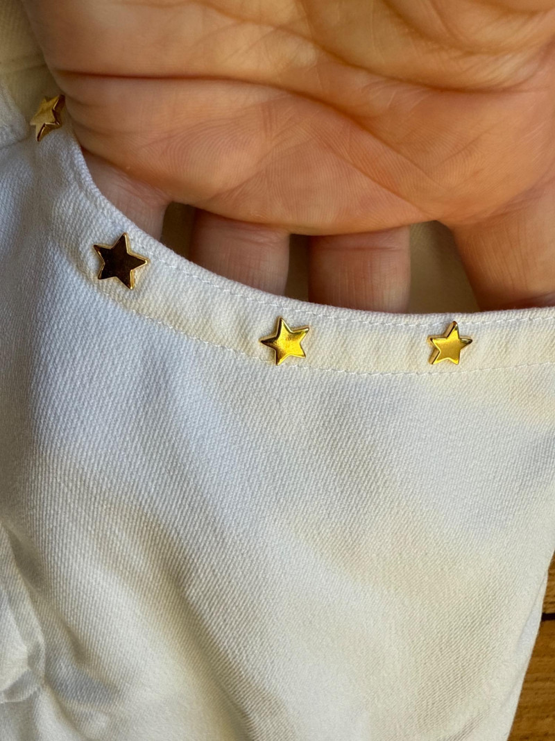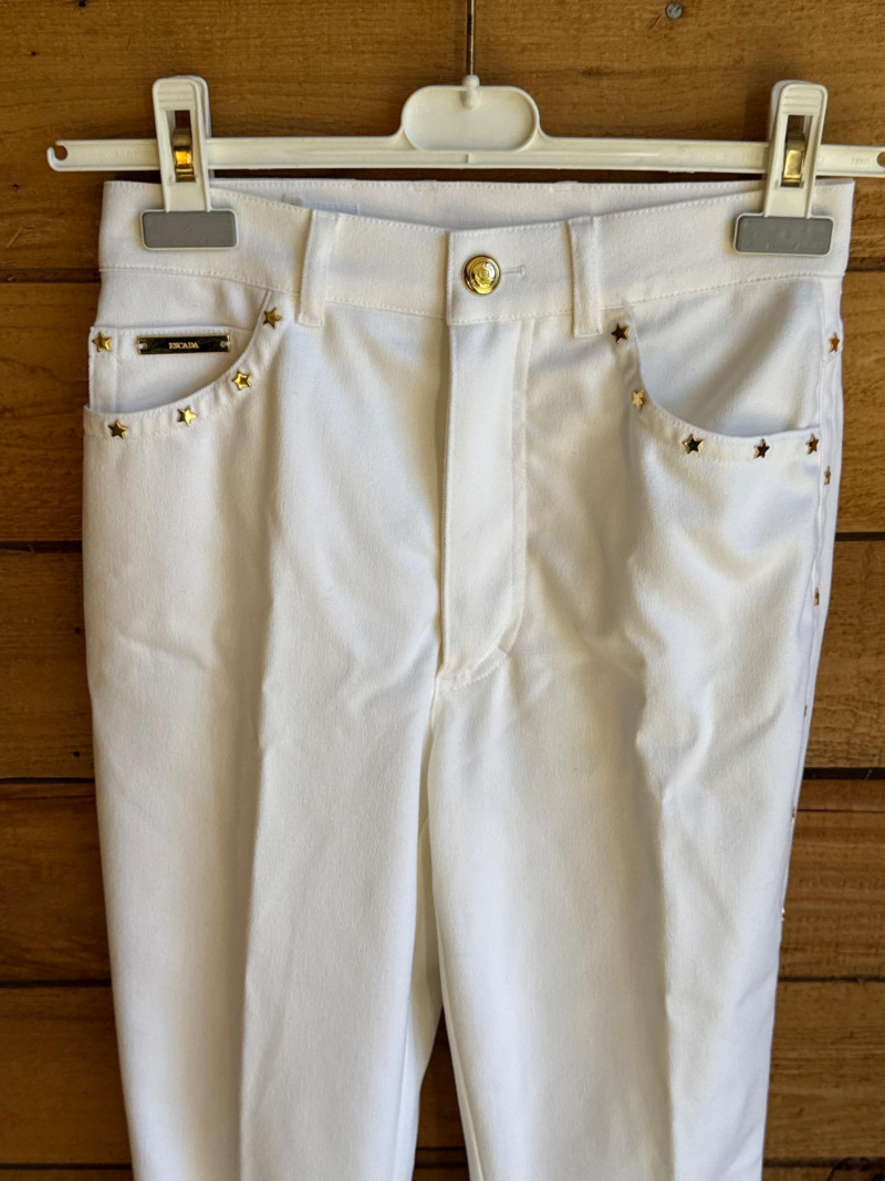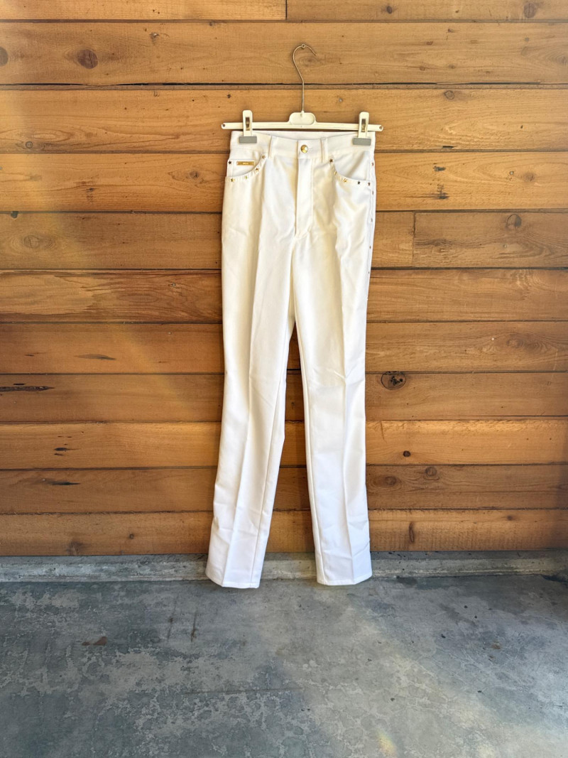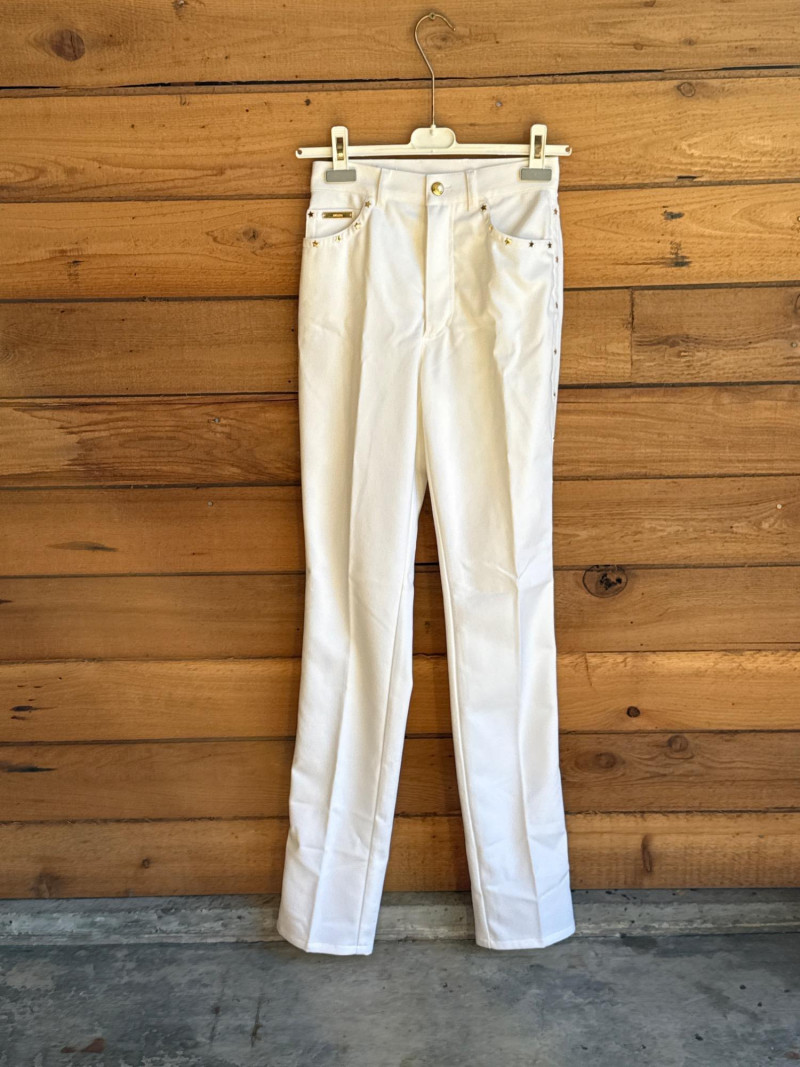 ESCADA White Stretch Denim Pants *NWT $425- Sz 34 White stretch denim with gold star hardware PLEASE NOTE DIFFERENT PICKUP TIMES THAN TYPICAL FOR SOUND ESTATE AUCTIONS Pickups will be Wednesday, July 30th and Thursday, July 31st, Saturday, August 2nd from 4-6pm (firm by 6pm on Thursday) If you can not make these times, PLEASE ask for alternate available times or shipping. Shipping times will be up to 2 weeks after auction closes. Please call/text Jessica 253-350-0864 *All items will need to be collected by August 15th