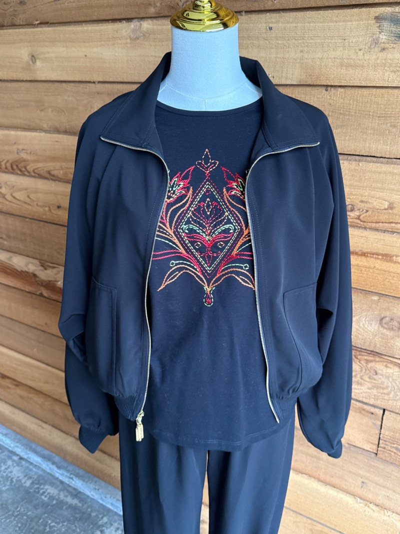 Lot # 43 - ST JOHN Sport Black Leisure Pant Suit & Tee- Sz S/P