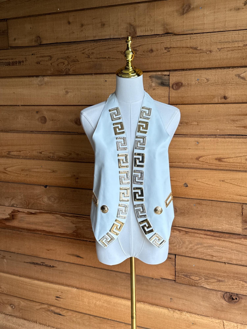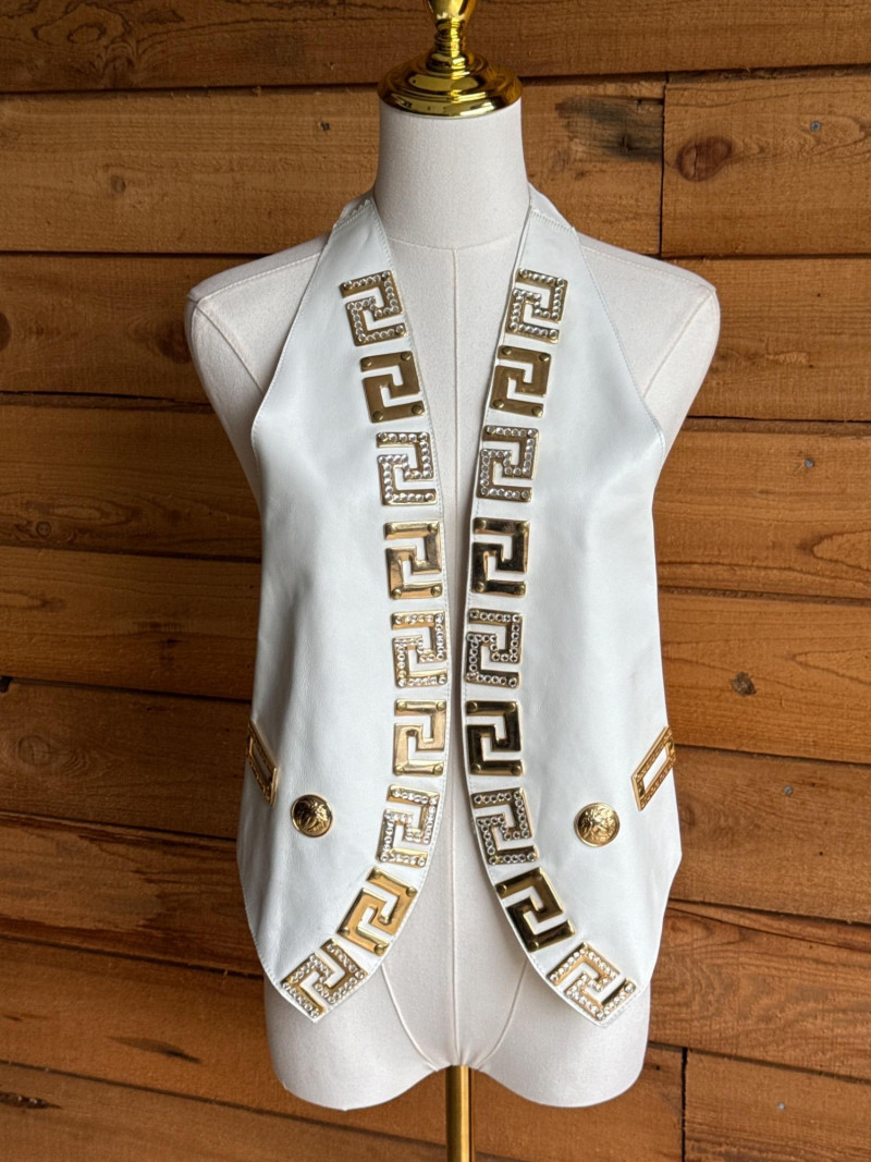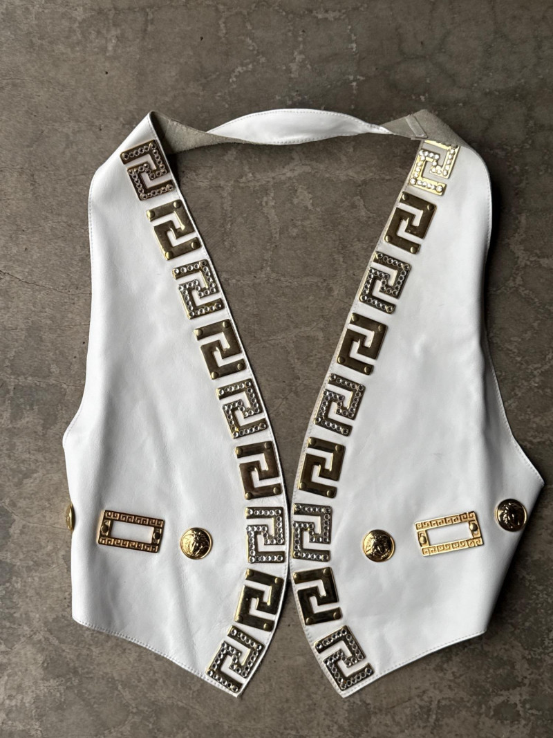 Lot # 45 - Vintage VERSACE(?) White Leather Vest w/ Gold