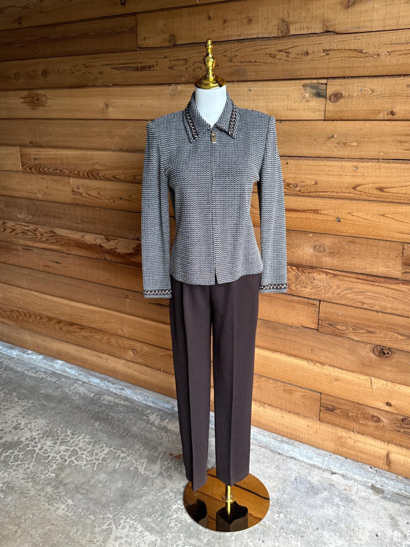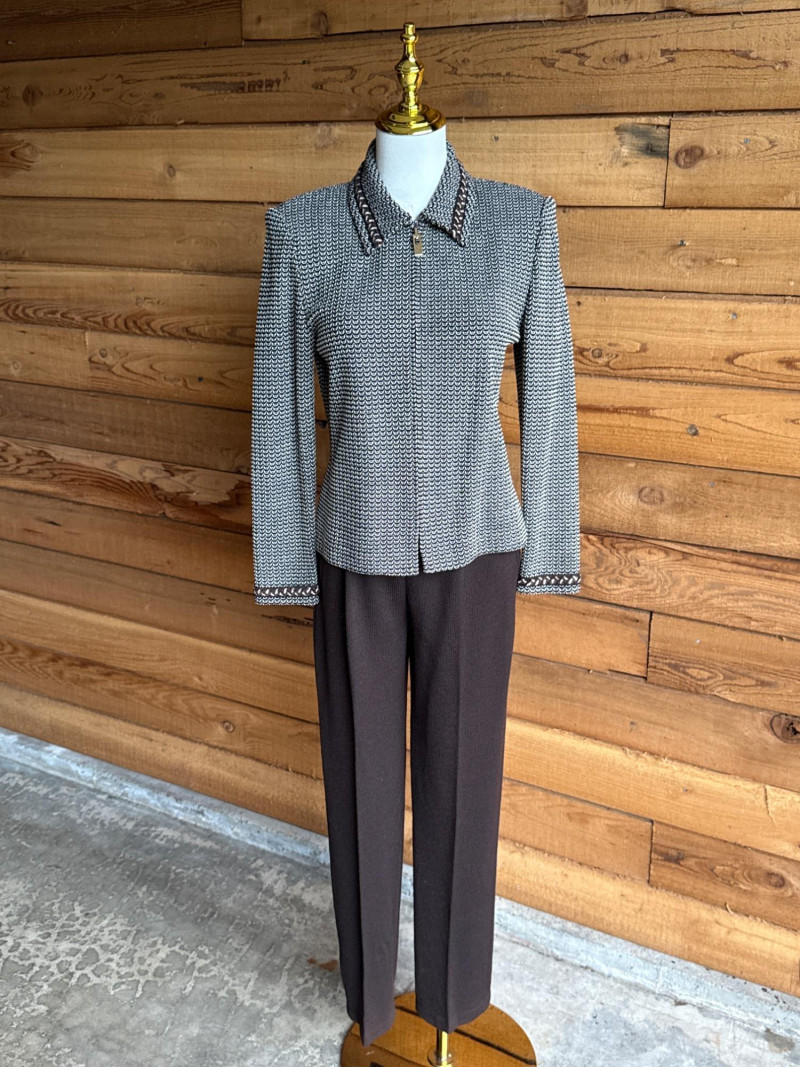 Lot # 55 - ST JOHN Brown Tweed Jacket & Pant Suit- Sz 2