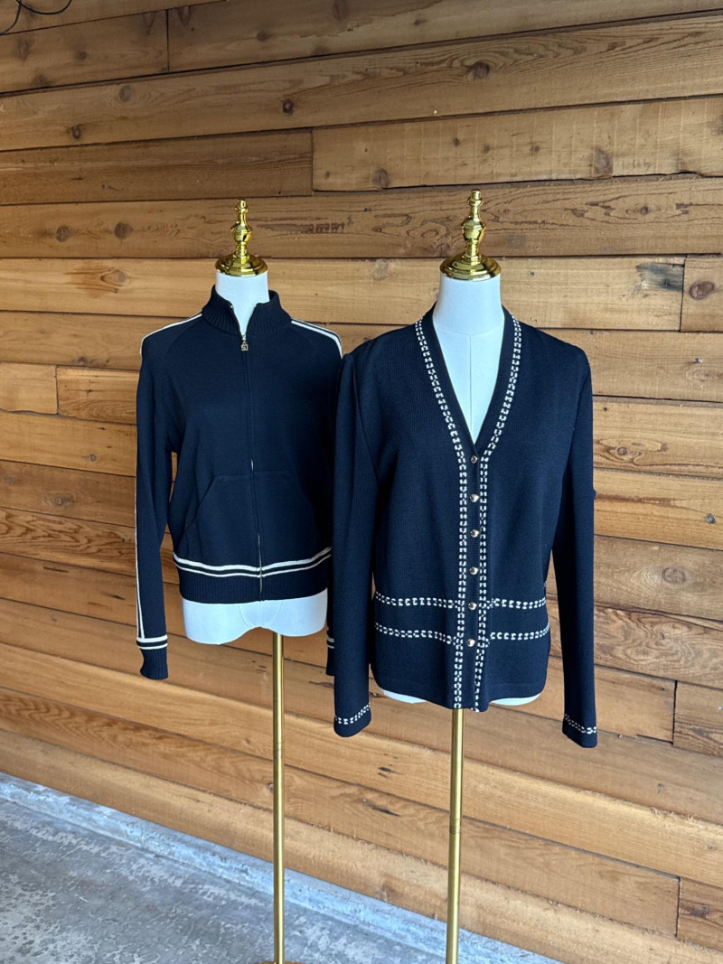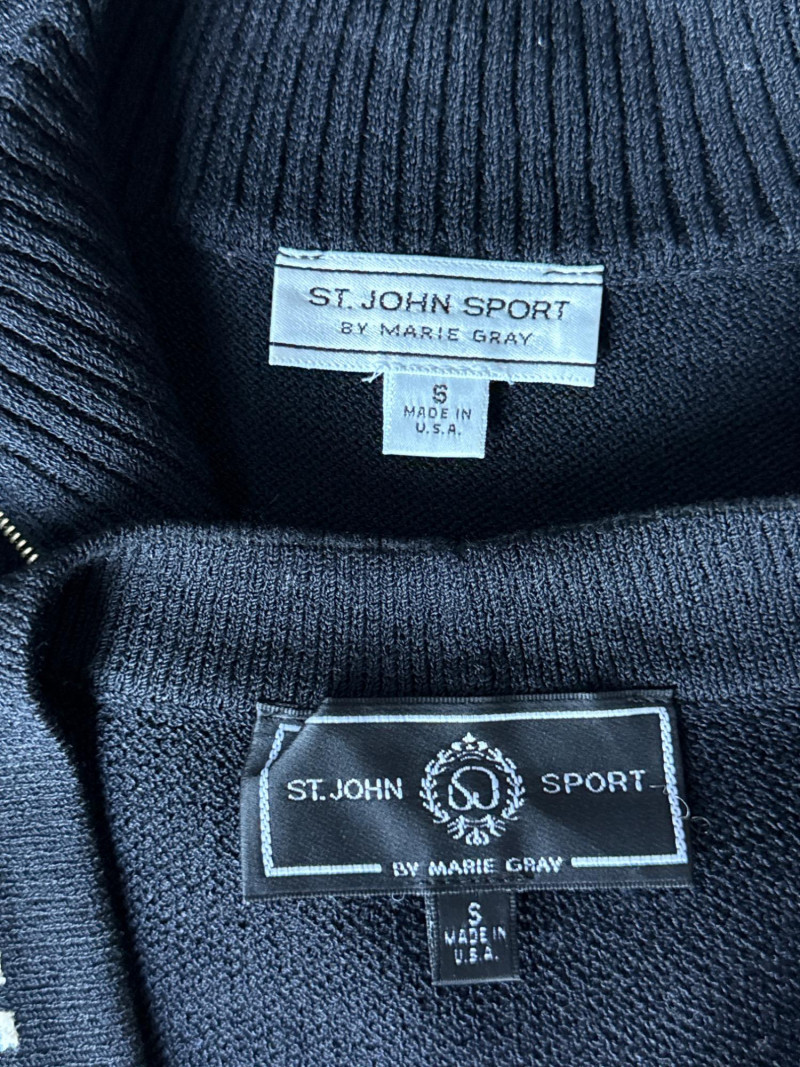 ST JOHN Sport Black w/ Gold Sweater Duo- Sz S gently used condition. laundering suggested PLEASE NOTE DIFFERENT PICKUP TIMES THAN TYPICAL FOR SOUND ESTATE AUCTIONS Pickups will be Wednesday, July 30th and Thursday, July 31st, Saturday, August 2nd from 4-6pm (firm by 6pm on Thursday) If you can not make these times, PLEASE ask for alternate available times or shipping. Shipping times will be up to 2 weeks after auction closes. Please call/text Jessica 253-350-0864 *All items will need to be collected by August 15