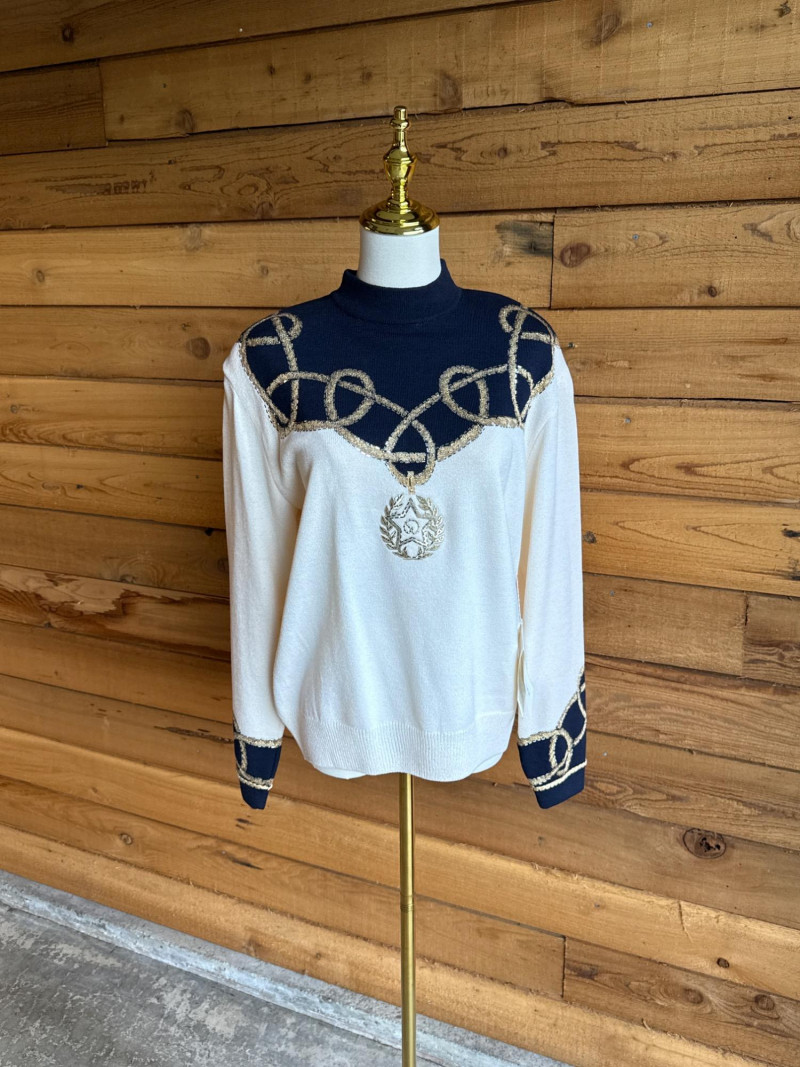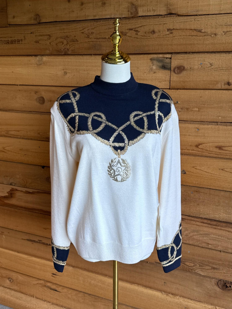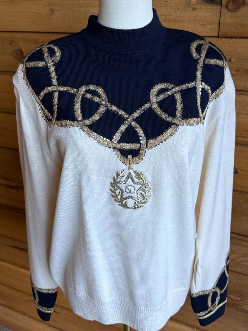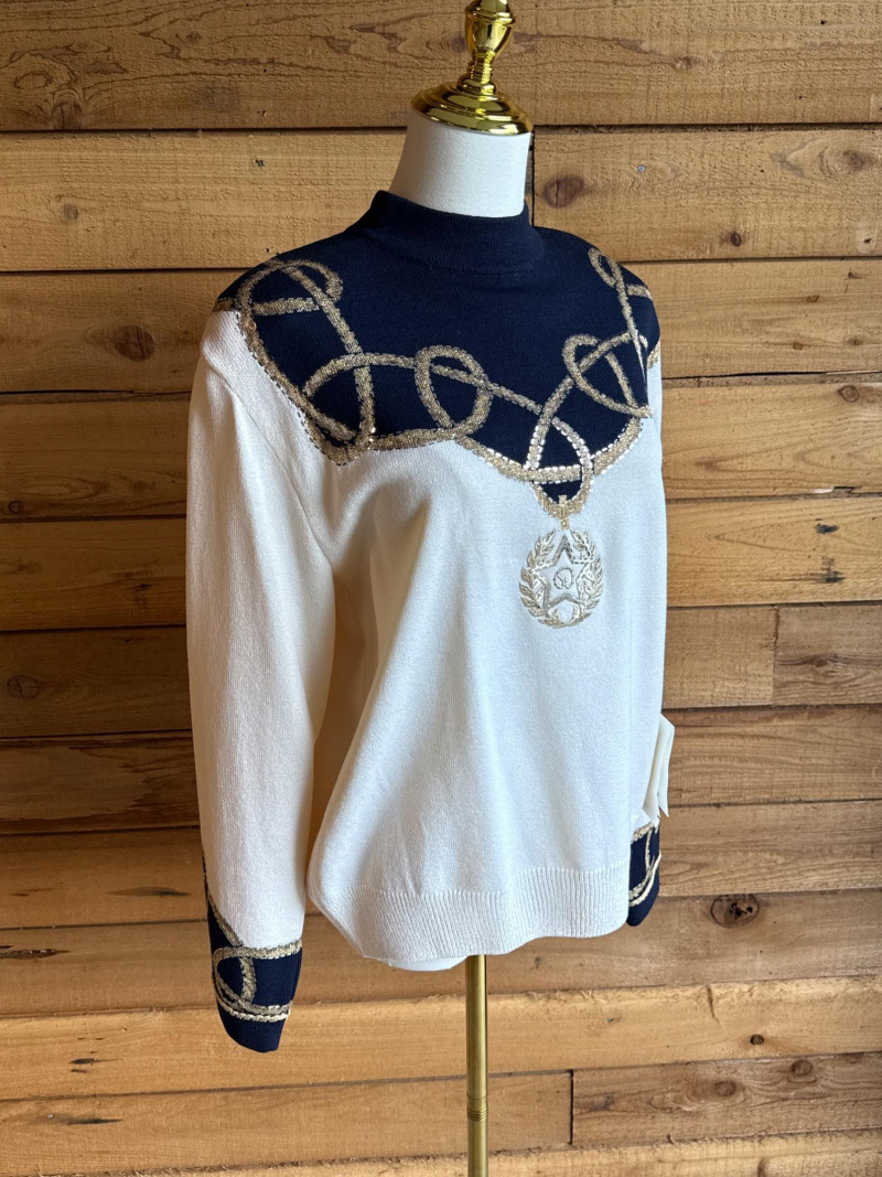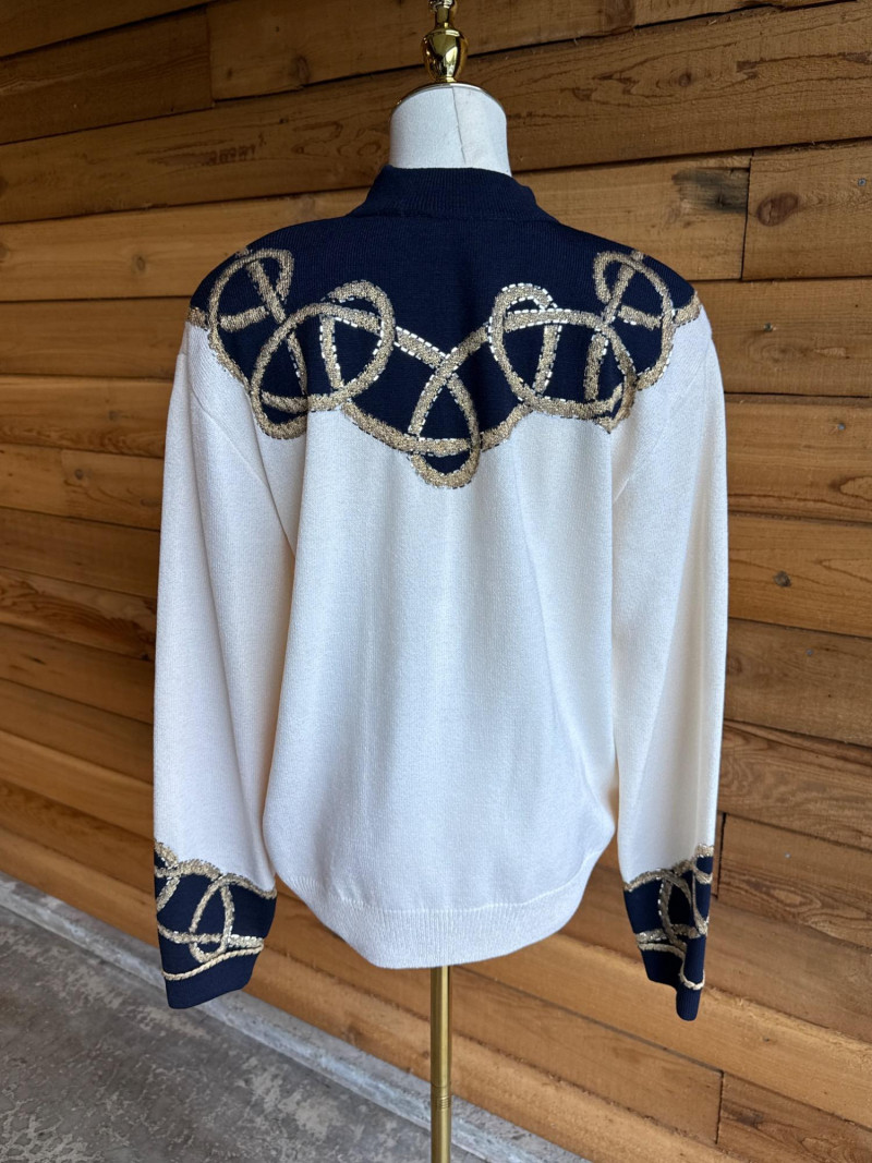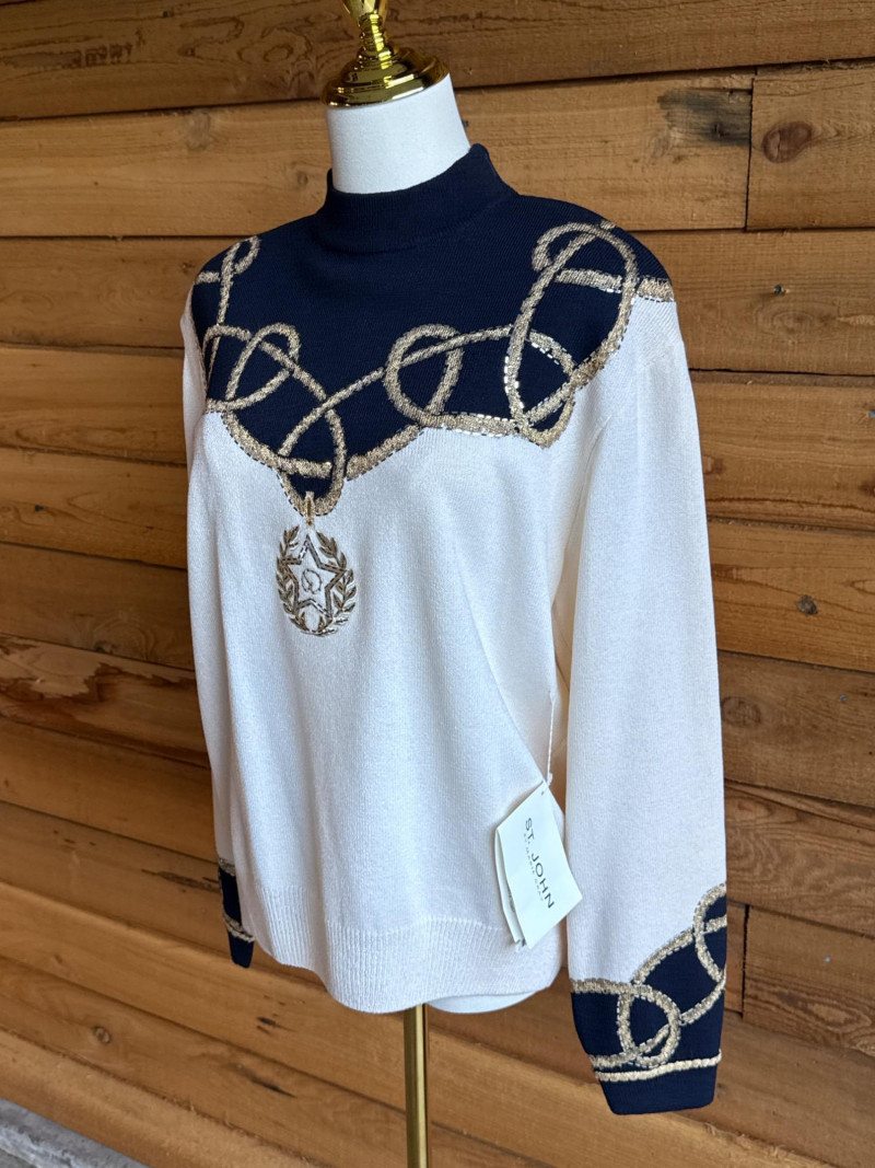 Lot # 63 - ST JOHN Ivory & Navy Blue Sweater *NWT $500- Sz M