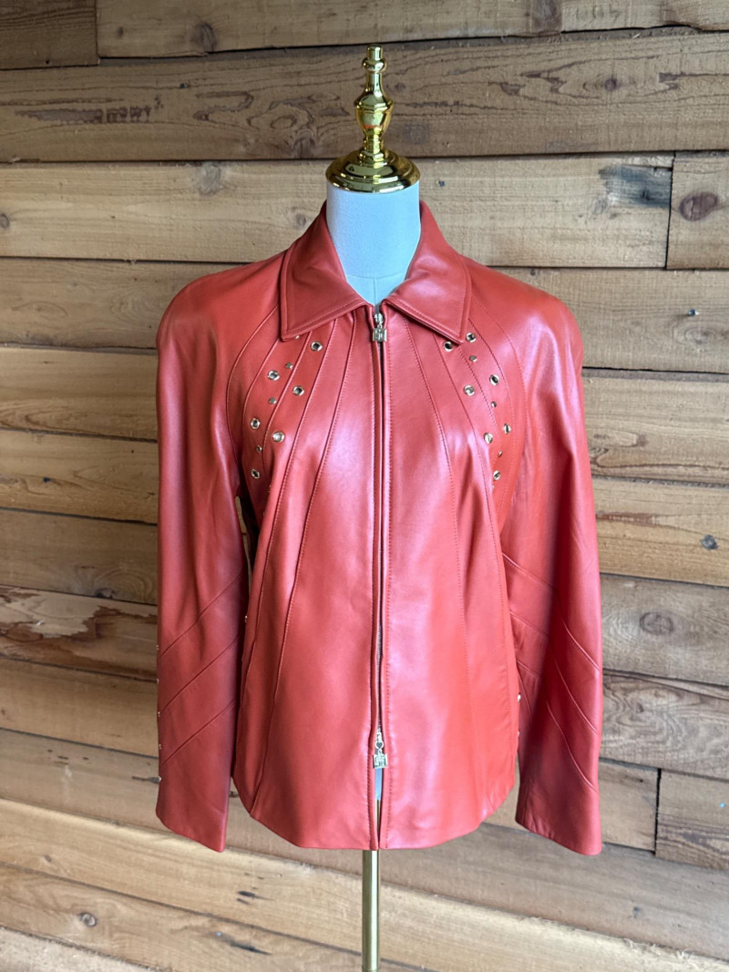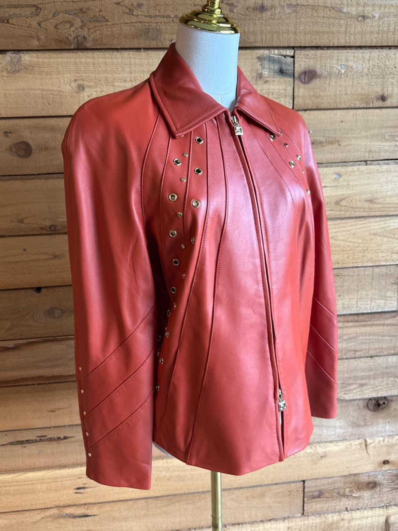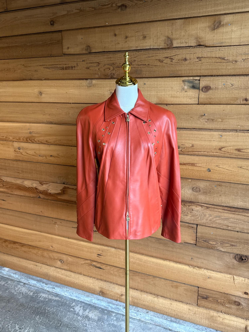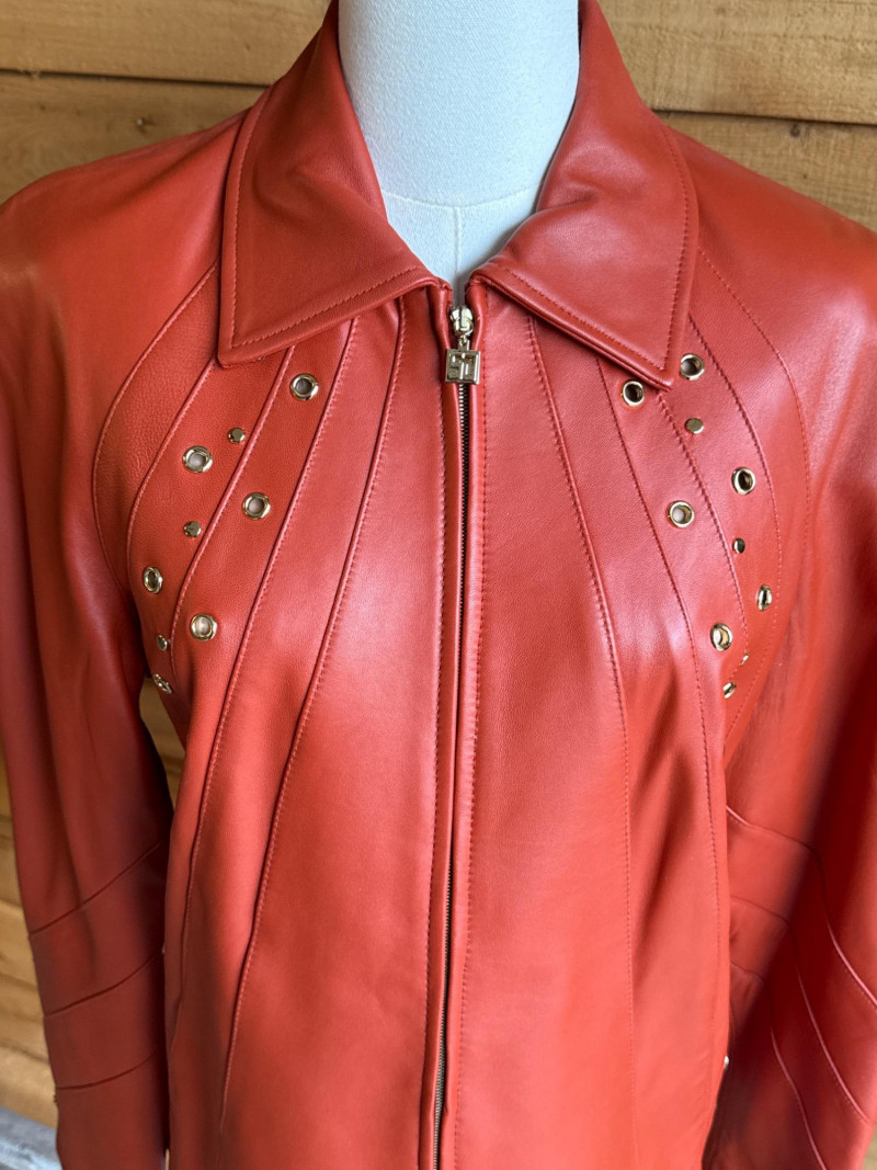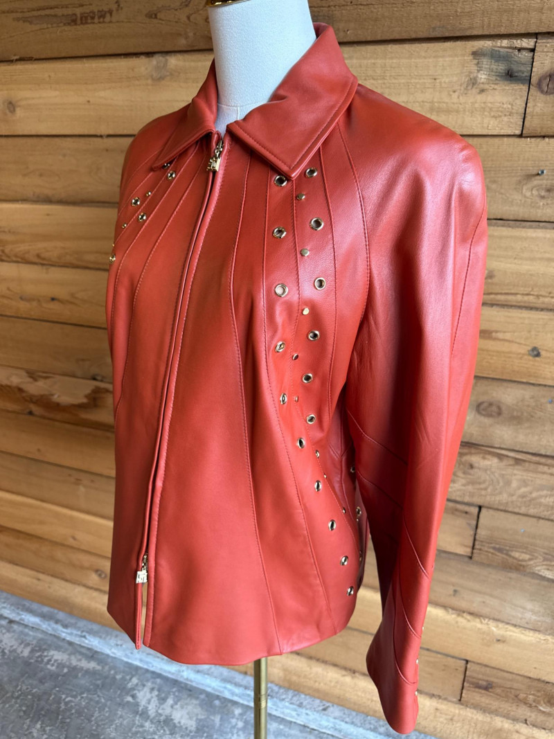 Lot # 65 - ST JOHN Sport Rust Orange Leather Jacket- Sz S