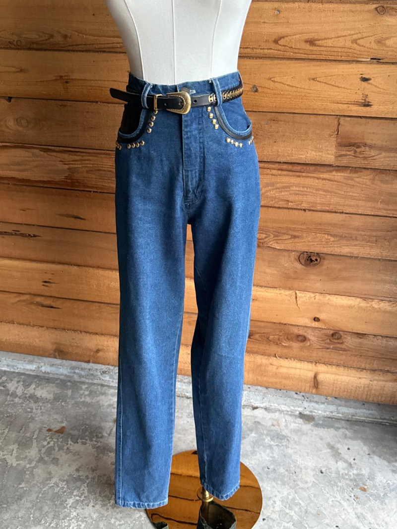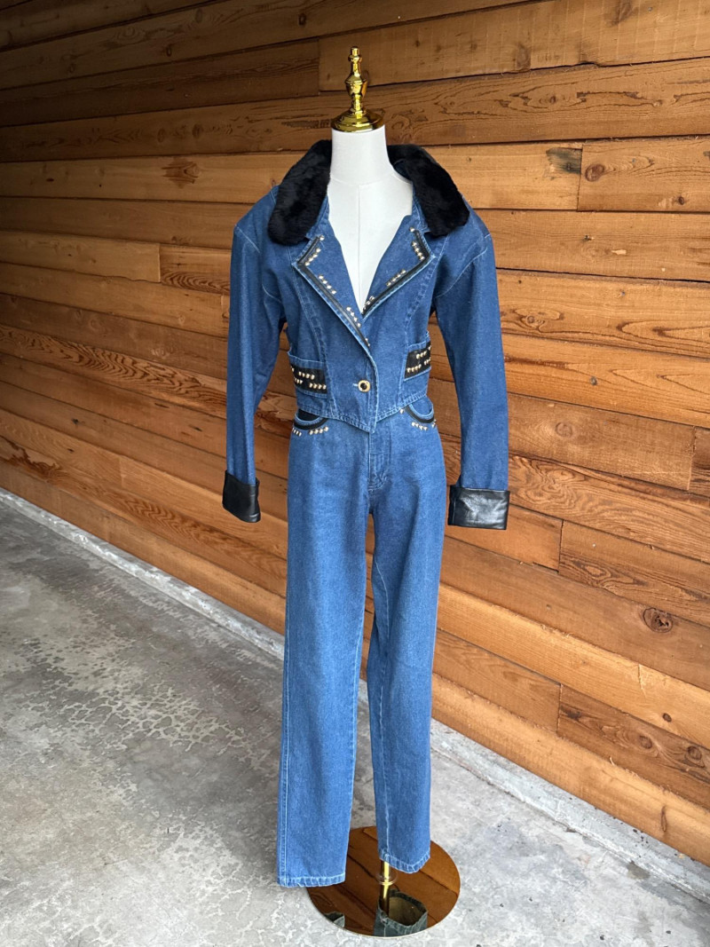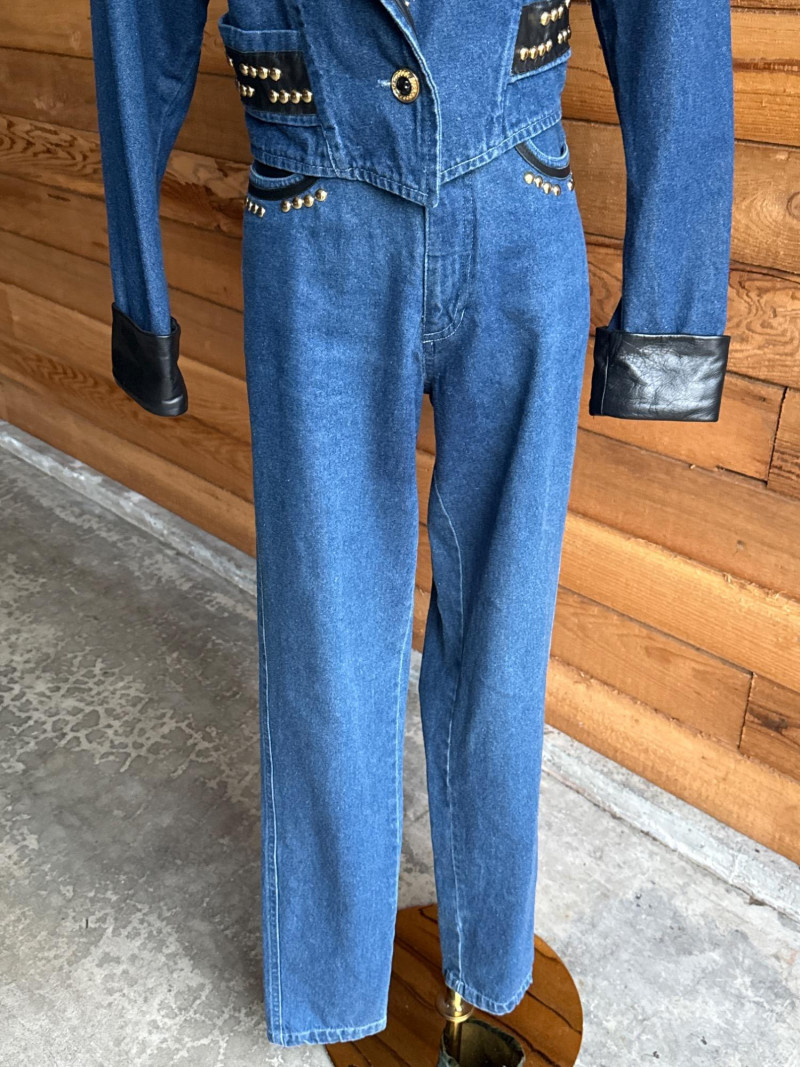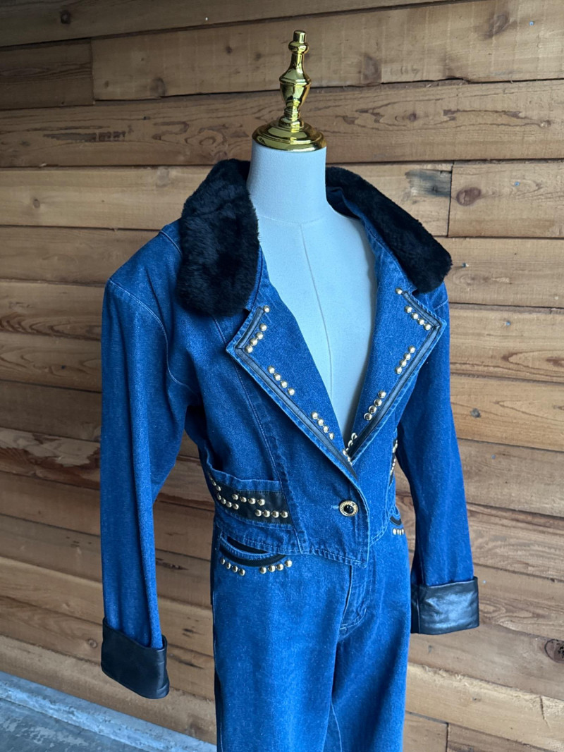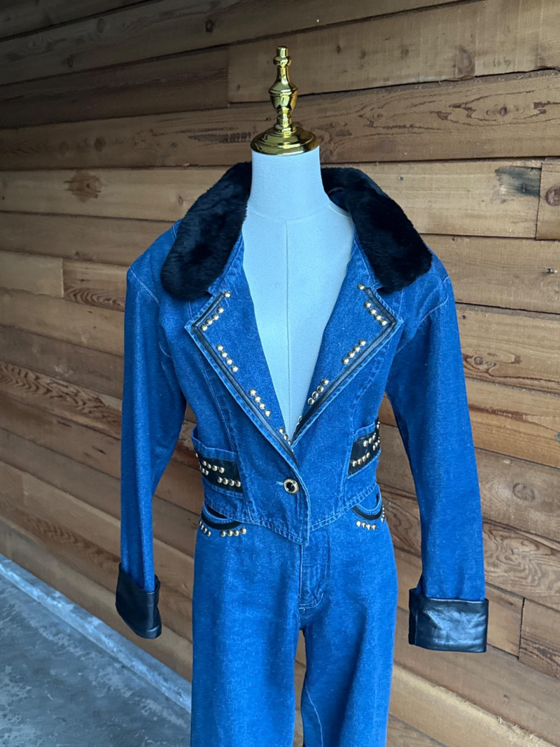 Vintage CACHE Denim Pant & Jacket Set w/ Belt- Sz 4/XS Pretty Denim with Black Leather Trim and Gold Toned Hardware Studs. Jacket has Black Faux Fur Collar Trim. PLEASE NOTE DIFFERENT PICKUP TIMES THAN TYPICAL FOR SOUND ESTATE AUCTIONS Pickups will be Wednesday, July 30th and Thursday, July 31st, Saturday, August 2nd from 4-6pm (firm by 6pm on Thursday) If you can not make these times, PLEASE ask for alternate available times or shipping. Shipping times will be up to 2 weeks after auction closes. Please call/text Jessica 253-350-0864 *All items will need to be collected by August 15