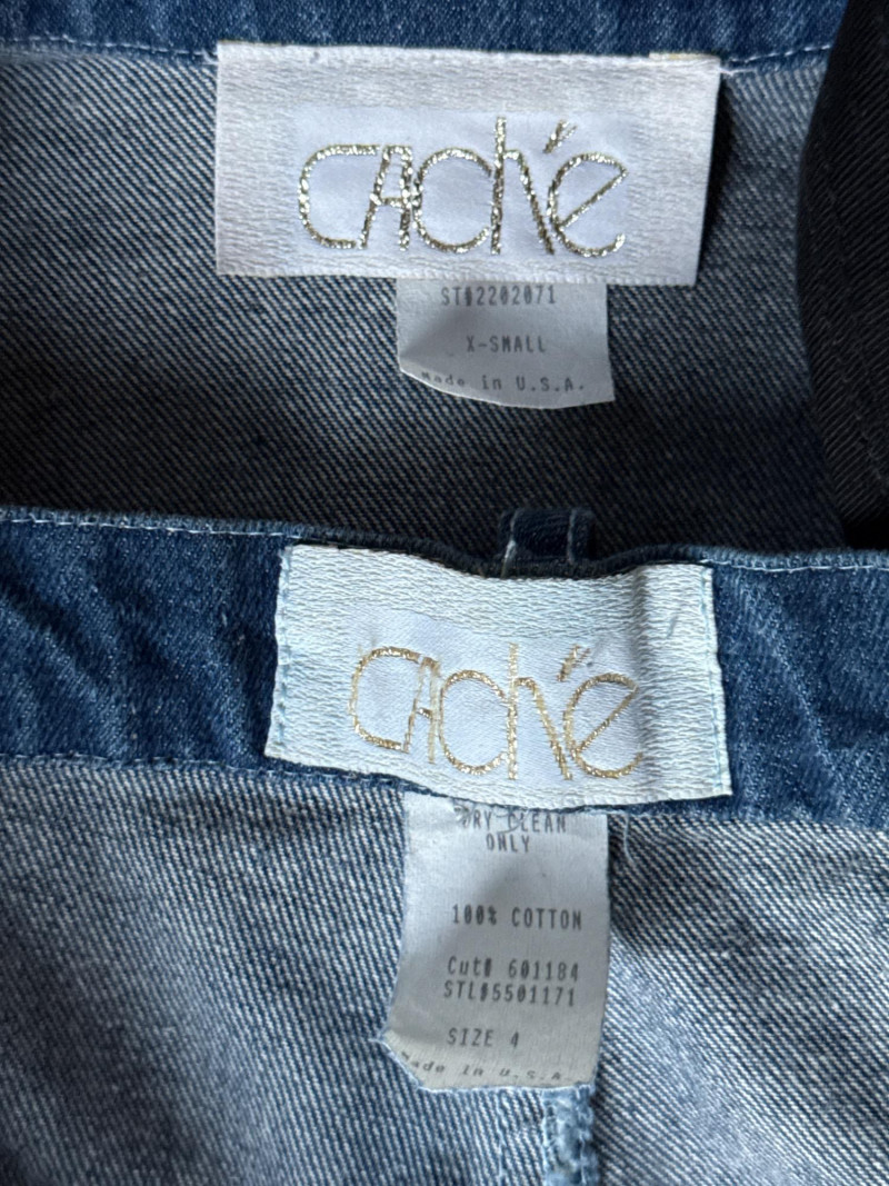 Lot # 66 - Vintage CACHE Denim Pant & Jacket Set w/ Belt- Sz 4/XS