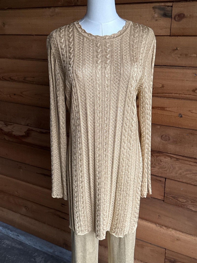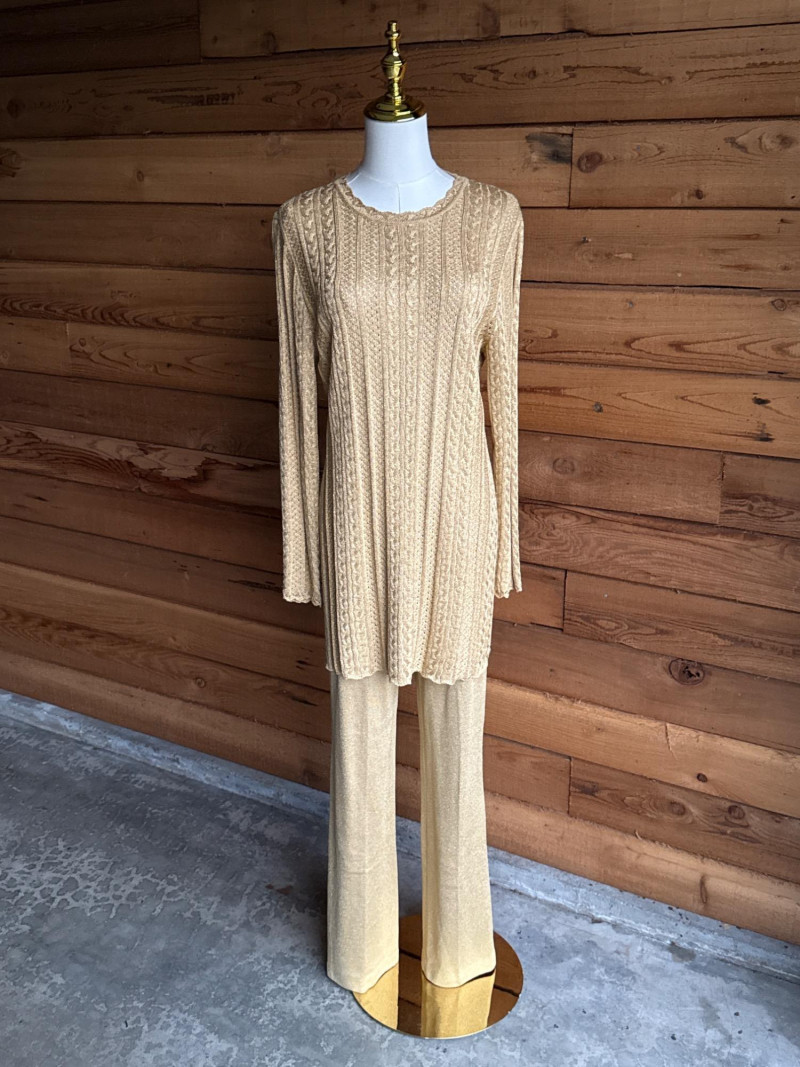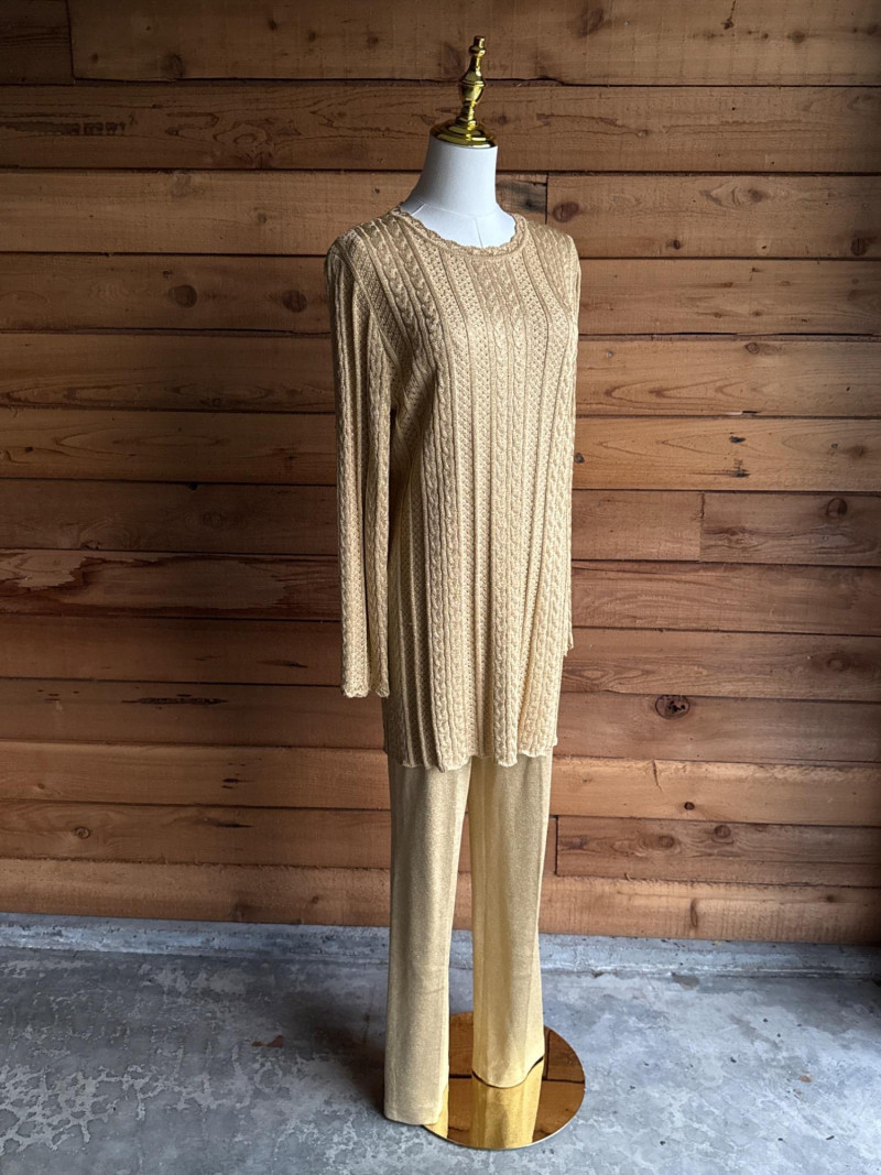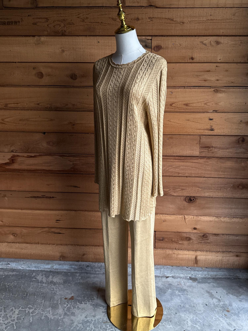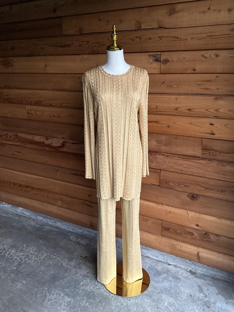 Lot # 72 - ST JOHN Gold Metallic Knit Pant & Tunic Set- Sz S/4