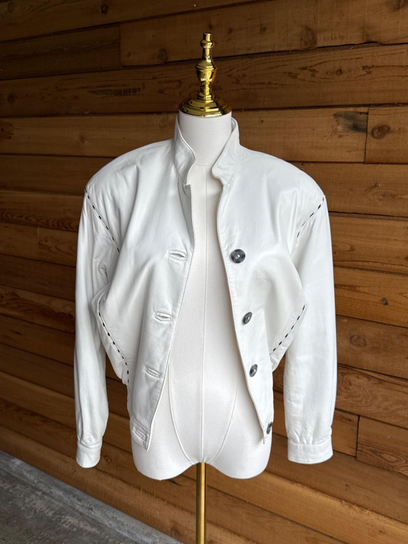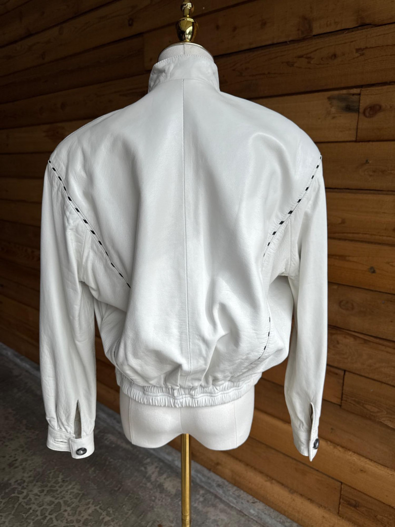 Lot # 78 - Vintage BALLY White Italian Leather Jacket- Sz 6