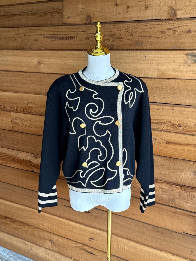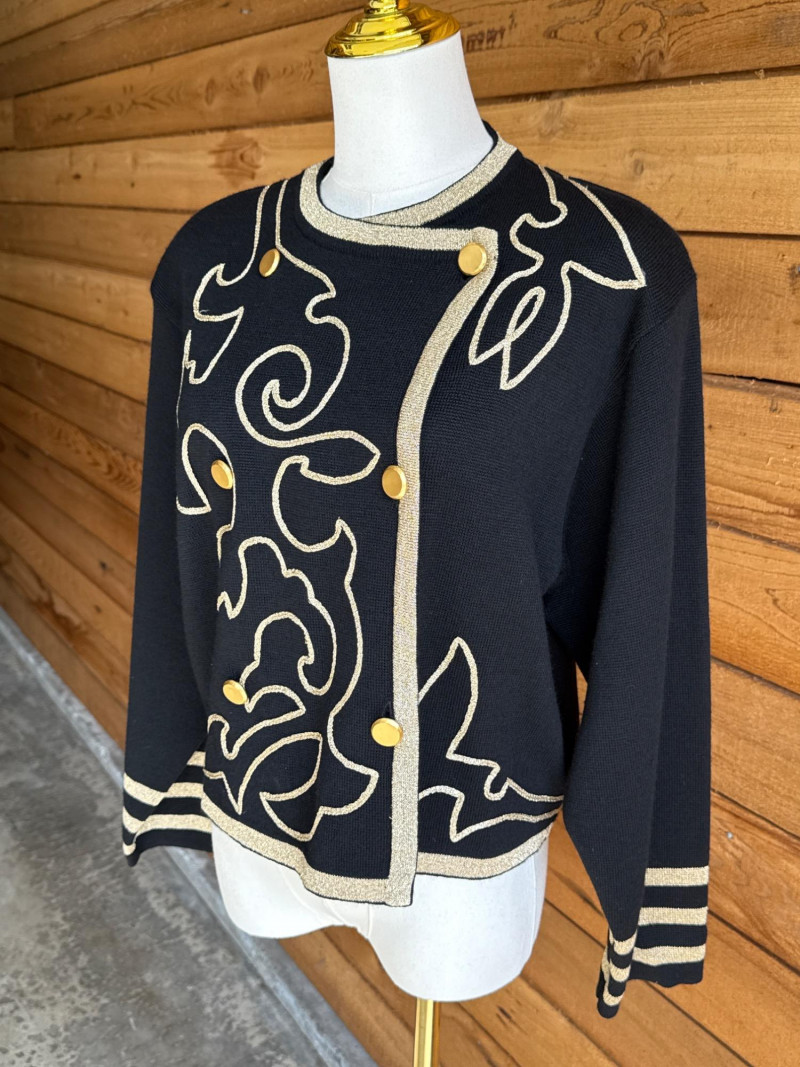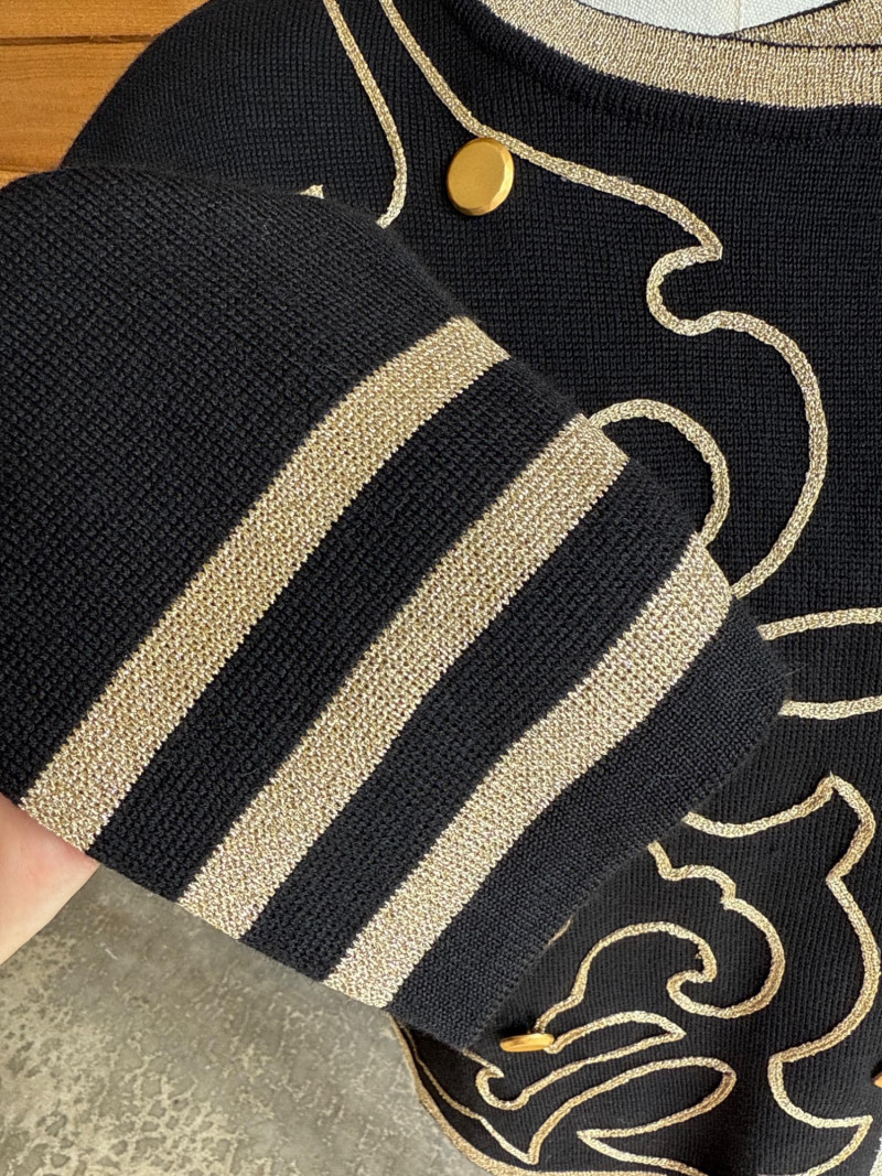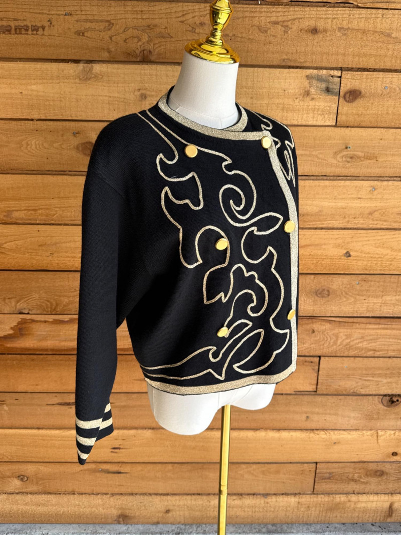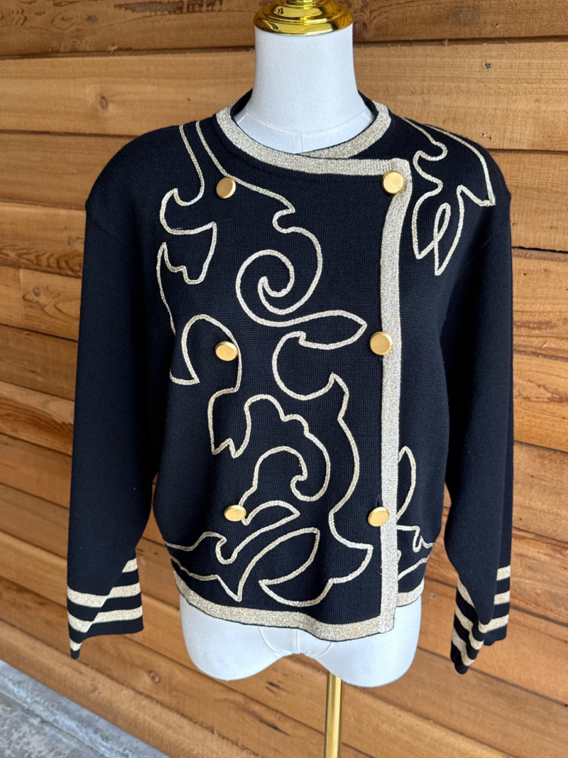 Lot # 83 - CLASSIQUES ENTIER Black & Gold Metallic Sweater- Sz S