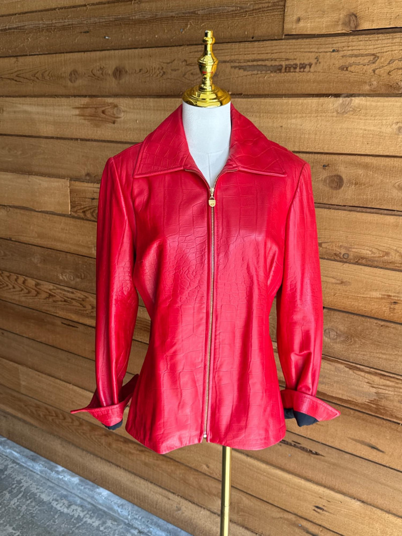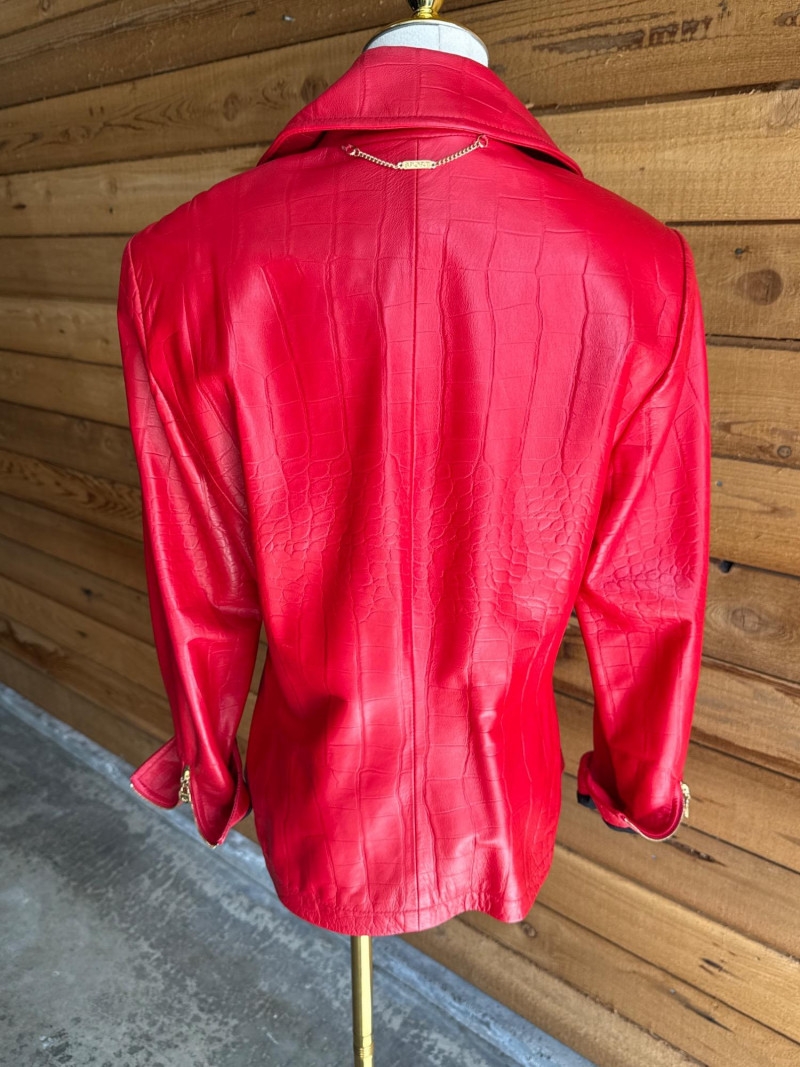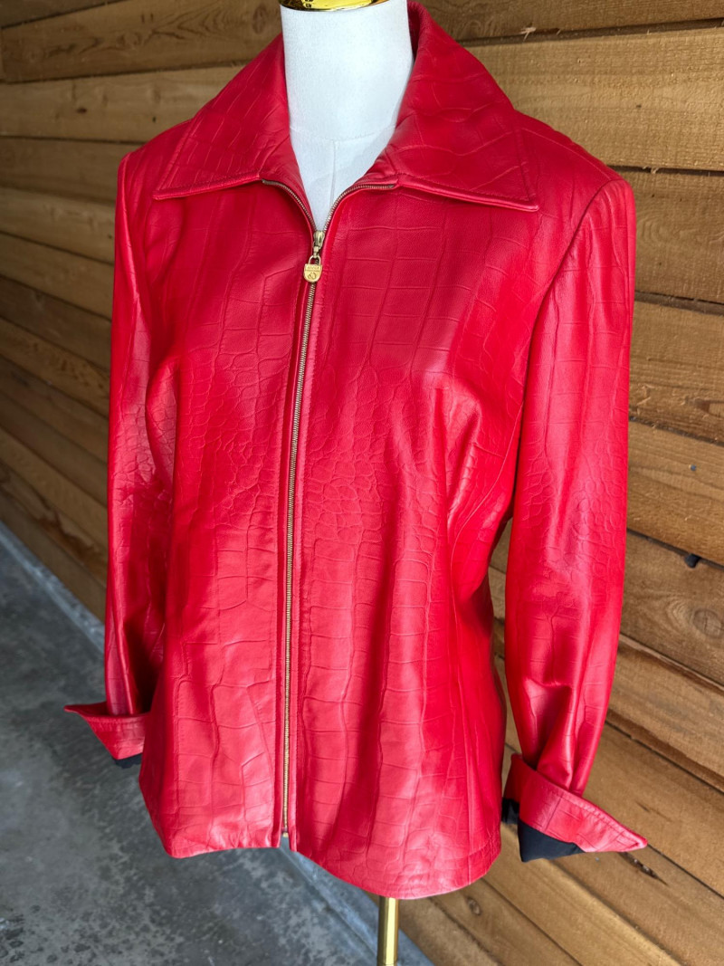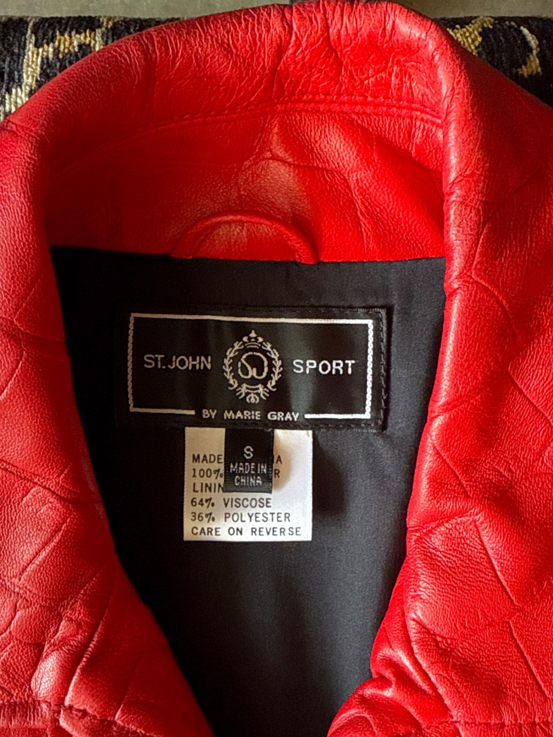 Lot # 98 - ST JOHN Sport Red Embossed Leather Jacket- Sz S