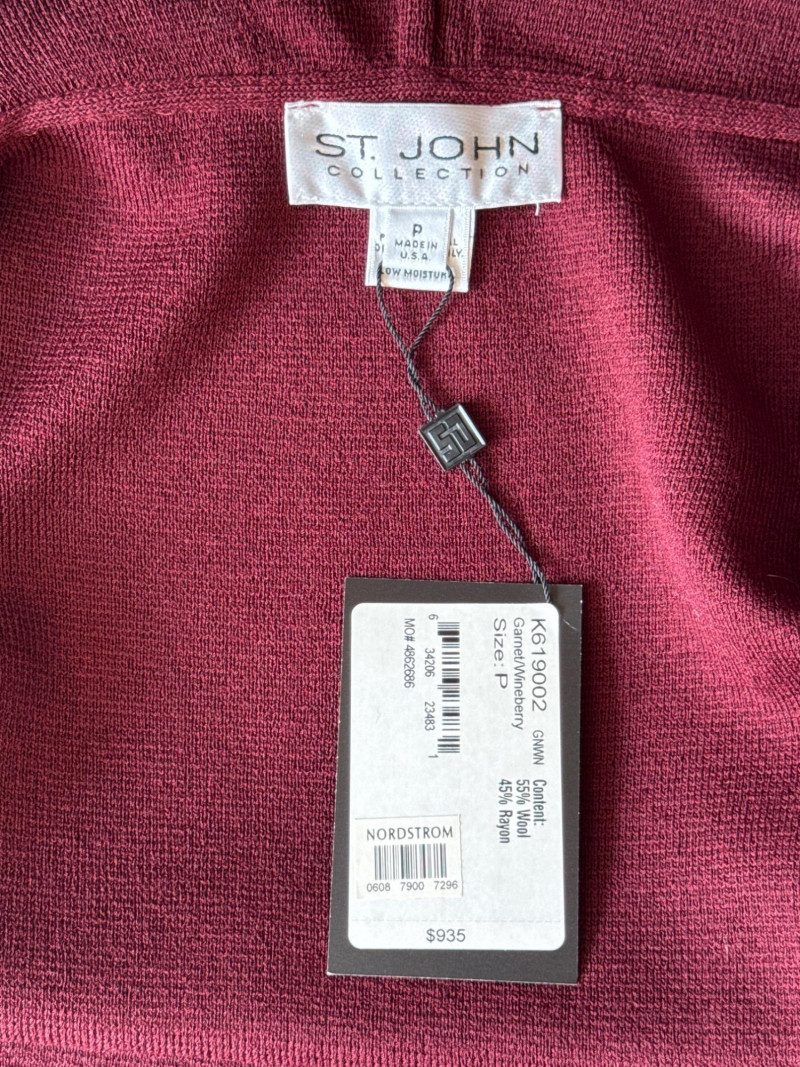 ST JOHN Maroon Wrap Cardigan*NWT $935 & Tank- Sz S/P Pretty drape! PLEASE NOTE DIFFERENT PICKUP TIMES THAN TYPICAL FOR SOUND ESTATE AUCTIONS Pickups will be Wednesday, July 30th and Thursday, July 31st, Saturday, August 2nd from 4-6pm (firm by 6pm on Thursday) If you can not make these times, PLEASE ask for alternate available times or shipping. Shipping times will be up to 2 weeks after auction closes. Please call/text Jessica 253-350-0864 *All items will need to be collected by August 15