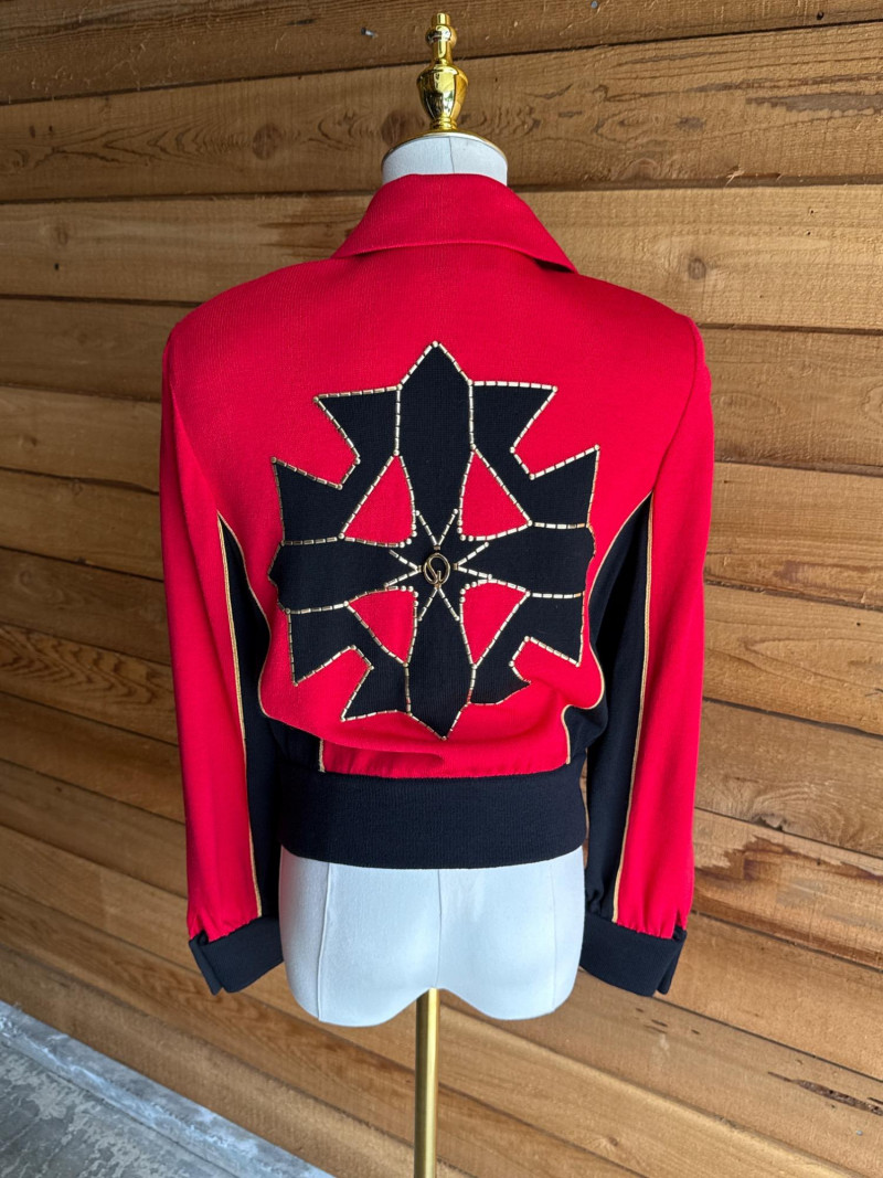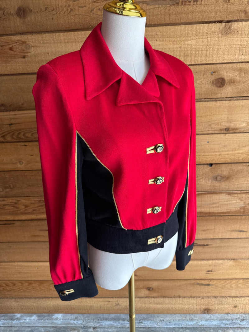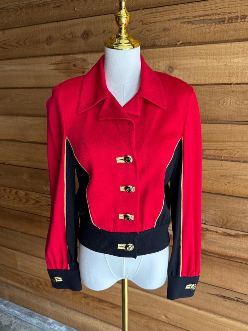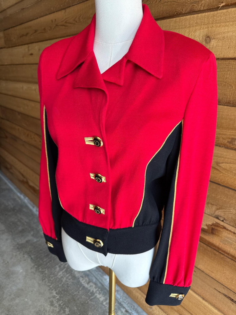 Lot # 105 - ST JOHN Red Black & Metallic Gold Jacket- Sz S