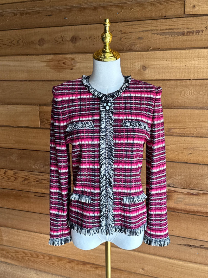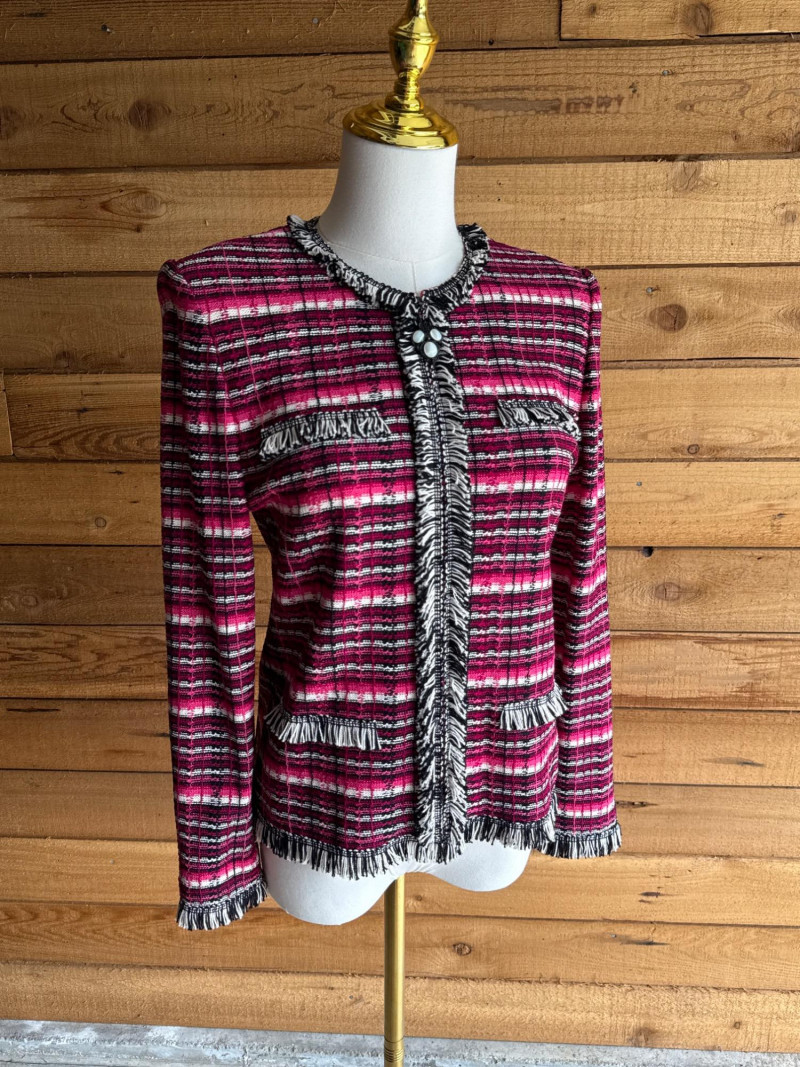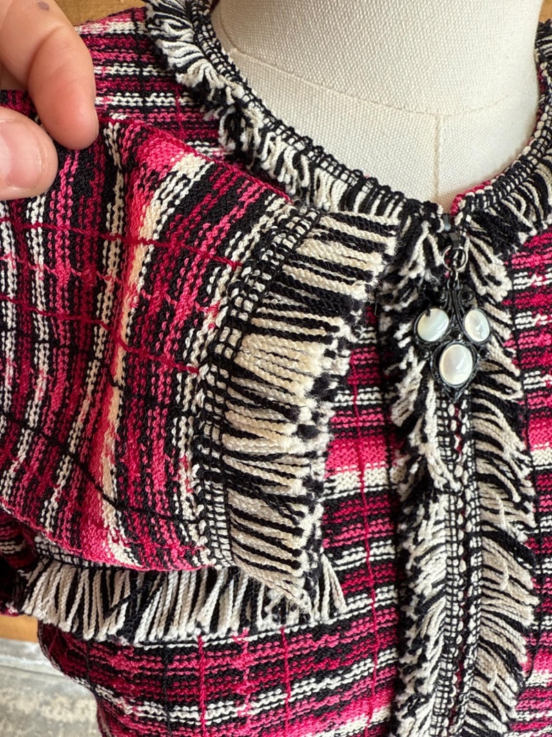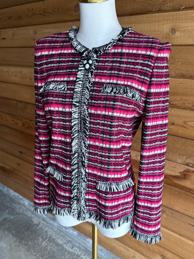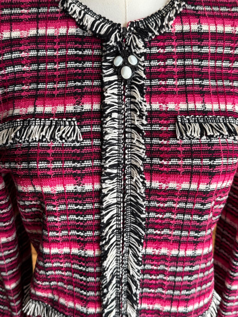 Lot # 107 - ST JOHN Pink Black White Fringe Jacket- Sz 2