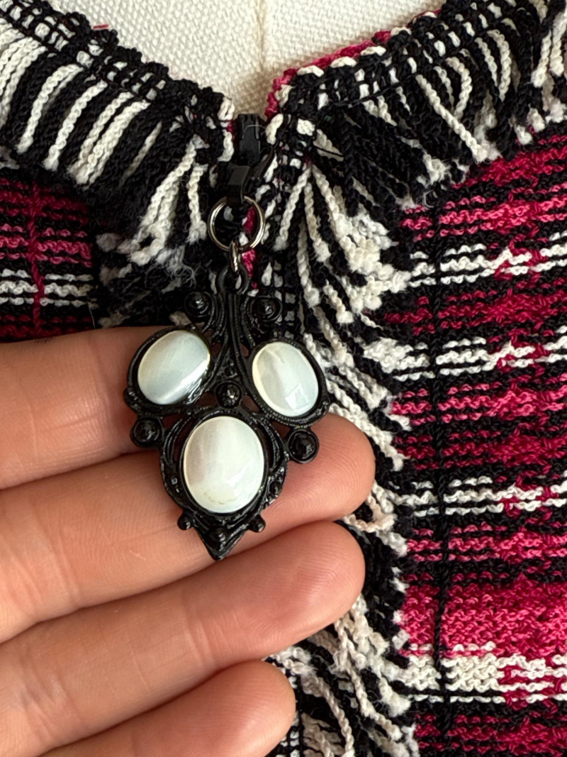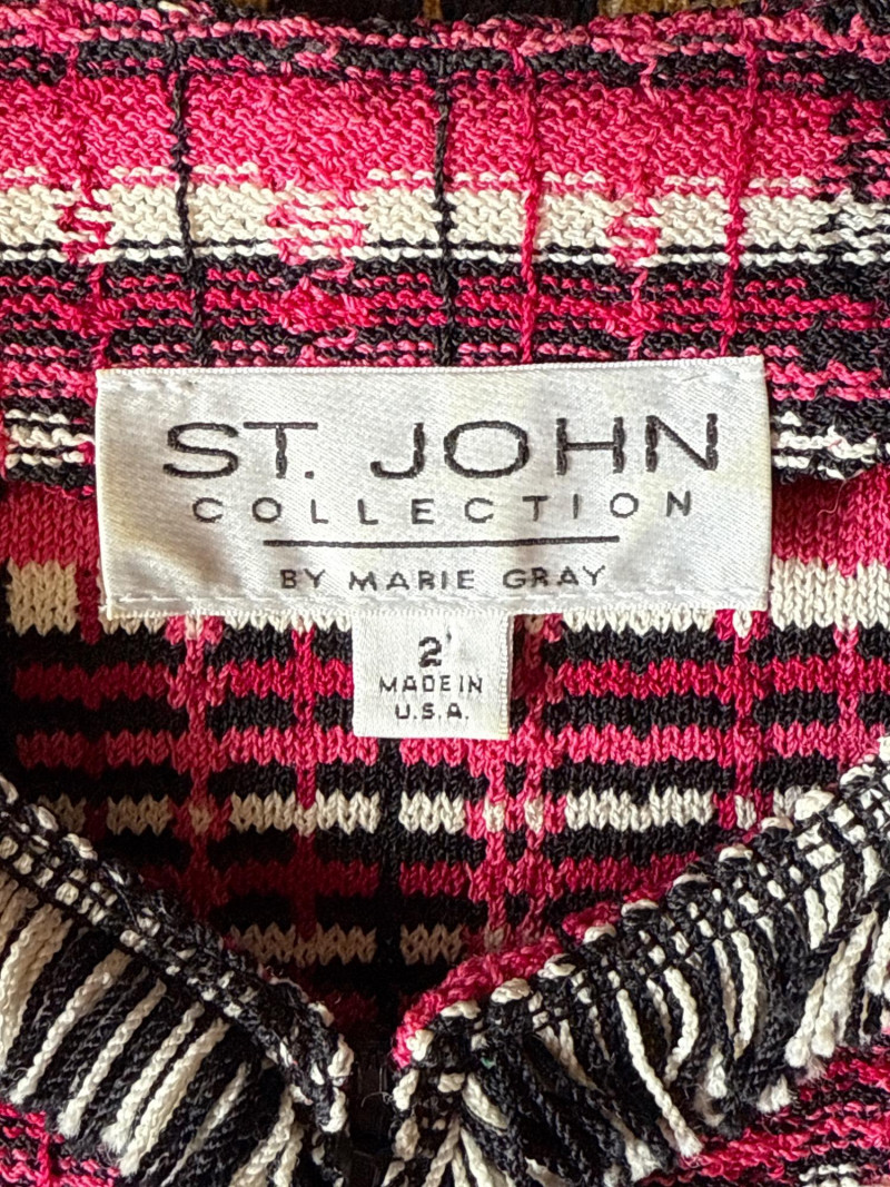 ST JOHN Pink Black White Fringe Jacket- Sz 2 PLEASE NOTE DIFFERENT PICKUP TIMES THAN TYPICAL FOR SOUND ESTATE AUCTIONS Pickups will be Wednesday, July 30th and Thursday, July 31st, Saturday, August 2nd from 4-6pm (firm by 6pm on Thursday) If you can not make these times, PLEASE ask for alternate available times or shipping. Shipping times will be up to 2 weeks after auction closes. Please call/text Jessica 253-350-0864 *All items will need to be collected by August 15