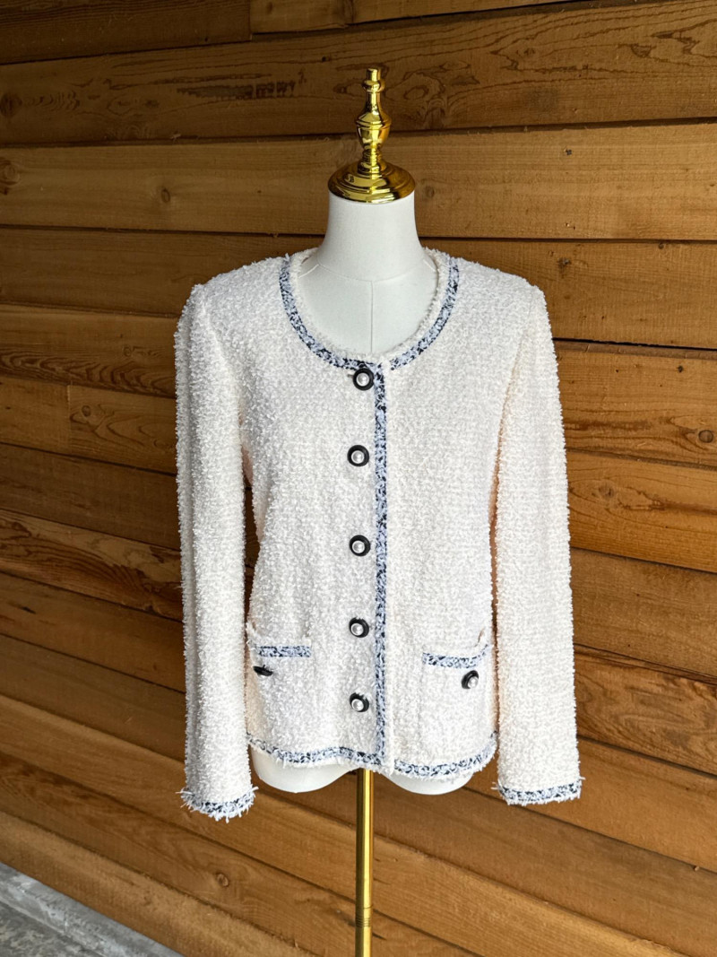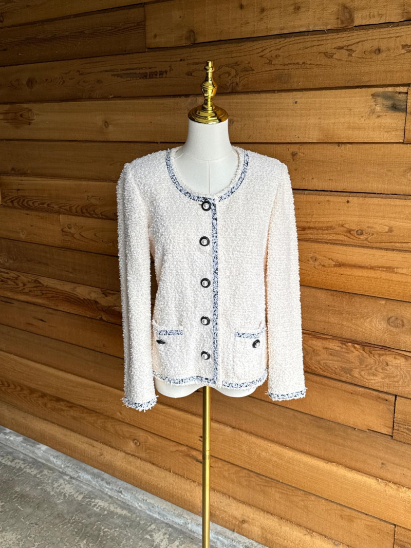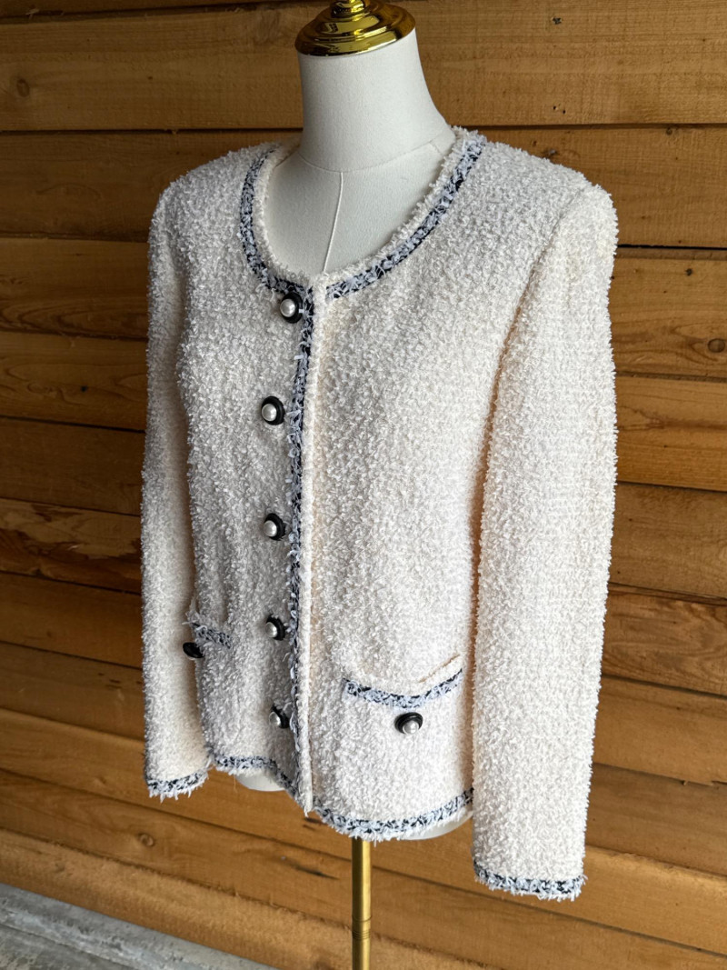 Lot # 110 - ST JOHN Couture Ivory w/Black Textured Jacket- Sz 4