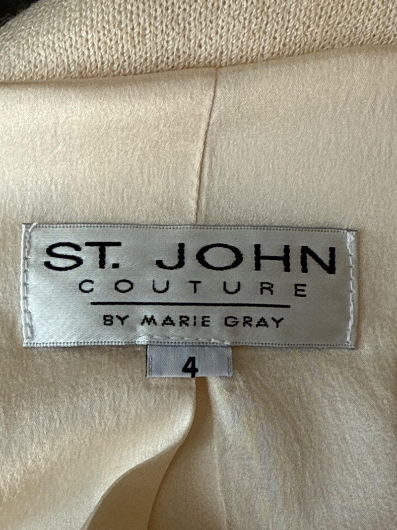ST JOHN Couture Ivory w/Black Textured Jacket- Sz 4 PLEASE NOTE DIFFERENT PICKUP TIMES THAN TYPICAL FOR SOUND ESTATE AUCTIONS Pickups will be Wednesday, July 30th and Thursday, July 31st, Saturday, August 2nd from 4-6pm (firm by 6pm on Thursday) If you can not make these times, PLEASE ask for alternate available times or shipping. Shipping times will be up to 2 weeks after auction closes. Please call/text Jessica 253-350-0864 *All items will need to be collected by August 15