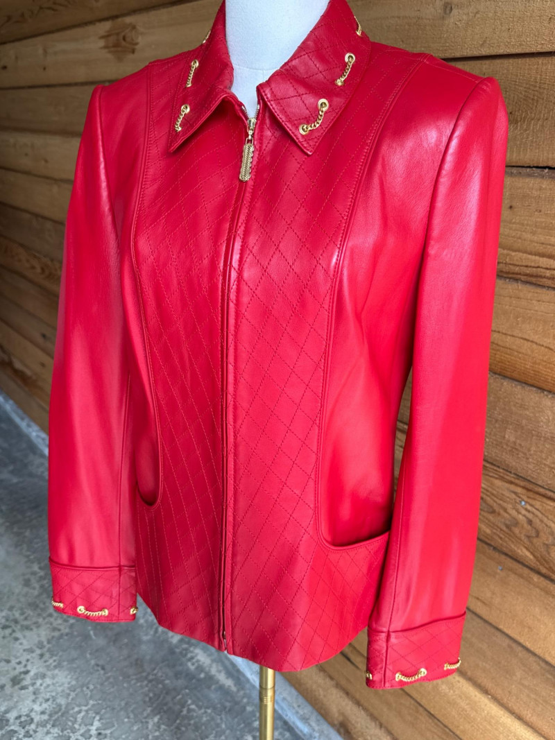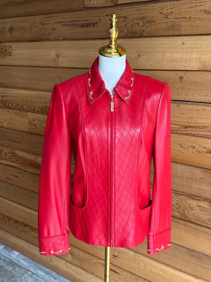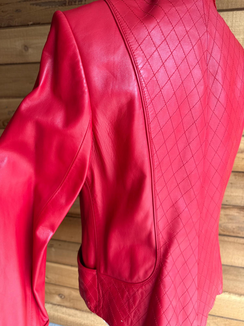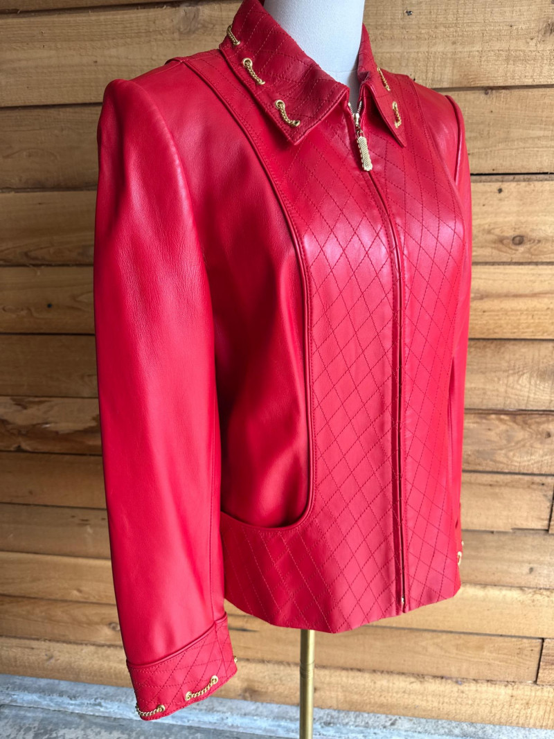Lot # 111 - ST JOHN Sport Red Quilted Leather Jacket- Sz S