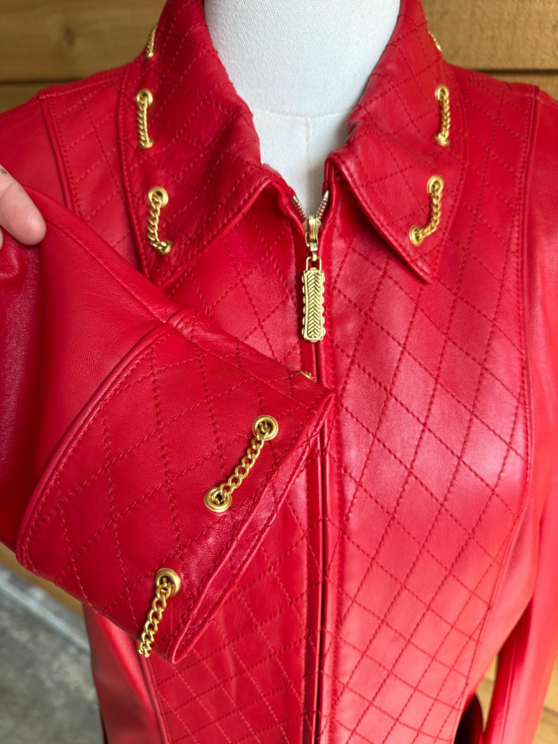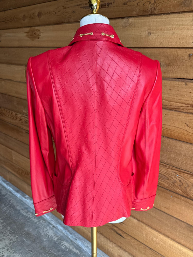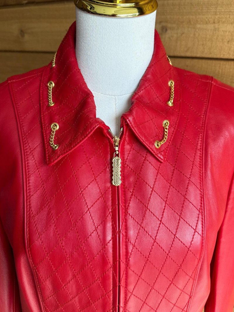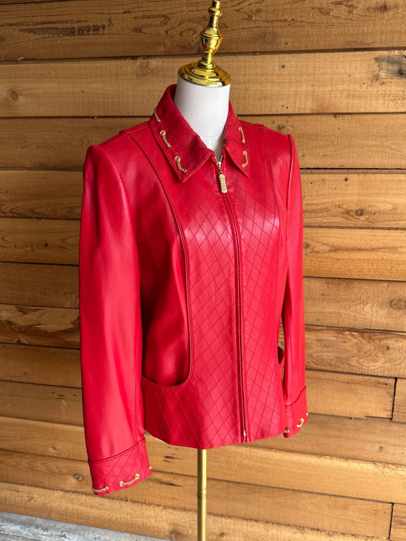 Lot # 111 - ST JOHN Sport Red Quilted Leather Jacket- Sz S