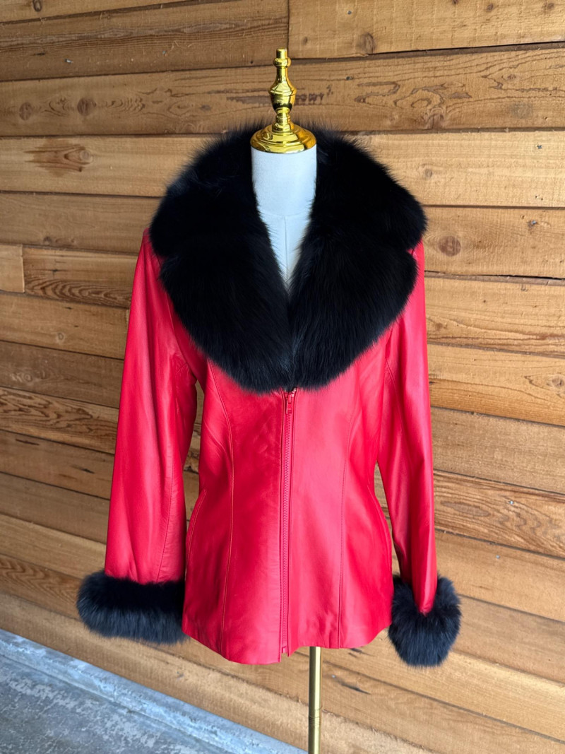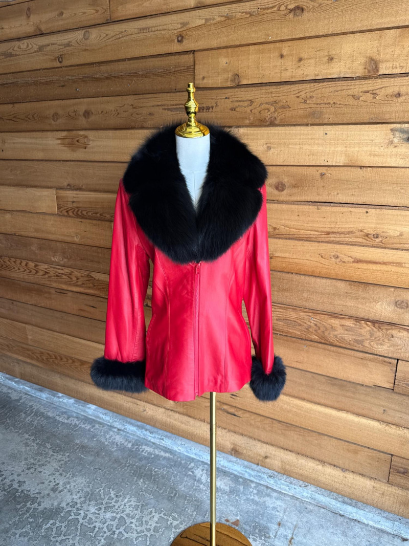 CHOSEN COUTURE Red Leather Jacket w/ Black Fox Fur Trim- Sz S PLEASE NOTE DIFFERENT PICKUP TIMES THAN TYPICAL FOR SOUND ESTATE AUCTIONS Pickups will be Wednesday, July 30th and Thursday, July 31st, Saturday, August 2nd from 4-6pm (firm by 6pm on Thursday) If you can not make these times, PLEASE ask for alternate available times or shipping. Shipping times will be up to 2 weeks after auction closes. Please call/text Jessica 253-350-0864 *All items will need to be collected by August 15