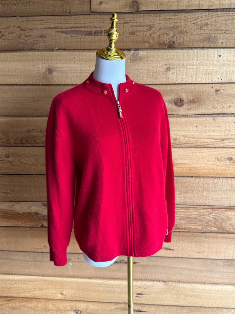 Lot # 124 - ST JOHN Sport Red Zippered Sweater- Sz P