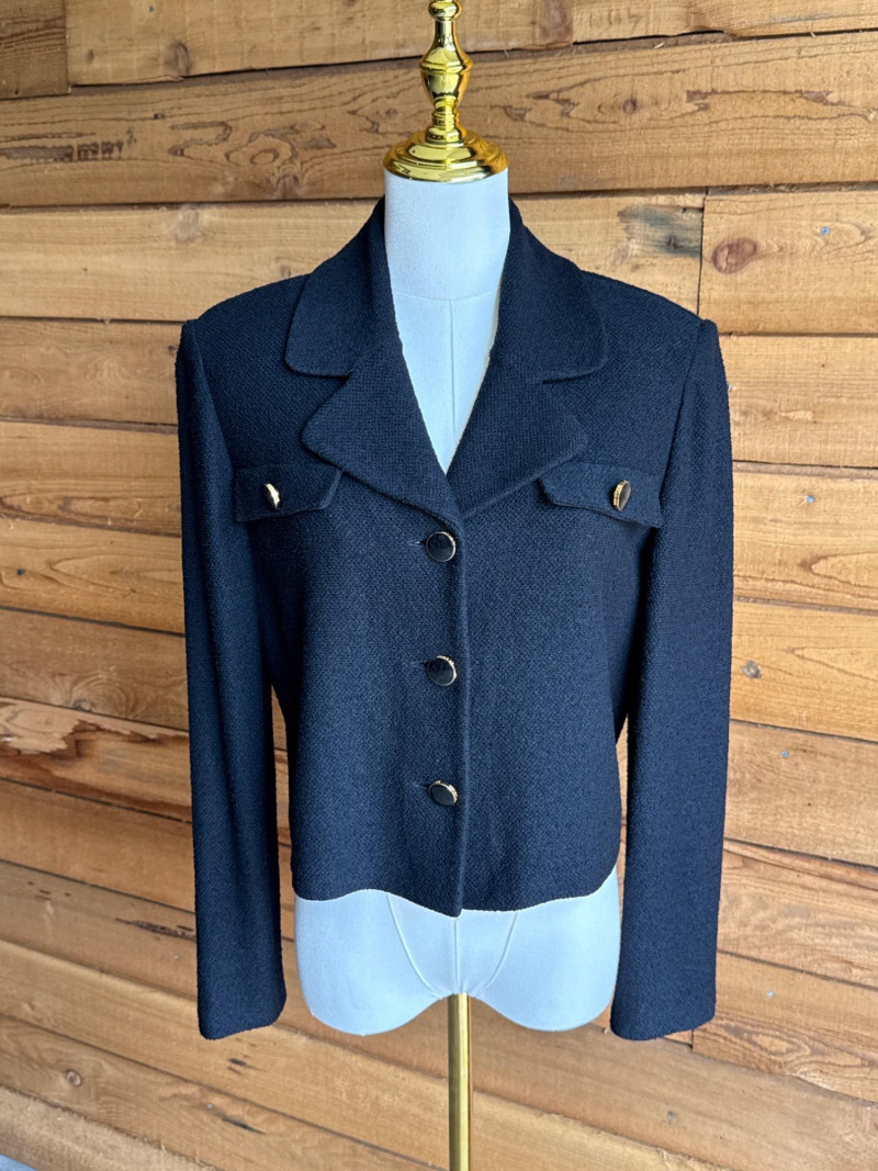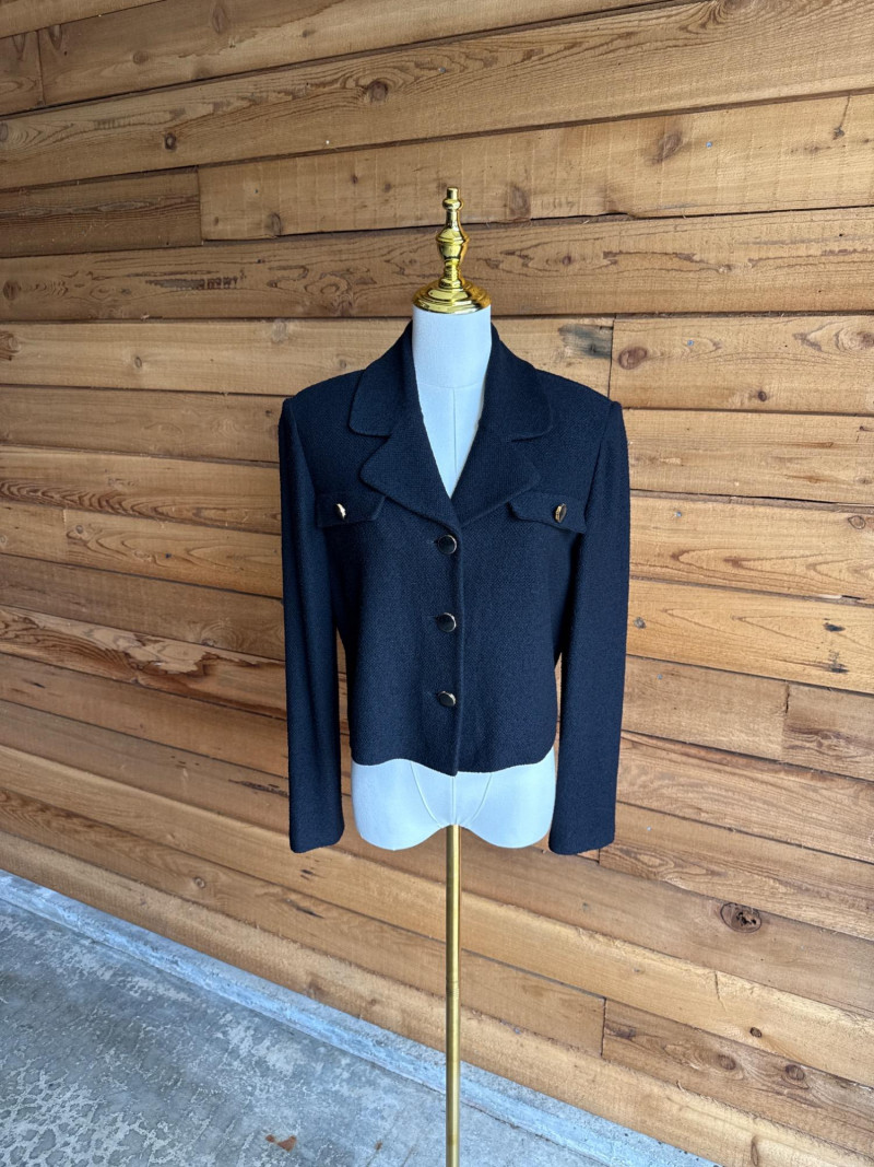 ST JOHN Black Textured Cropped Jacket- Sz 8 PLEASE NOTE DIFFERENT PICKUP TIMES THAN TYPICAL FOR SOUND ESTATE AUCTIONS Pickups will be Wednesday, July 30th and Thursday, July 31st, Saturday, August 2nd from 4-6pm (firm by 6pm on Thursday) If you can not make these times, PLEASE ask for alternate available times or shipping. Shipping times will be up to 2 weeks after auction closes. Please call/text Jessica 253-350-0864 *All items will need to be collected by August 15