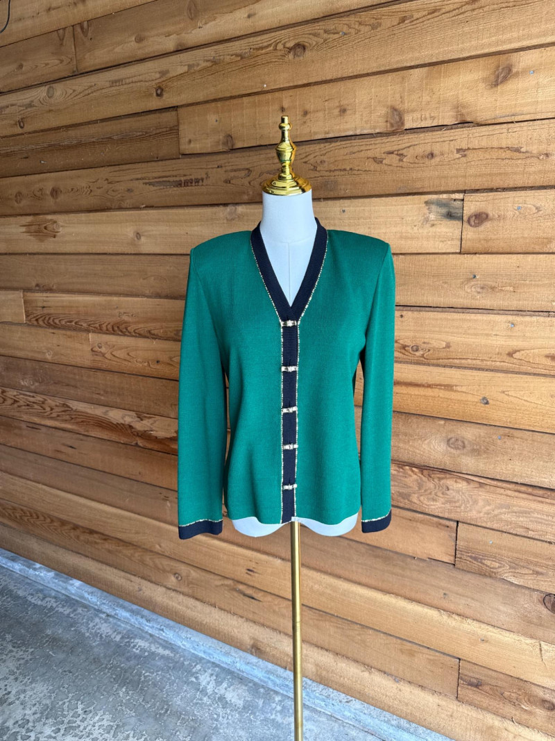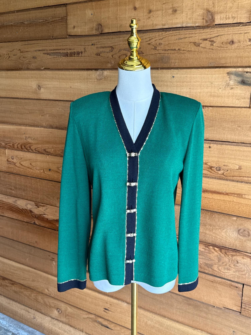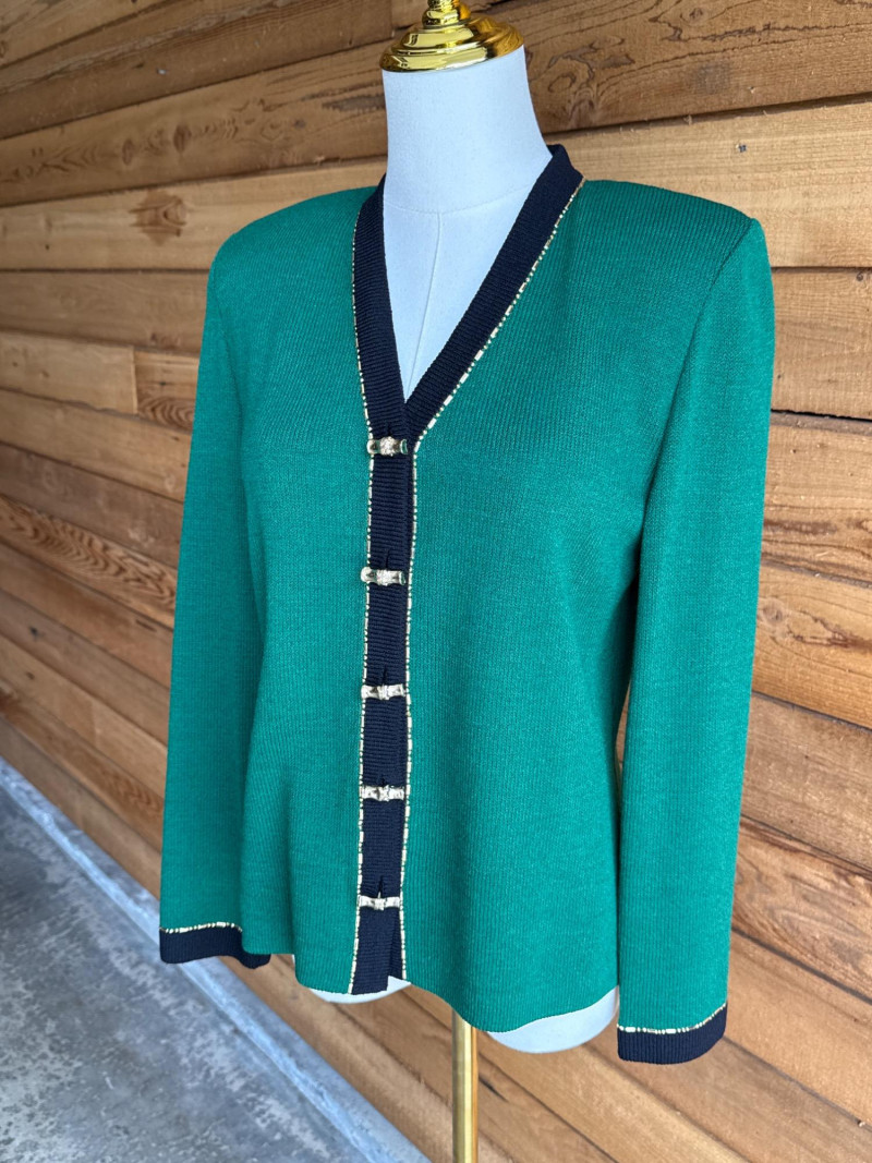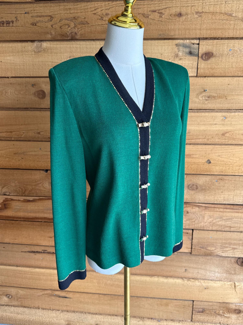 Lot # 129 - ST JOHN Dark Green & Black Cardigan- Sz 2