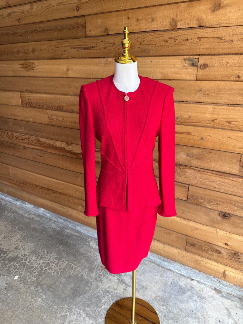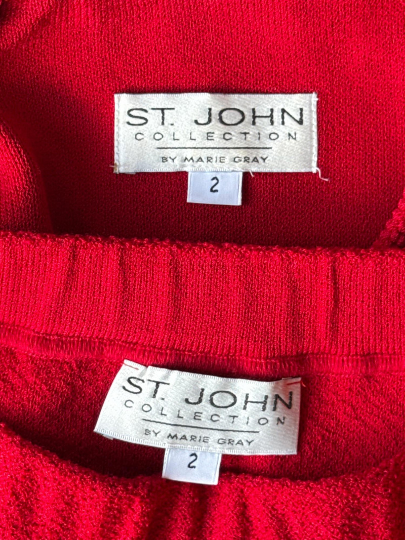 ST JOHN Red Boucle Skirt Suit- Sz 2 *please note there is a slight spotting on the front of the jacket. May come out with laundering PLEASE NOTE DIFFERENT PICKUP TIMES THAN TYPICAL FOR SOUND ESTATE AUCTIONS Pickups will be Wednesday, July 30th and Thursday, July 31st, Saturday, August 2nd from 4-6pm (firm by 6pm on Thursday) If you can not make these times, PLEASE ask for alternate available times or shipping. Shipping times will be up to 2 weeks after auction closes. Please call/text Jessica 253-350-0864 *All items will need to be collected by August 15