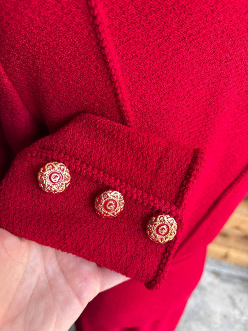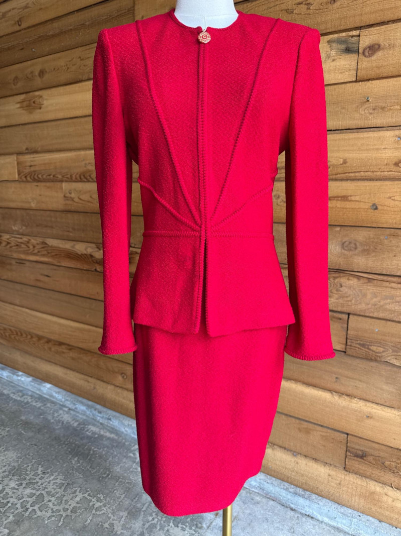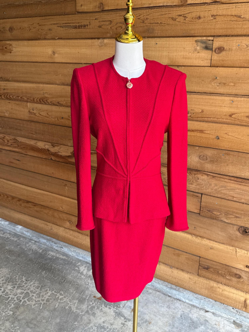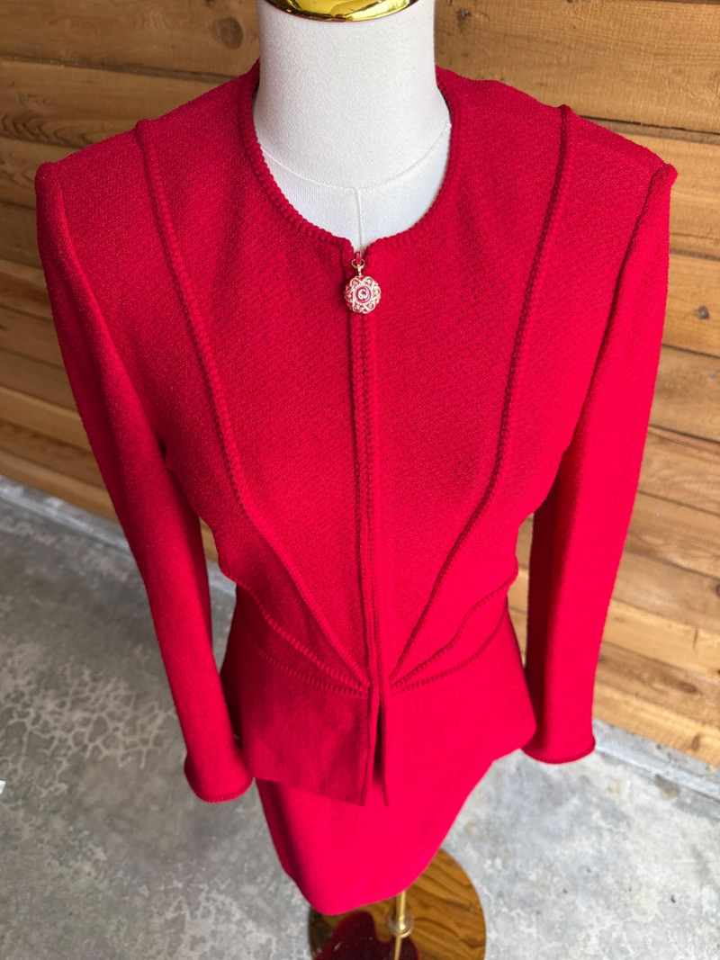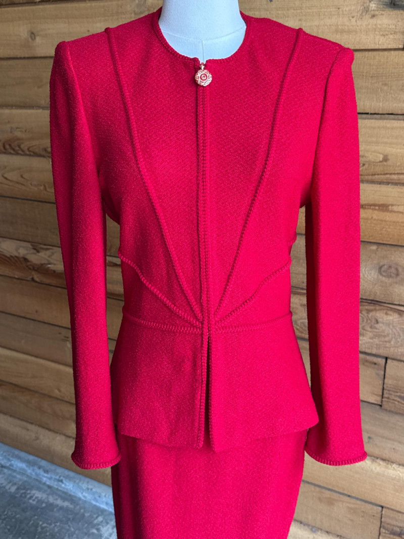 Lot # 136 - ST JOHN Red Boucle Skirt Suit- Sz 2