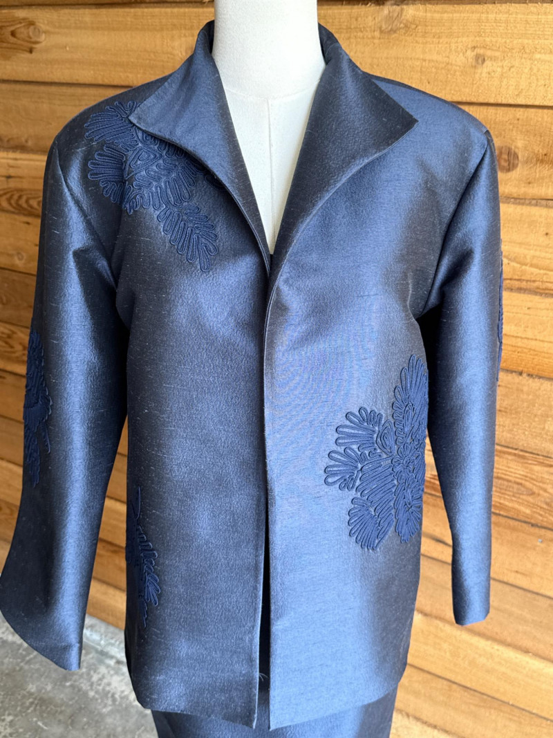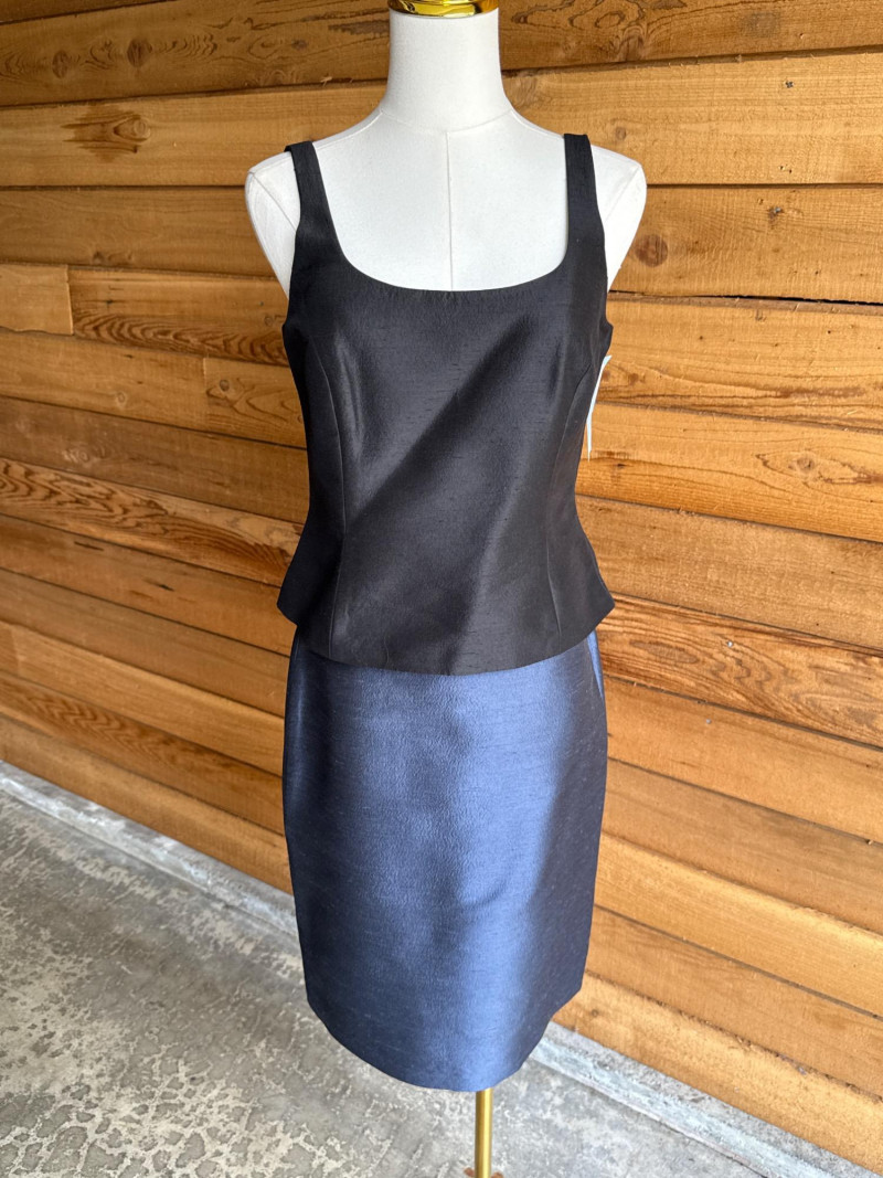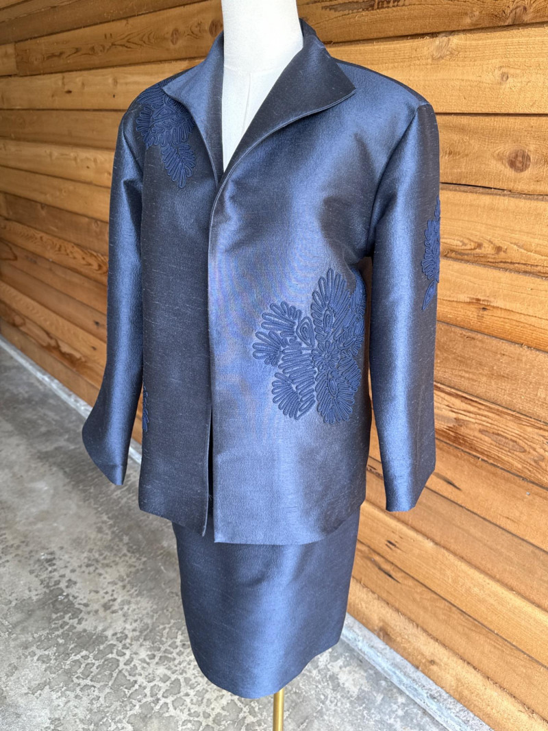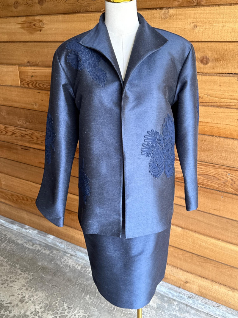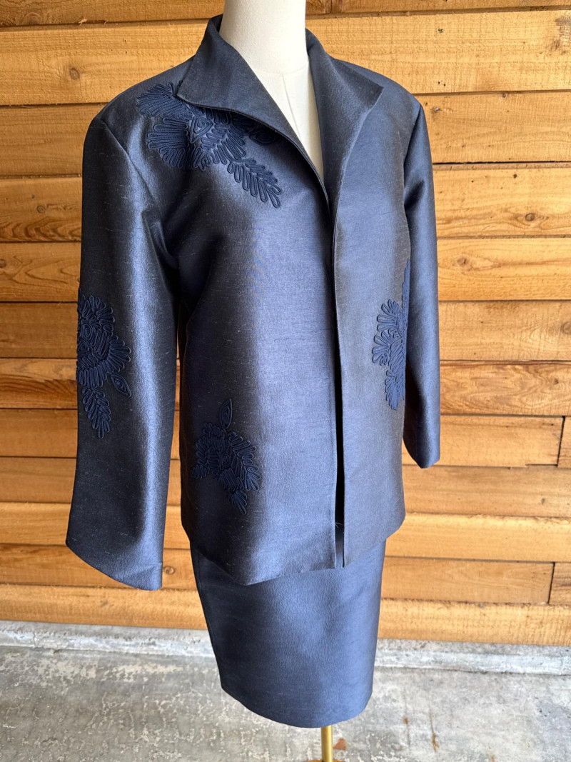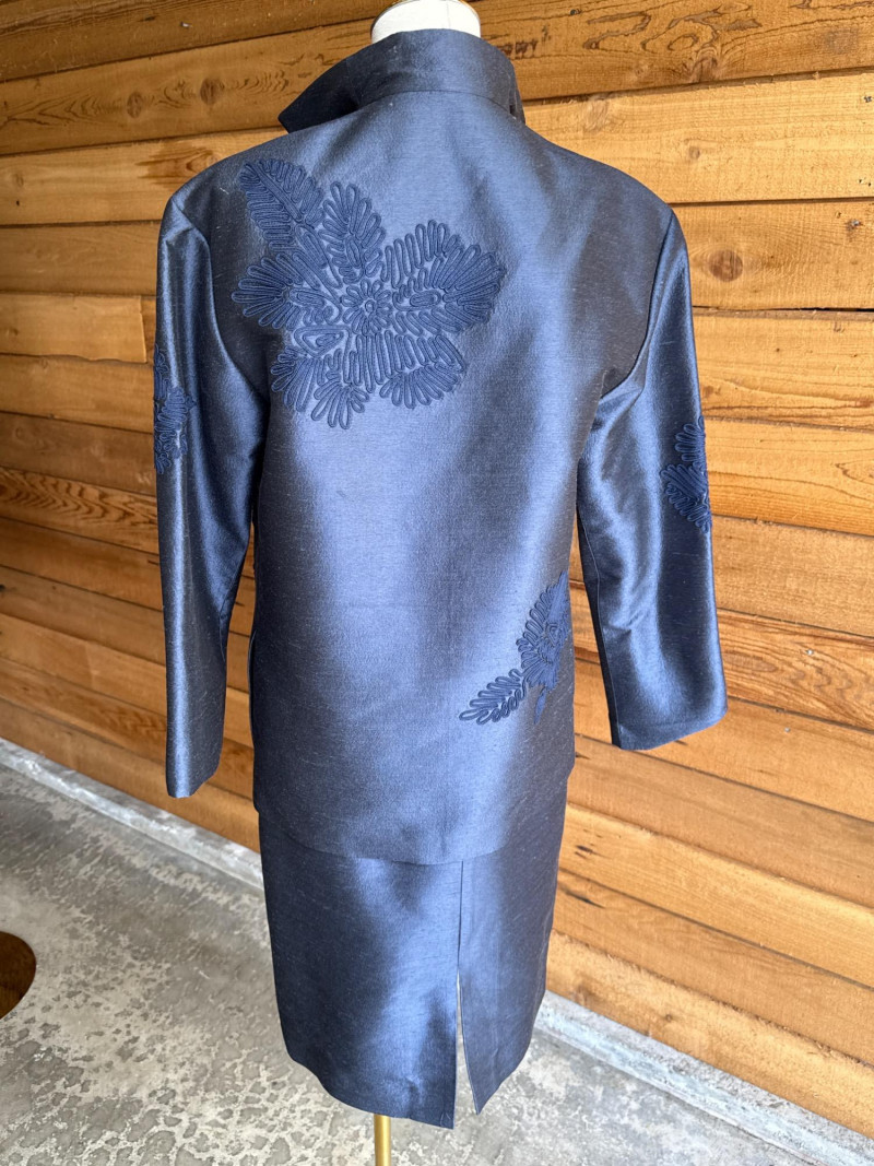 Lot # 140 - LINDA ALLARD ELLEN TRACY Navy Blue 3pc Silk Skirt Suit- Sz 2