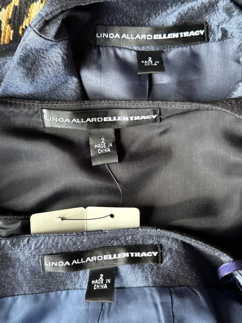 LINDA ALLARD ELLEN TRACY Navy Blue 3pc Silk Skirt Suit- Sz 2 PLEASE NOTE DIFFERENT PICKUP TIMES THAN TYPICAL FOR SOUND ESTATE AUCTIONS Pickups will be Wednesday, July 30th and Thursday, July 31st, Saturday, August 2nd from 4-6pm (firm by 6pm on Thursday) If you can not make these times, PLEASE ask for alternate available times or shipping. Shipping times will be up to 2 weeks after auction closes. Please call/text Jessica 253-350-0864 *All items will need to be collected by August 15