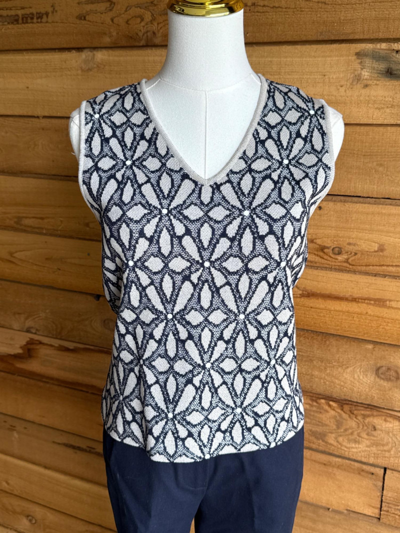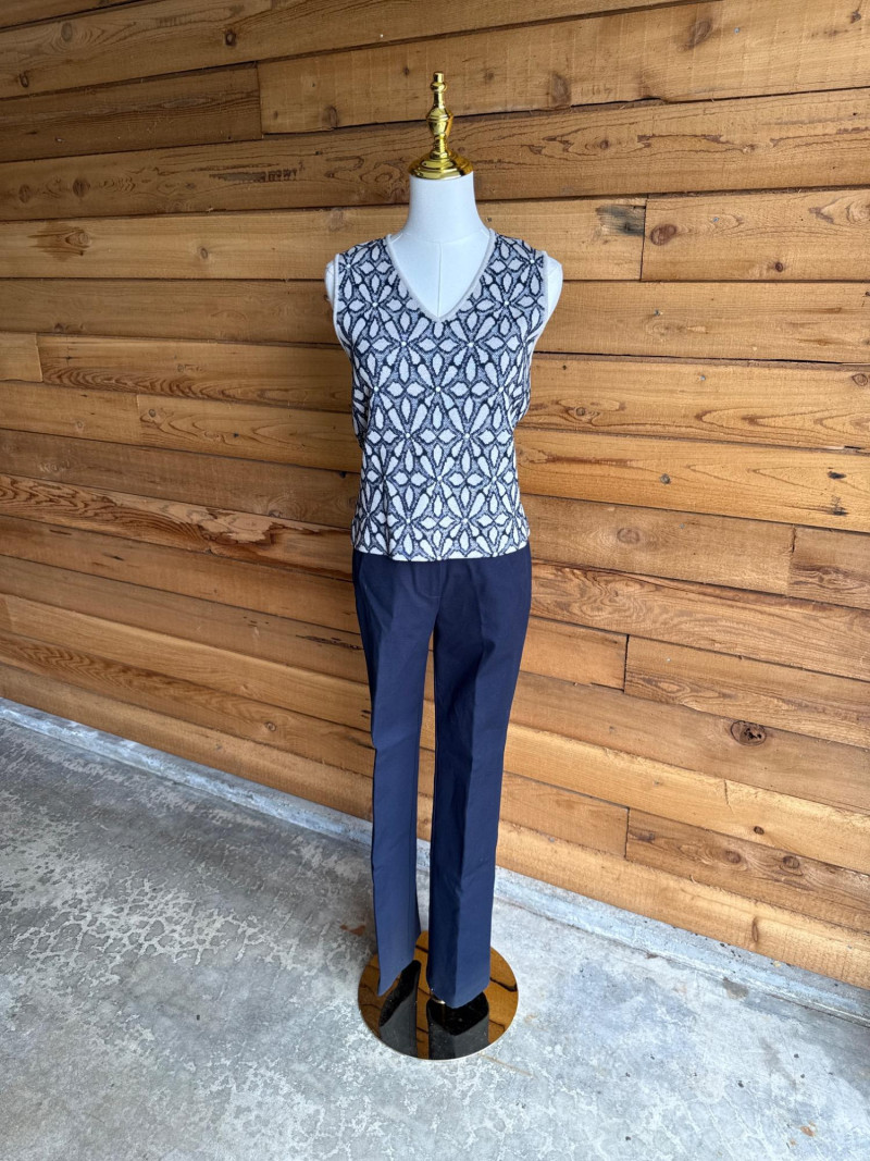 Lot # 151 - ST JOHN Navy & Multi Vest & Pant Combo- Sz 4/P