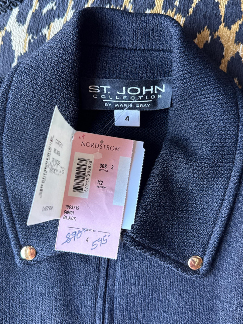 ST JOHN Black & Gold Knit Jacket*NWT $890- Sz 4 PLEASE NOTE DIFFERENT PICKUP TIMES THAN TYPICAL FOR SOUND ESTATE AUCTIONS Pickups will be Wednesday, July 30th and Thursday, July 31st, Saturday, August 2nd from 4-6pm (firm by 6pm on Thursday) If you can not make these times, PLEASE ask for alternate available times or shipping. Shipping times will be up to 2 weeks after auction closes. Please call/text Jessica 253-350-0864 *All items will need to be collected by August 15