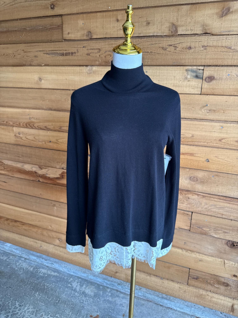 Lot # 175 - JOIE Black Sweater w/ Lace Trim Sweater *NWT $298- Sz XS